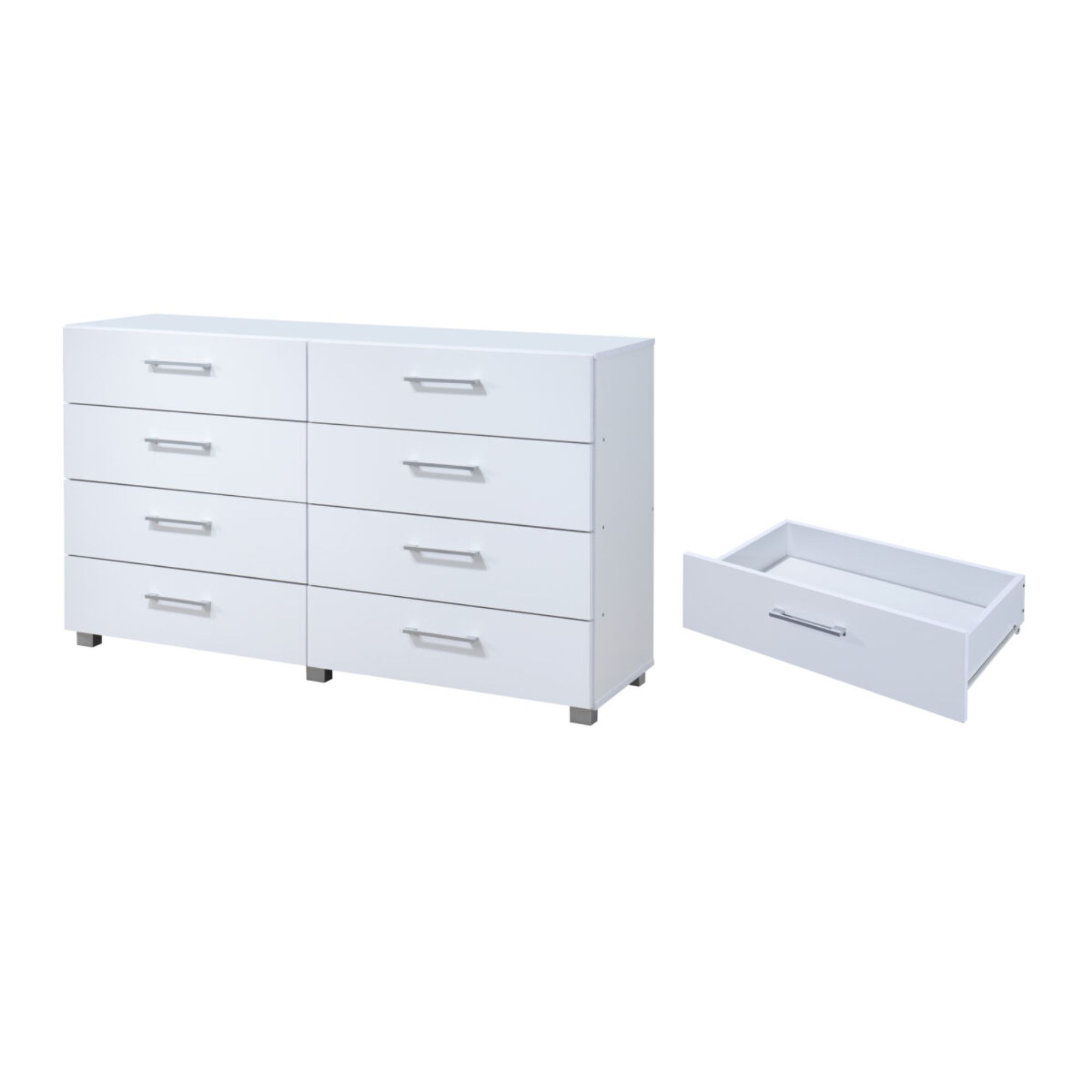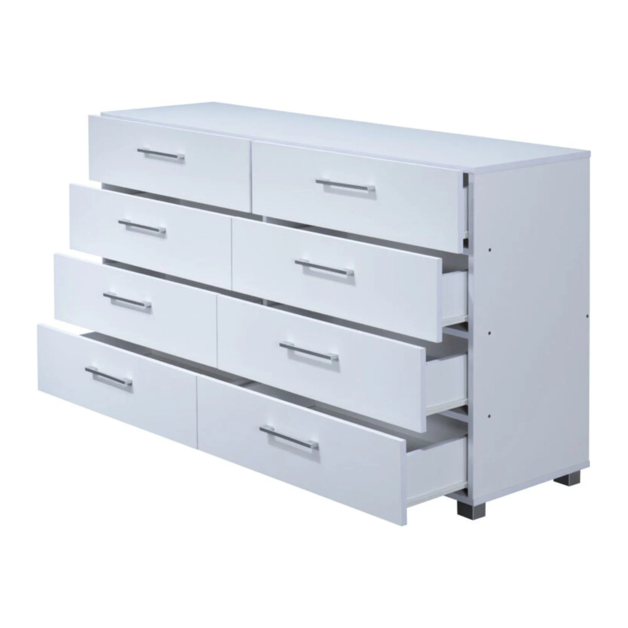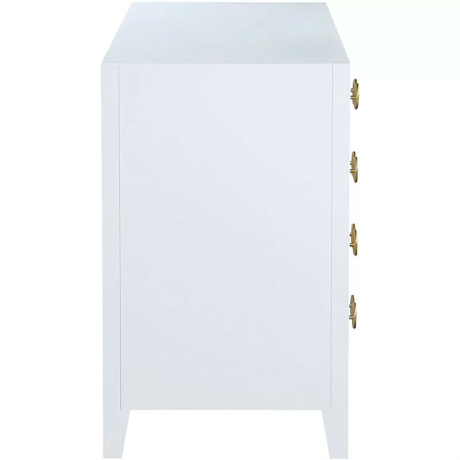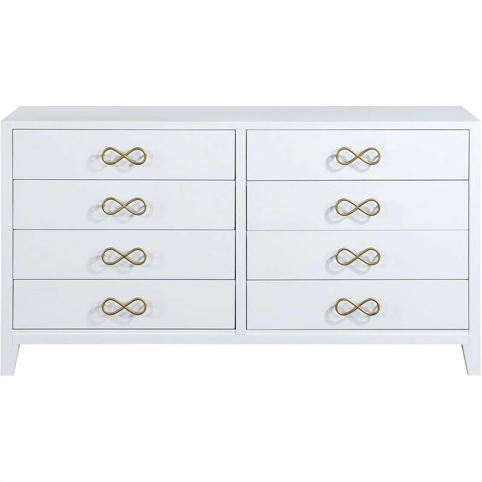 Maklaine 8 Drawers Contemporary Wood Dresser in Rich White/Brushed Gold