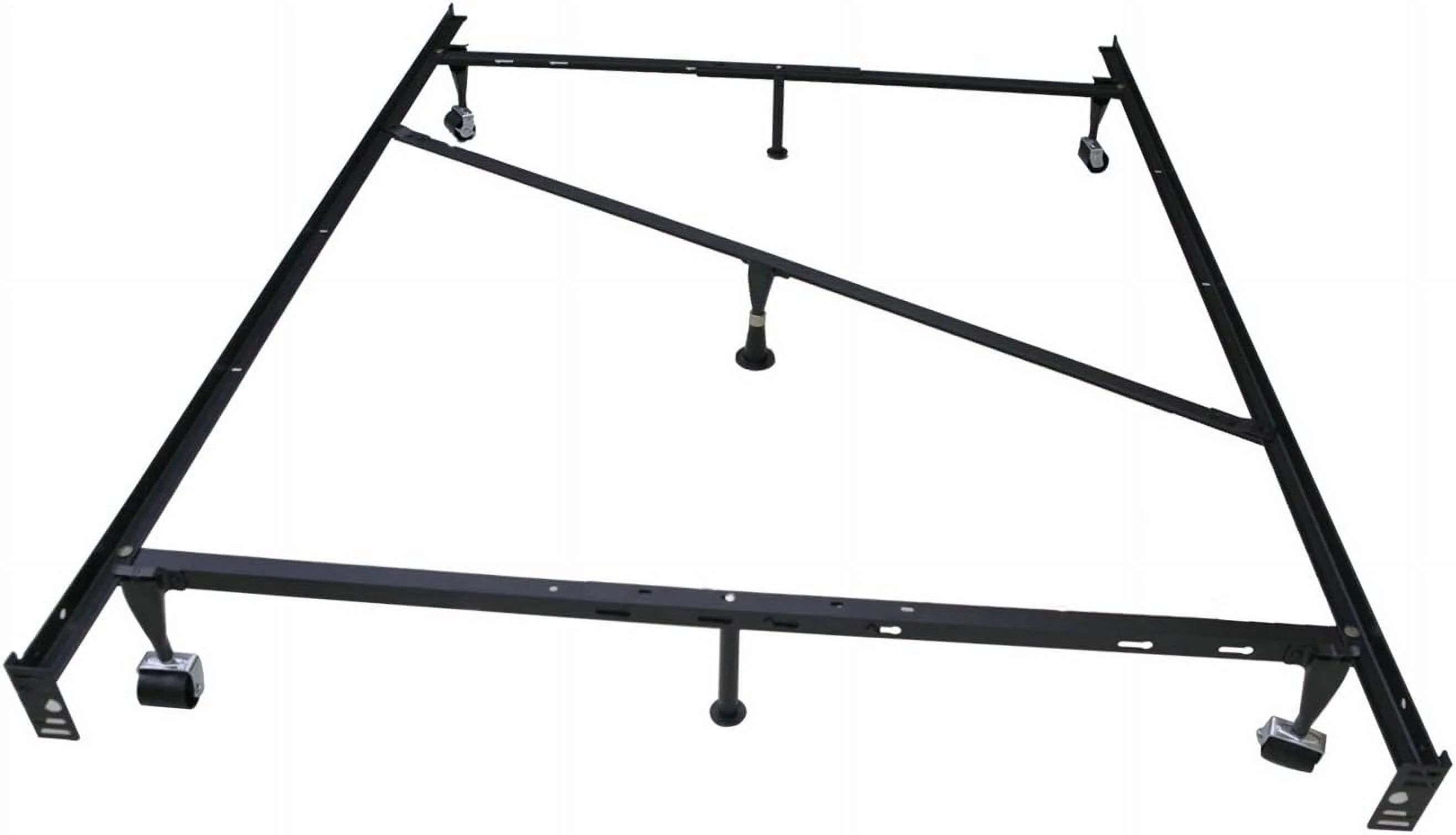 Heavy Duty Metal 7-Leg Adjustable Queen, Full, Full XL, , XL, Bed Frame With Center Support, Rug s & Locking Wheels