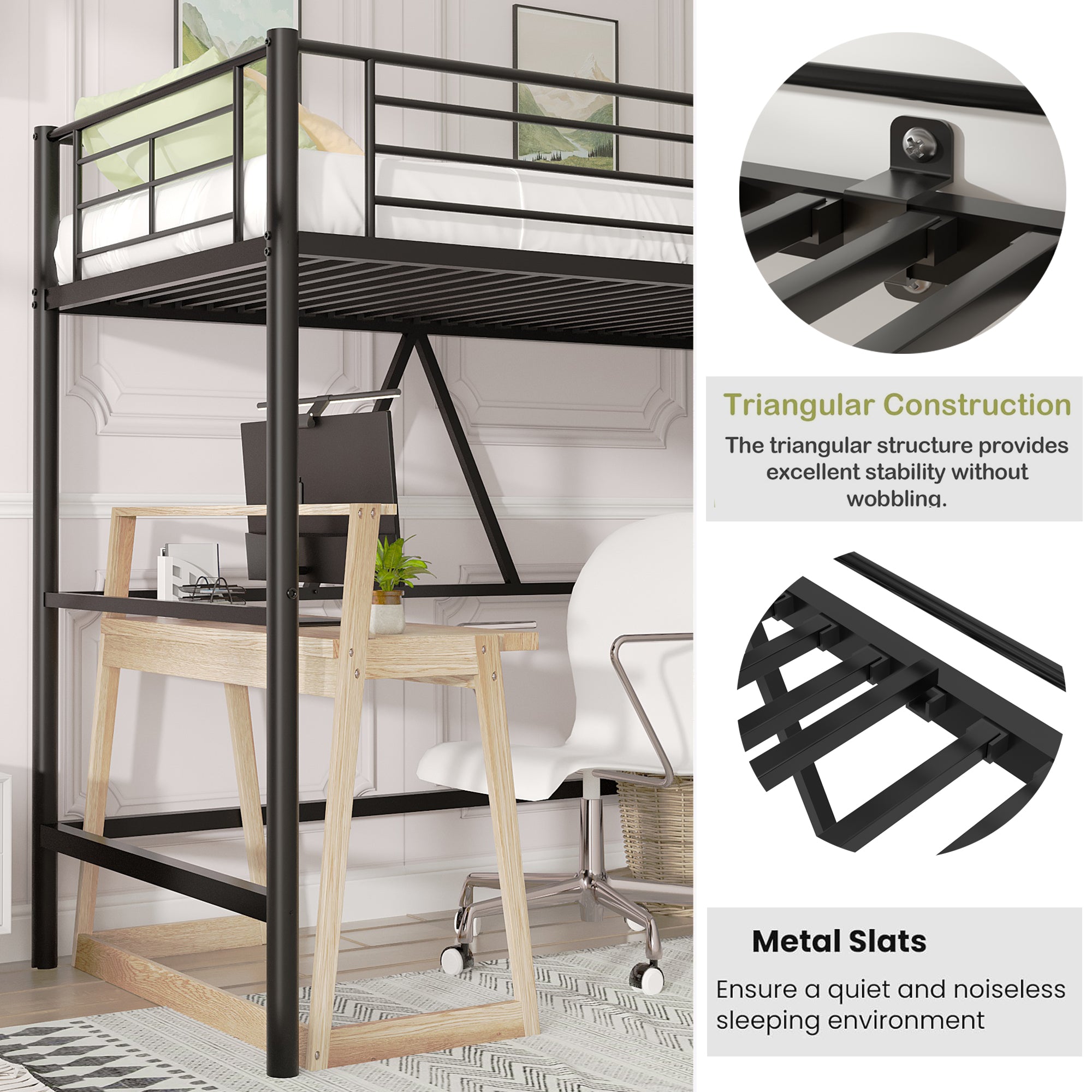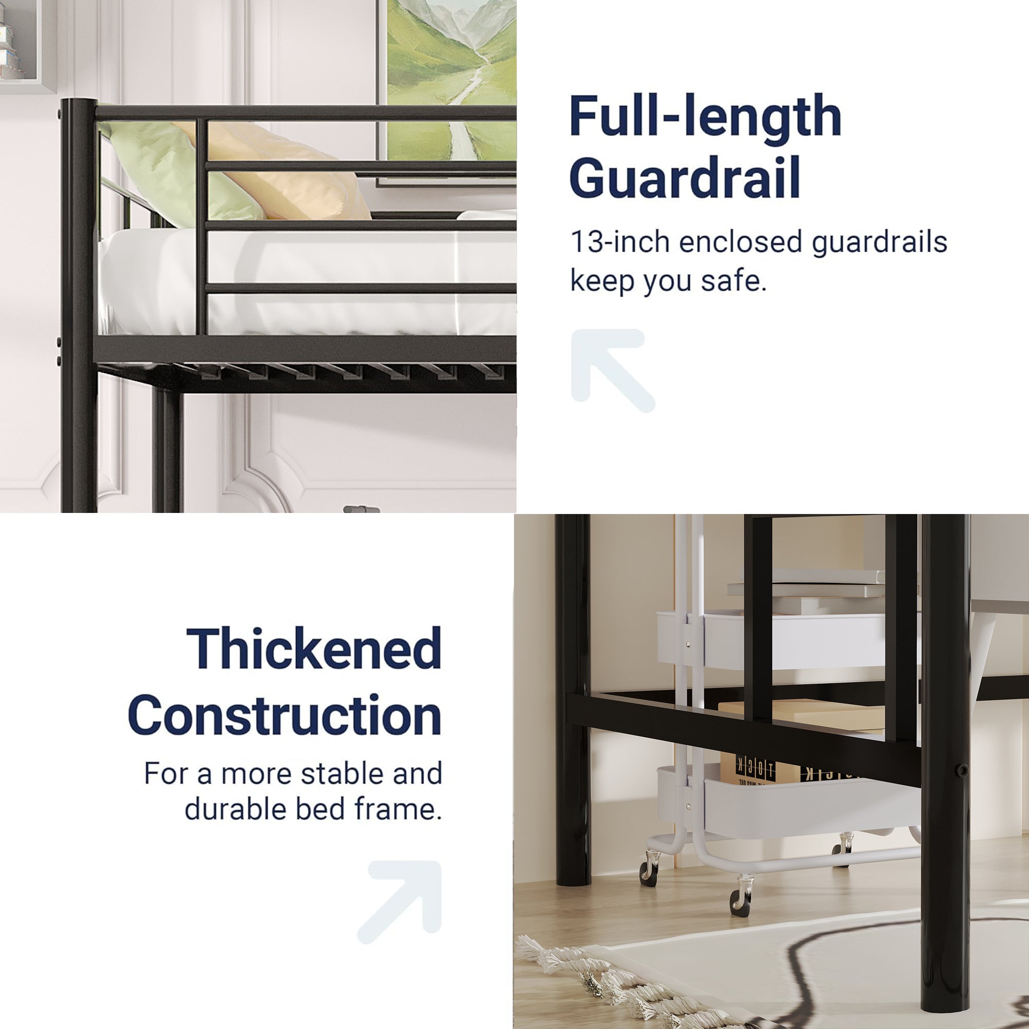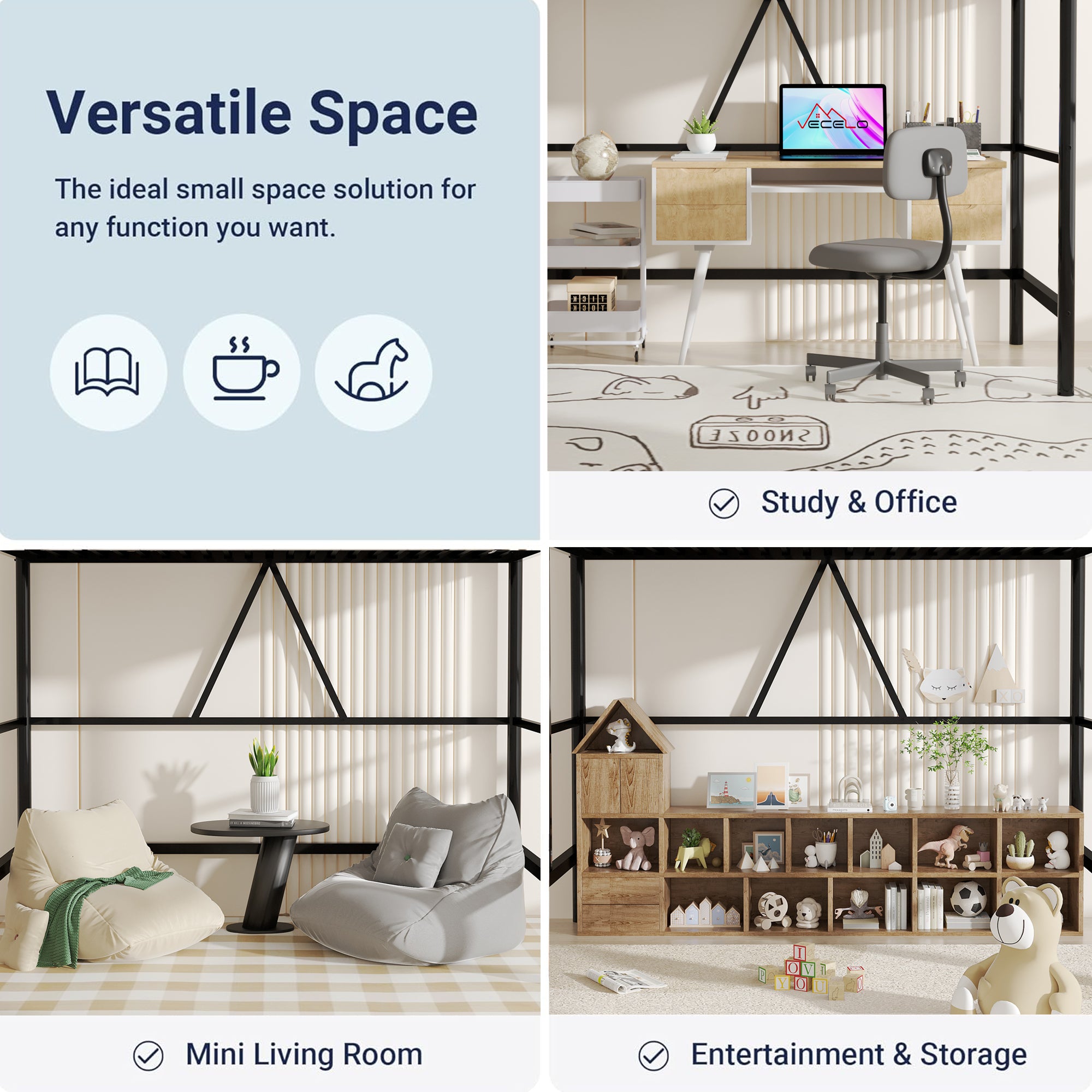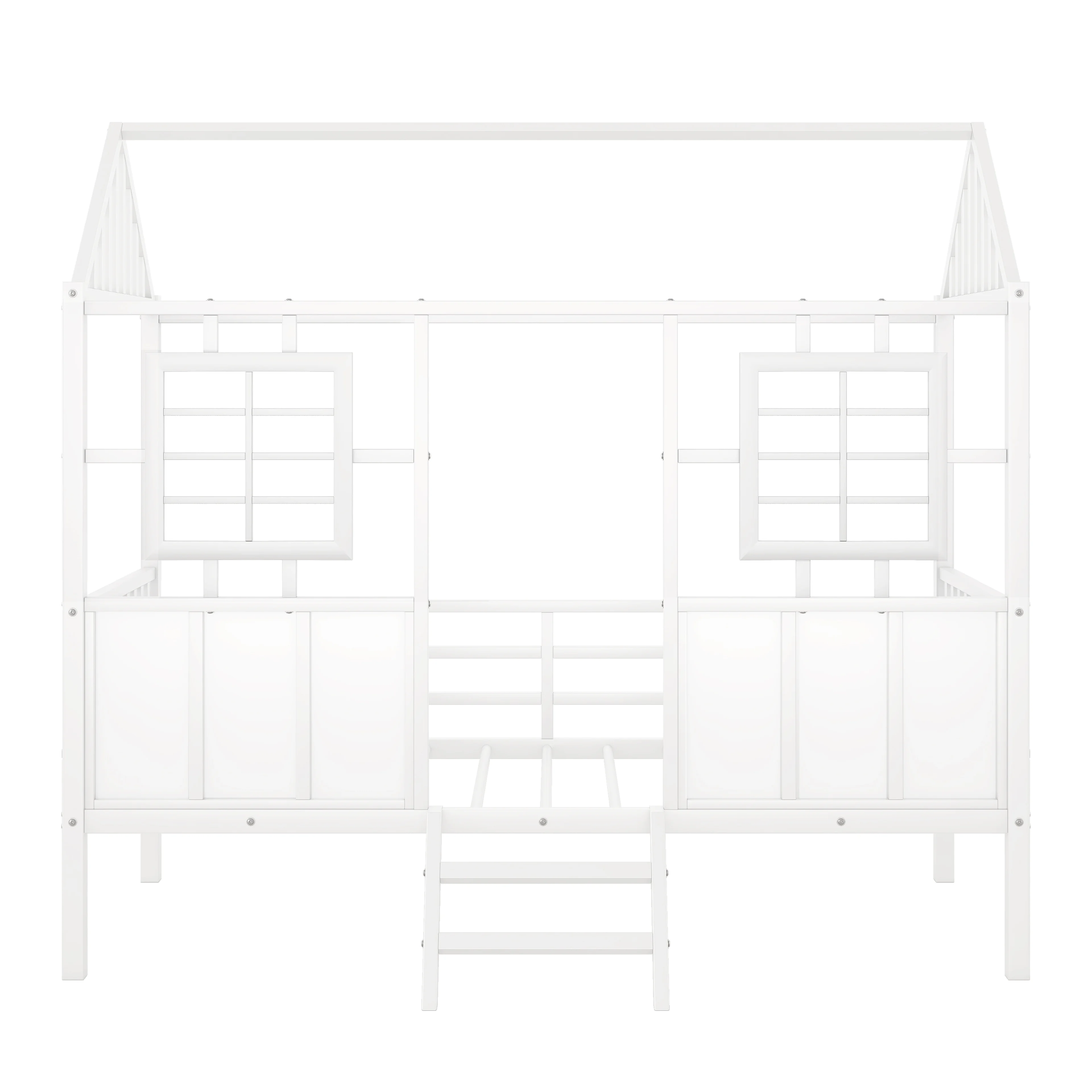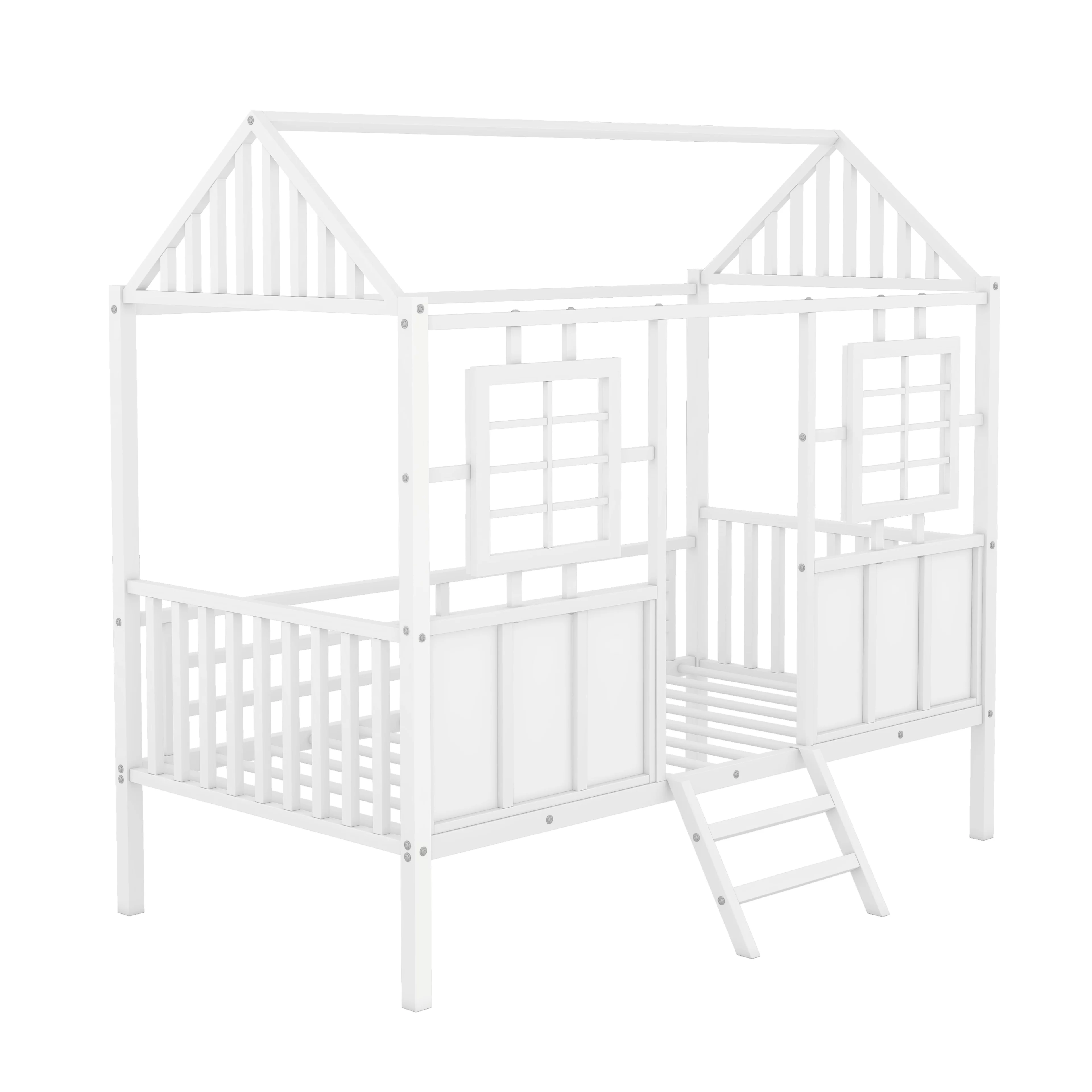 Twin Size House Kids, Low Roof and Window, Loft Girls Boys,Playhouse Bed Frame, Black Metal