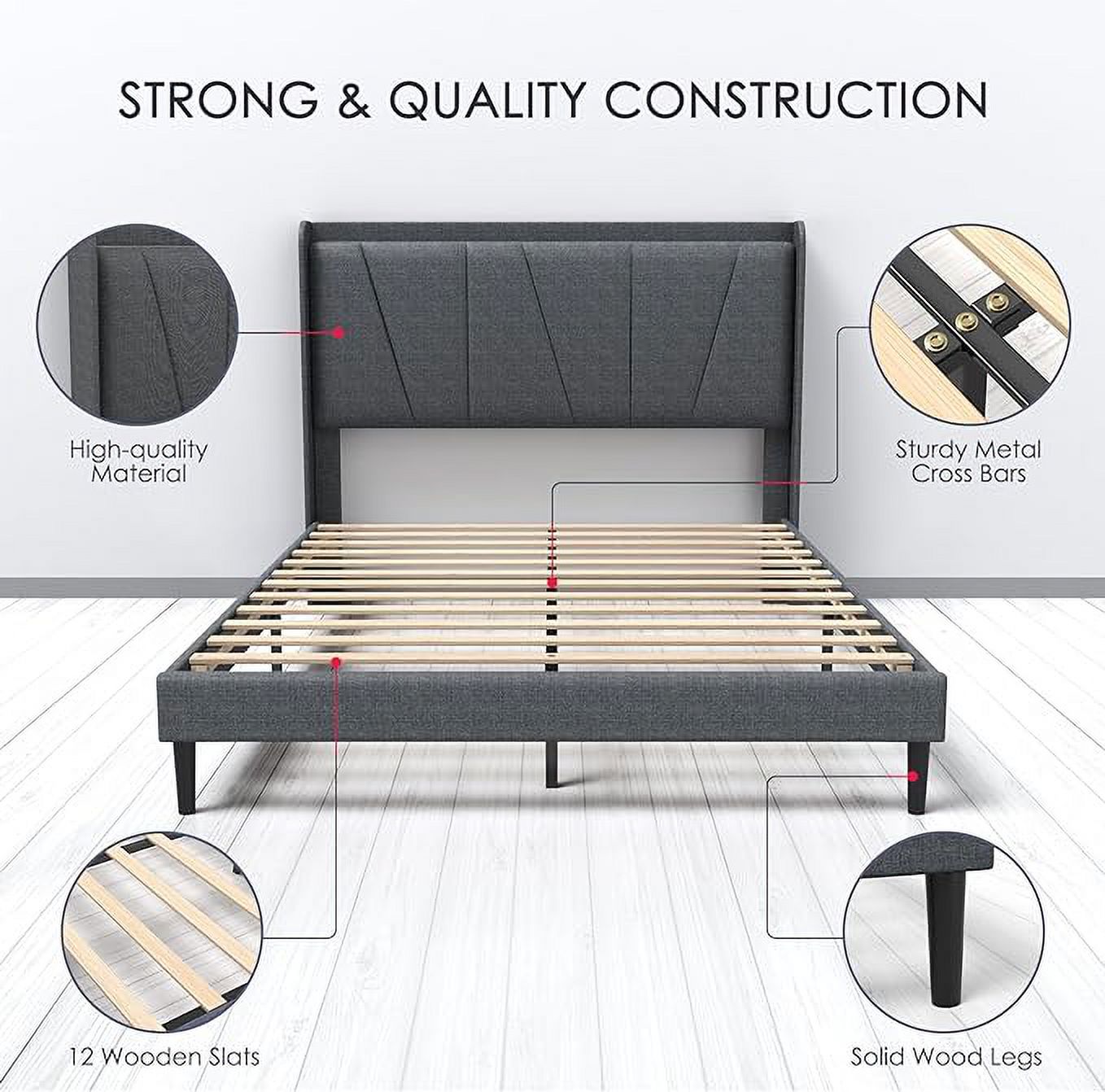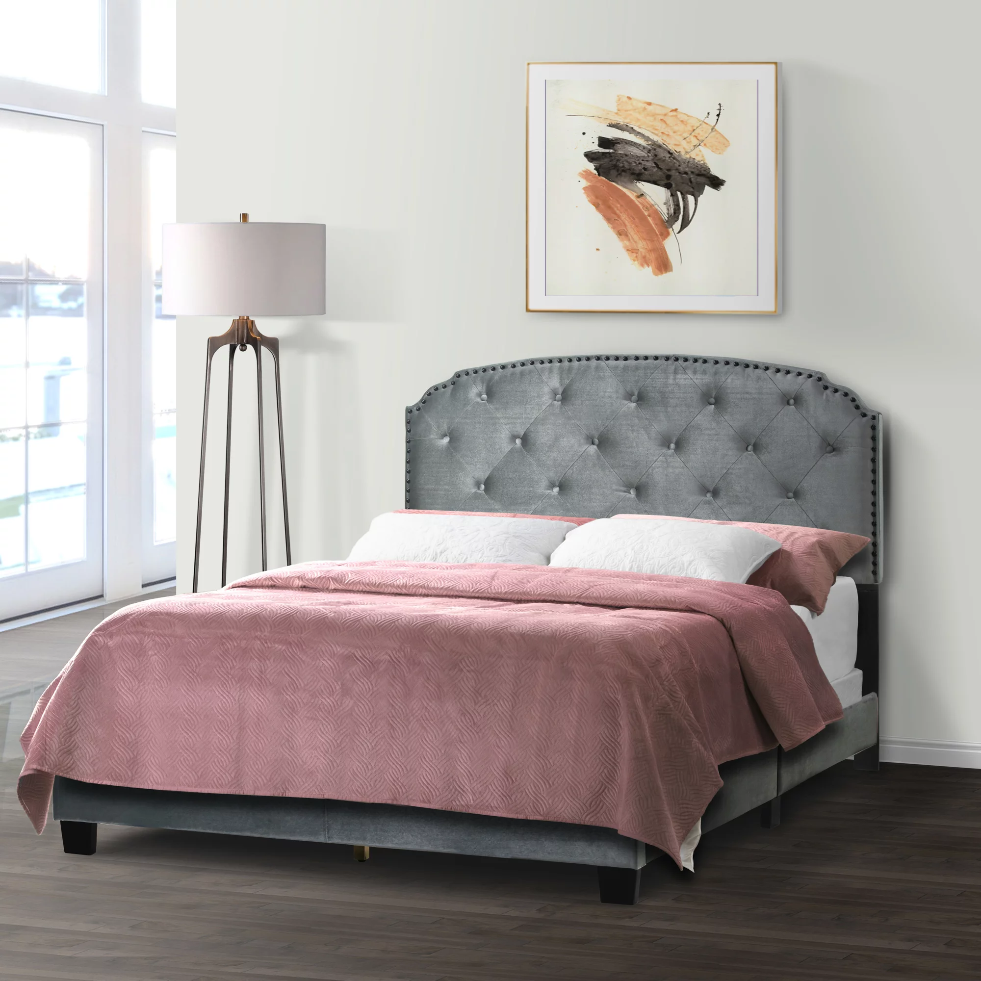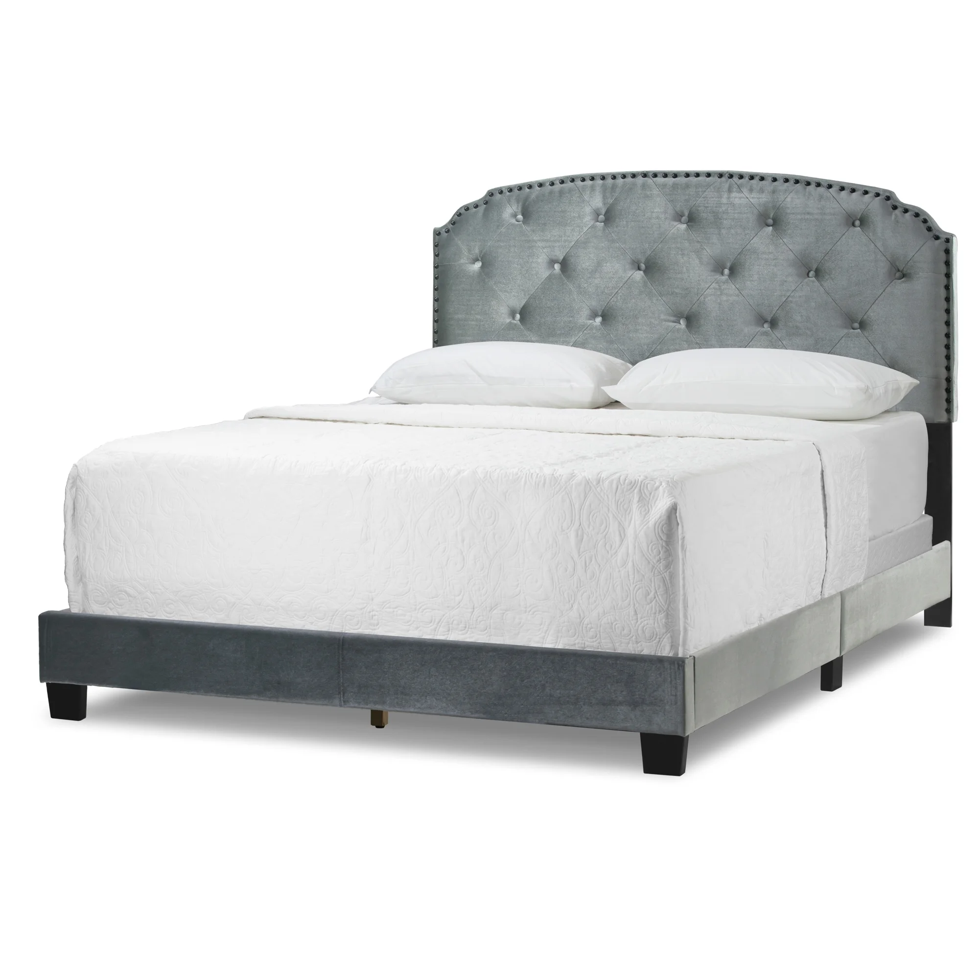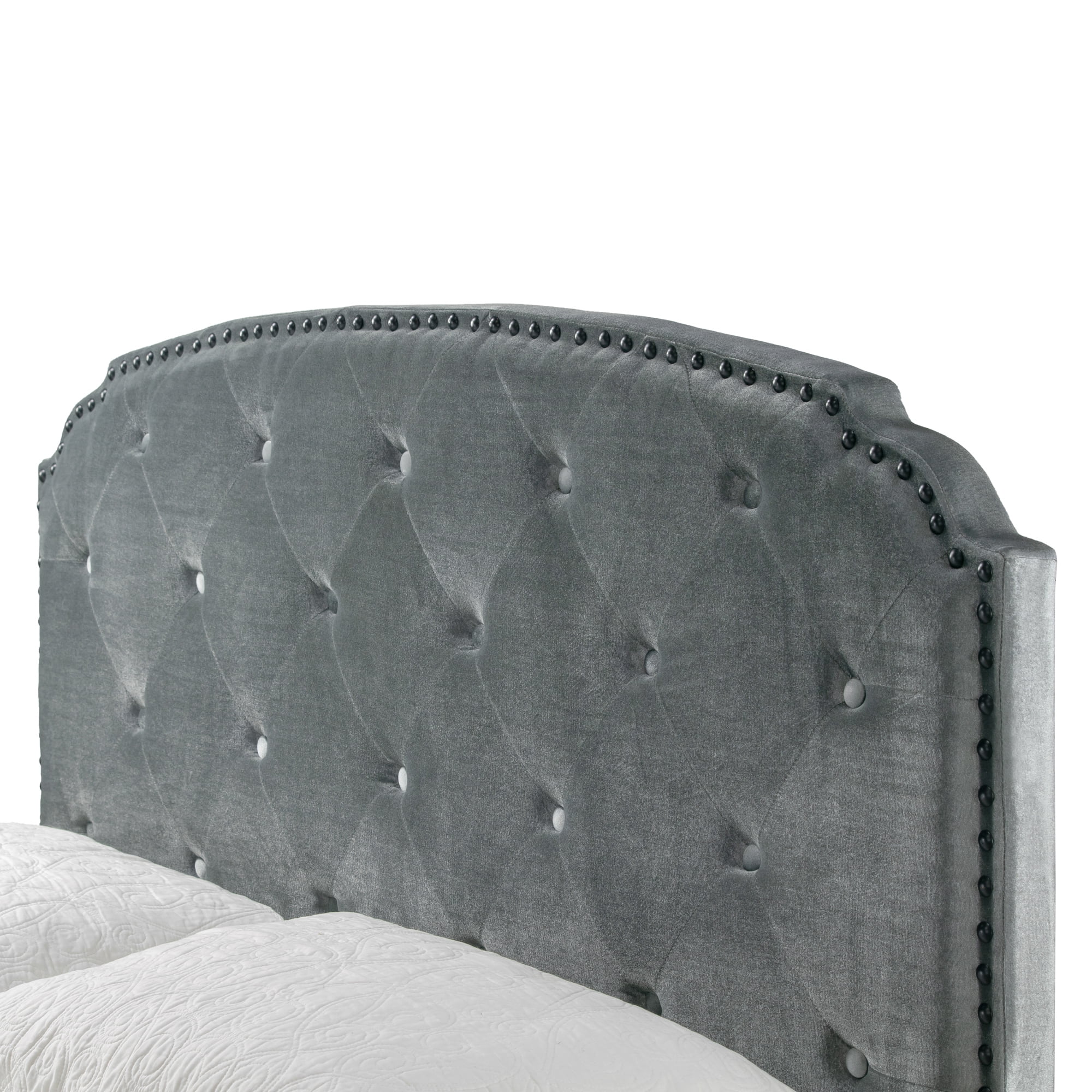 Glamour Home Arin Queen Bed with Button Tufting and Nail Head Trim in Gray