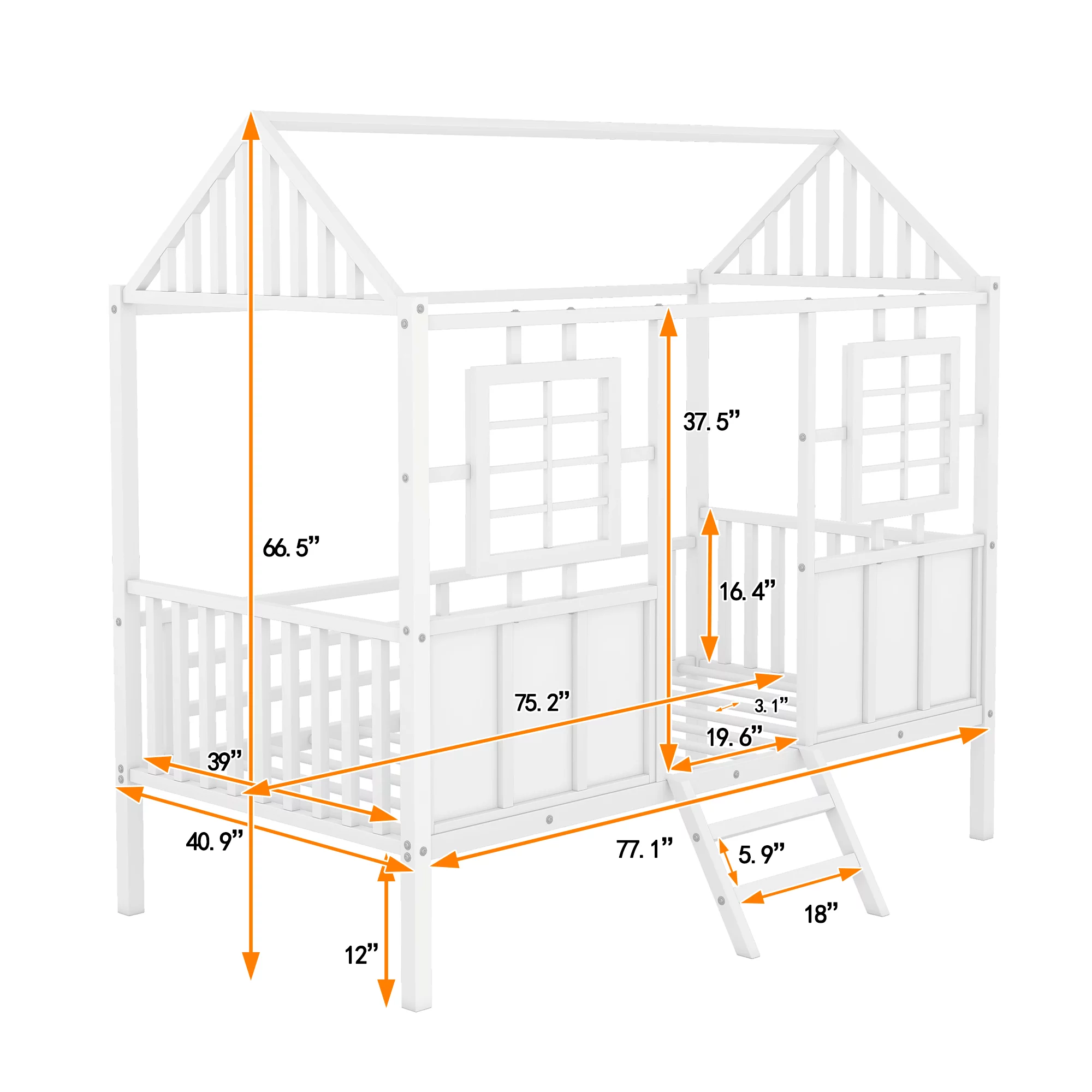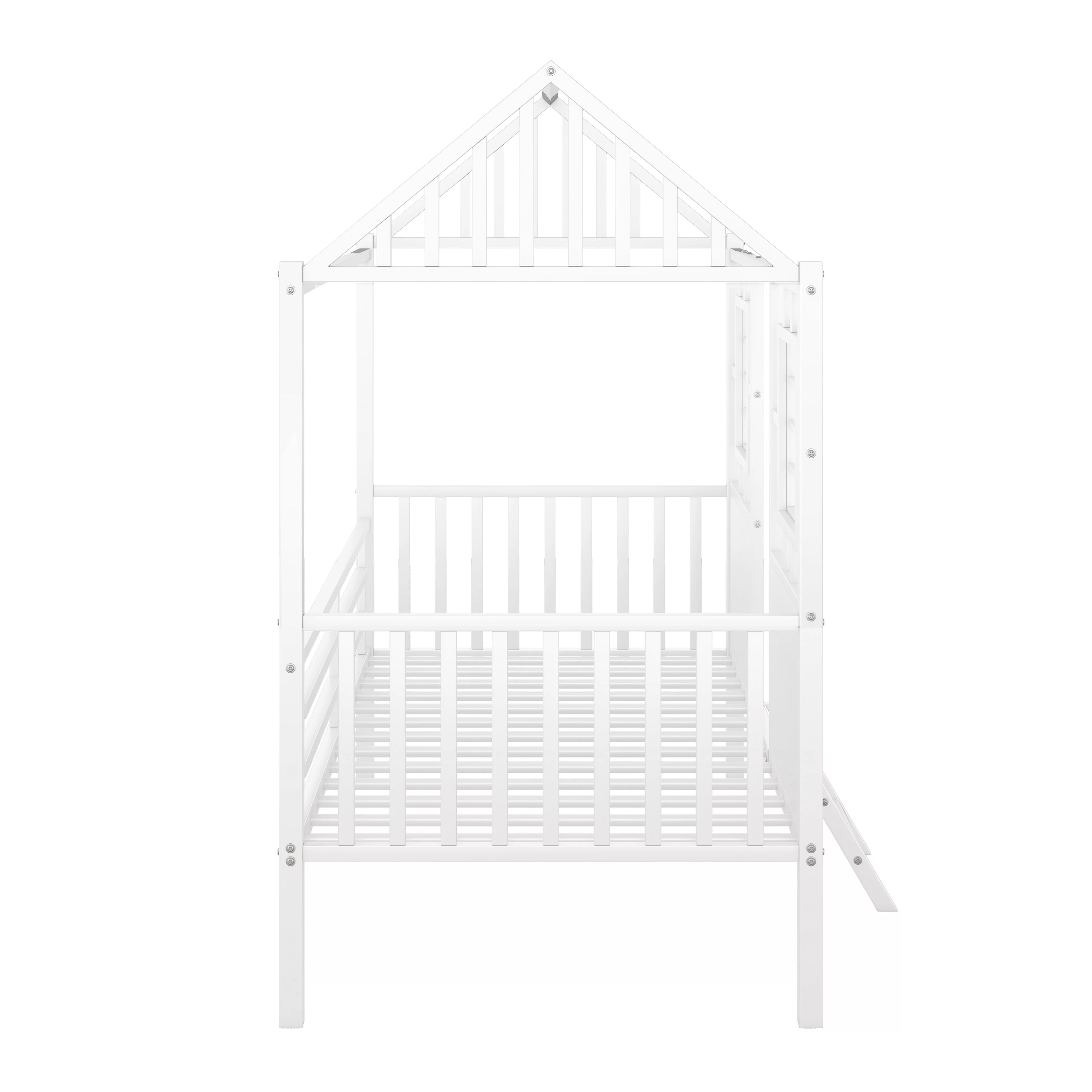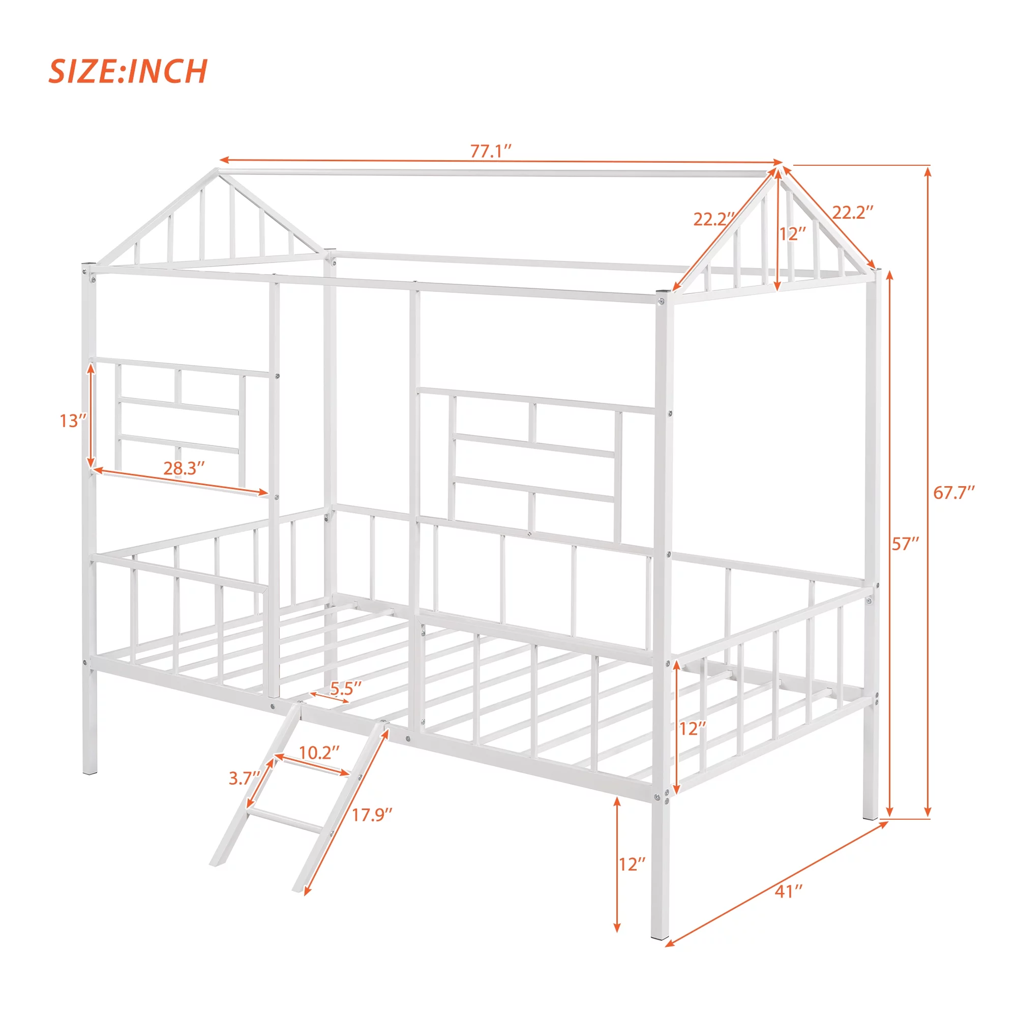 House Bed Twin Bed for Kids, Metal Loft Bed Frame with Roof, Metal Platform Bed for Toddlers, Kids, Girls & Boys(White)