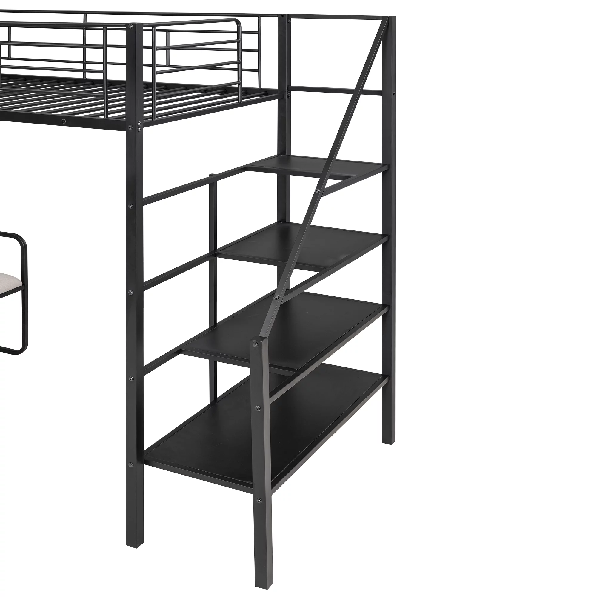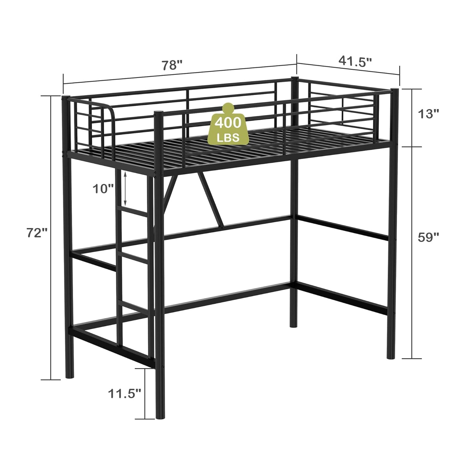 Nestfair Black Twin Size Metal Low Loft House Bed with Roof and Front Windows