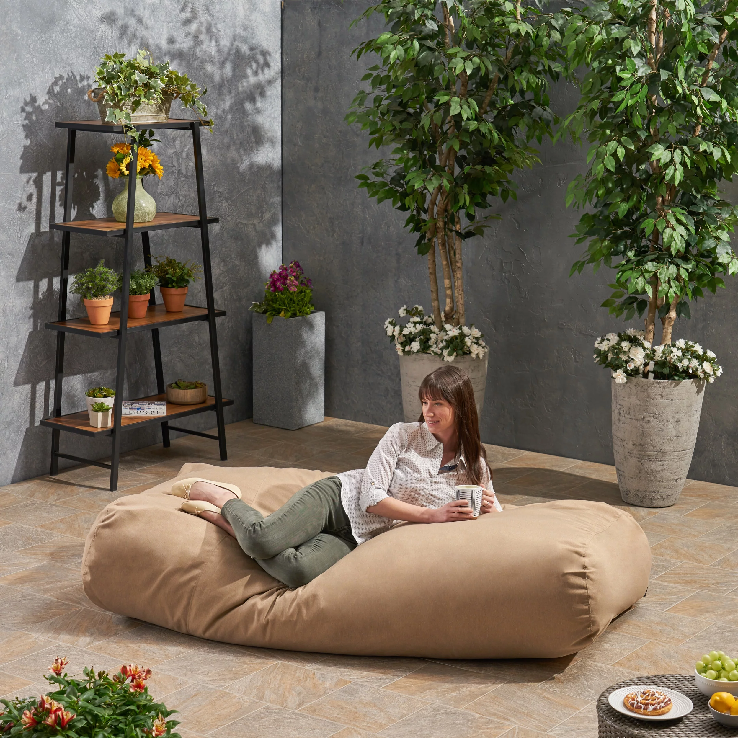 Cecelia Outdoor Water Resistant Fabric 6' x 3' Lounger Bean Bag, Tuscany