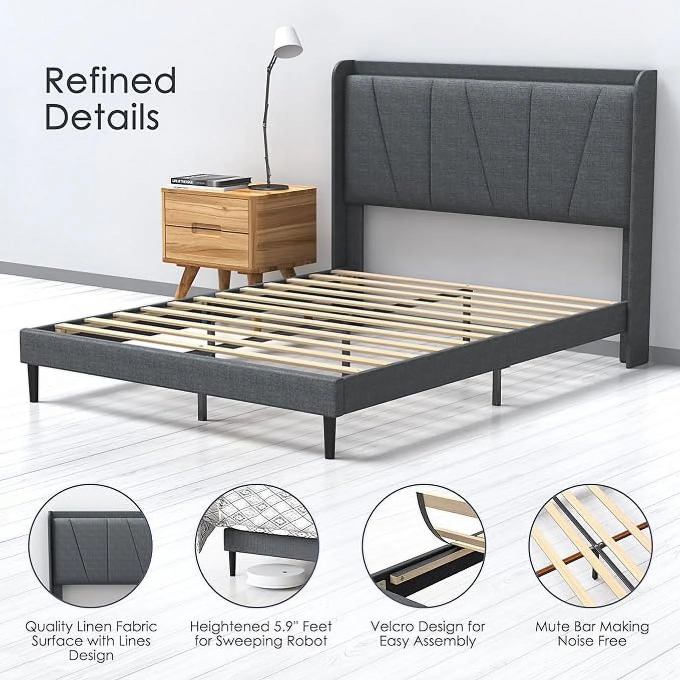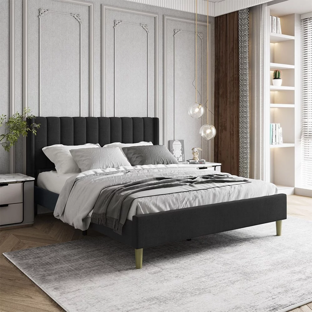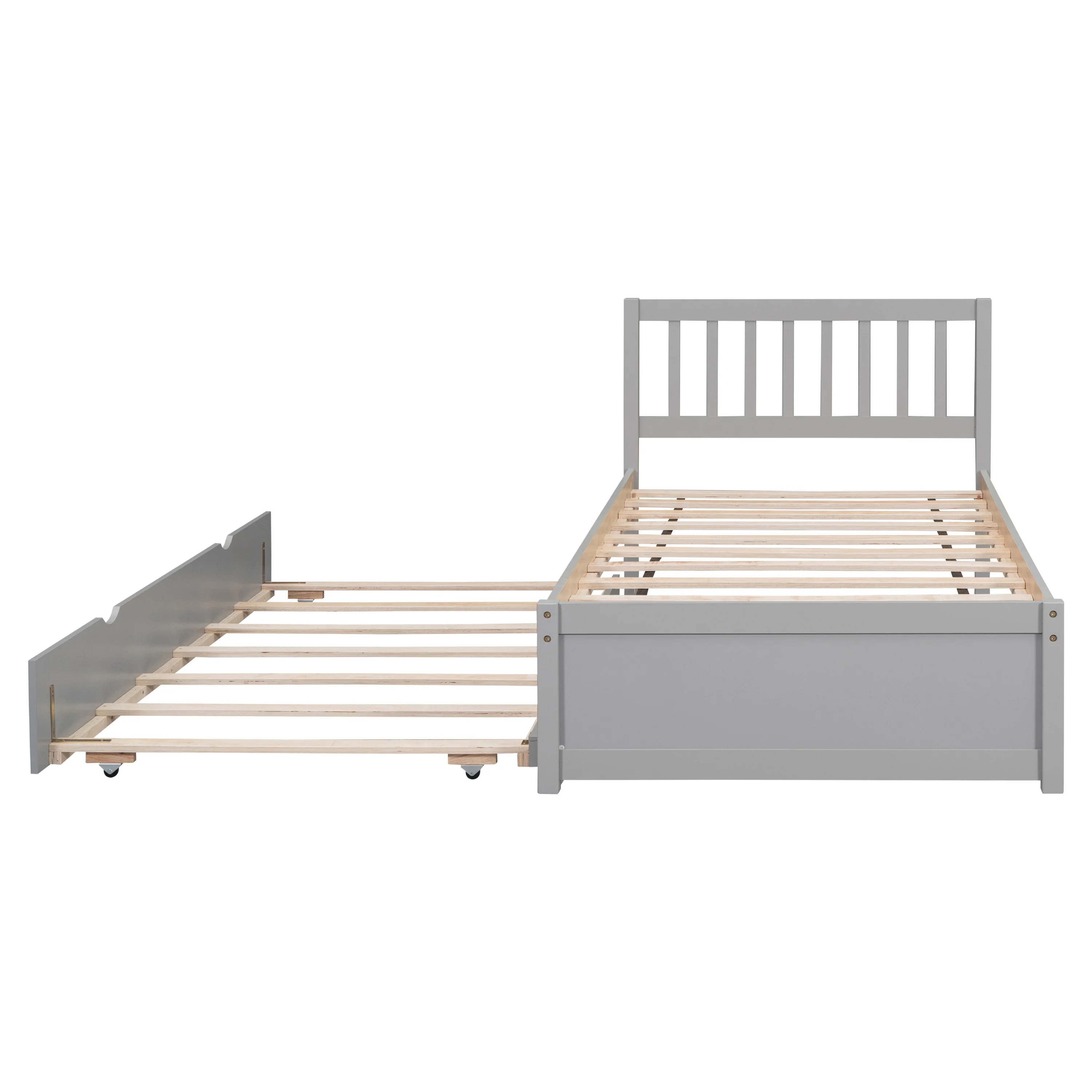 CoSoTower Modern Design Wooden Twin Size Platform Bed Frame with Trundle for Grey Color