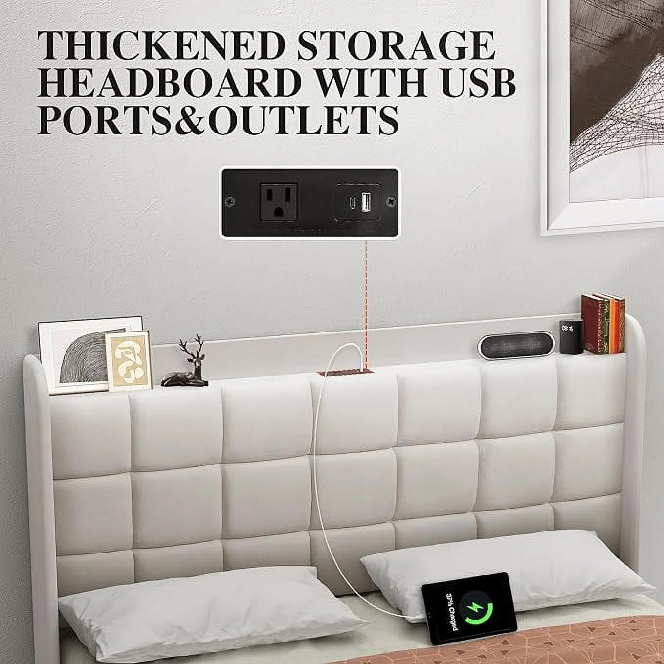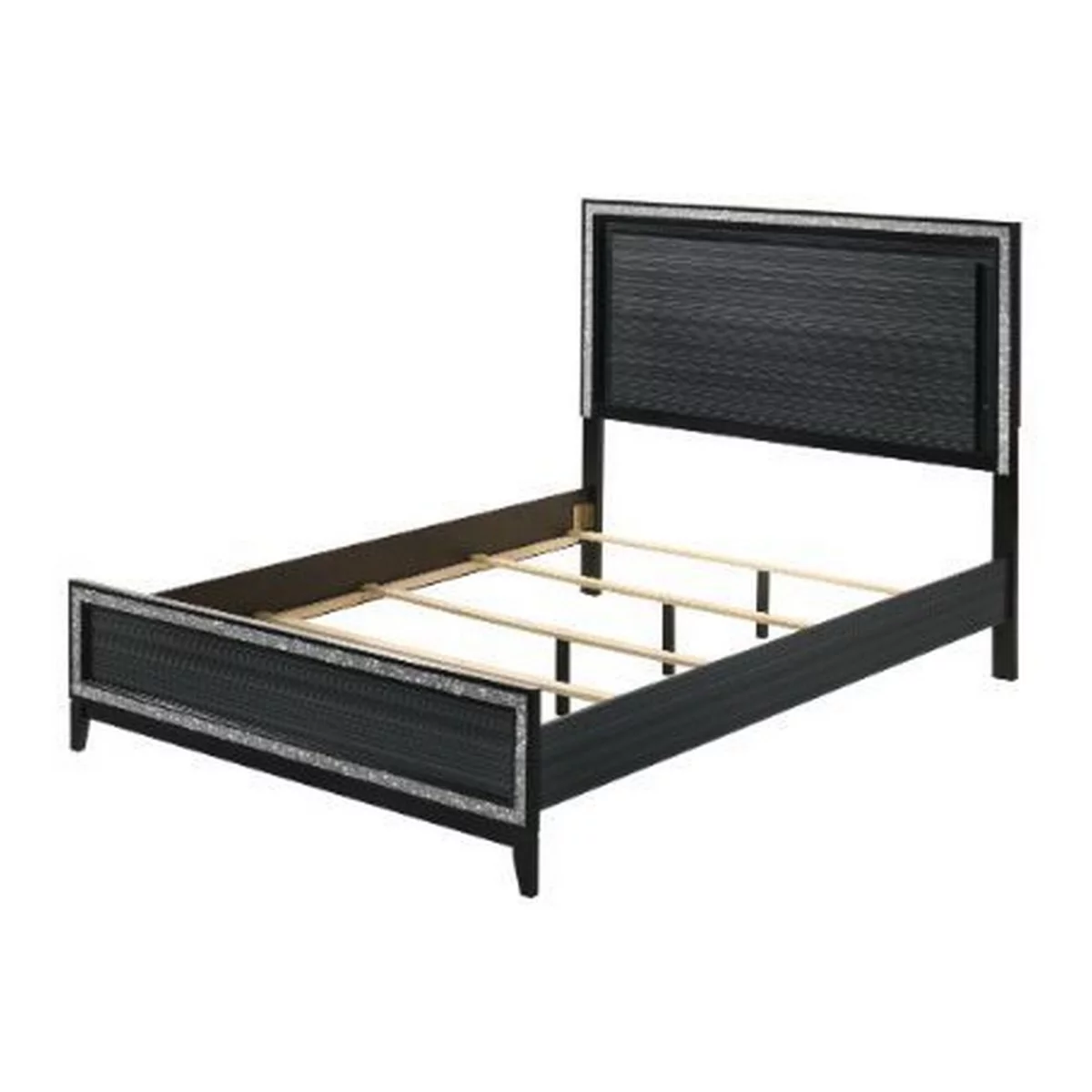 Benjara Eastern King Bed with LED Headboard and Shimmering Trim, Black