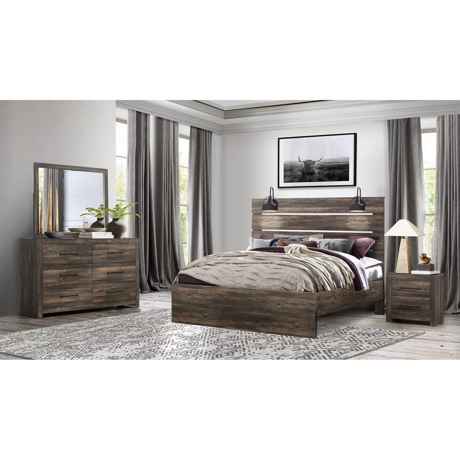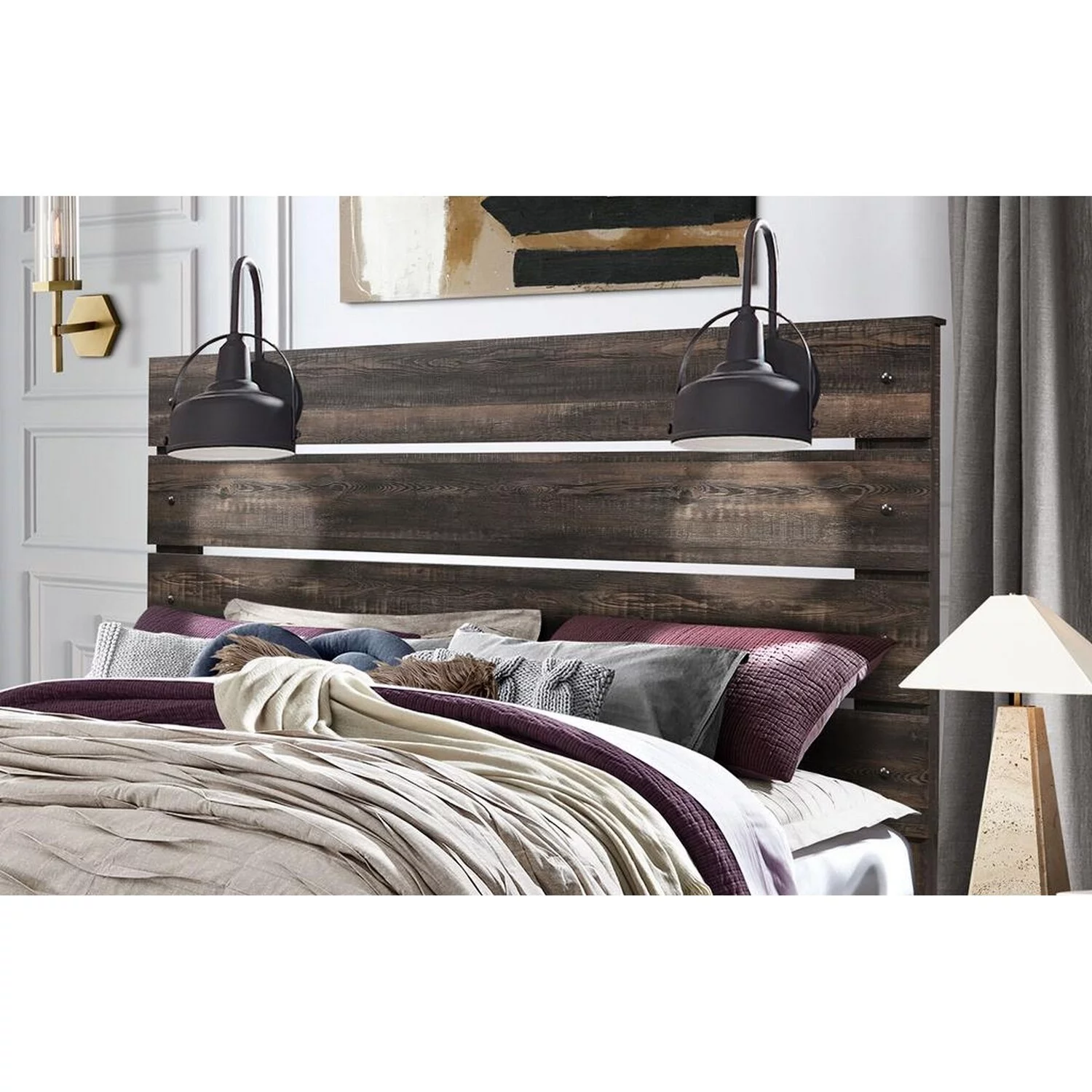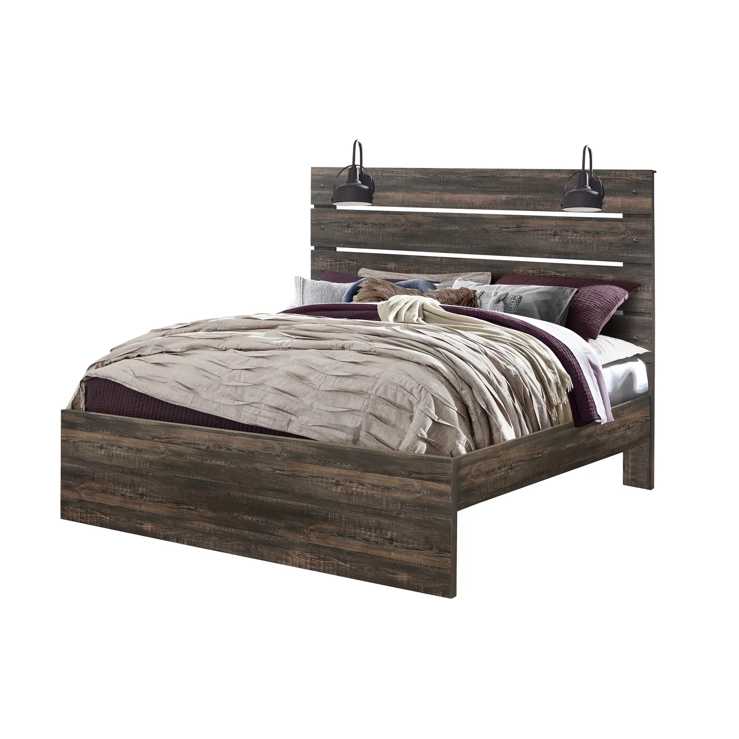 Two-Tone Finish 1pc Full Size Bed Faux Wood Melamine Laminate Transitional-Rustic Bedroom Furniture