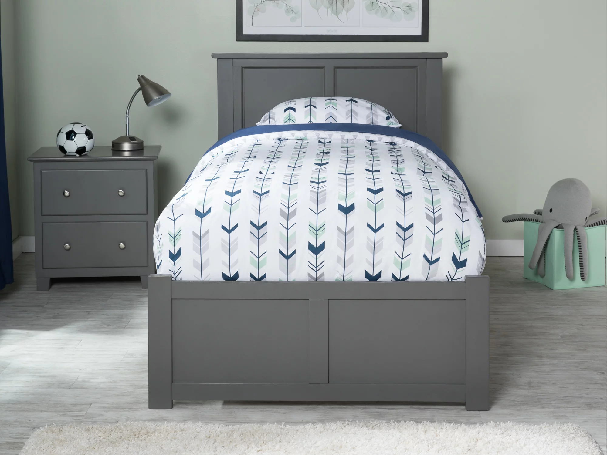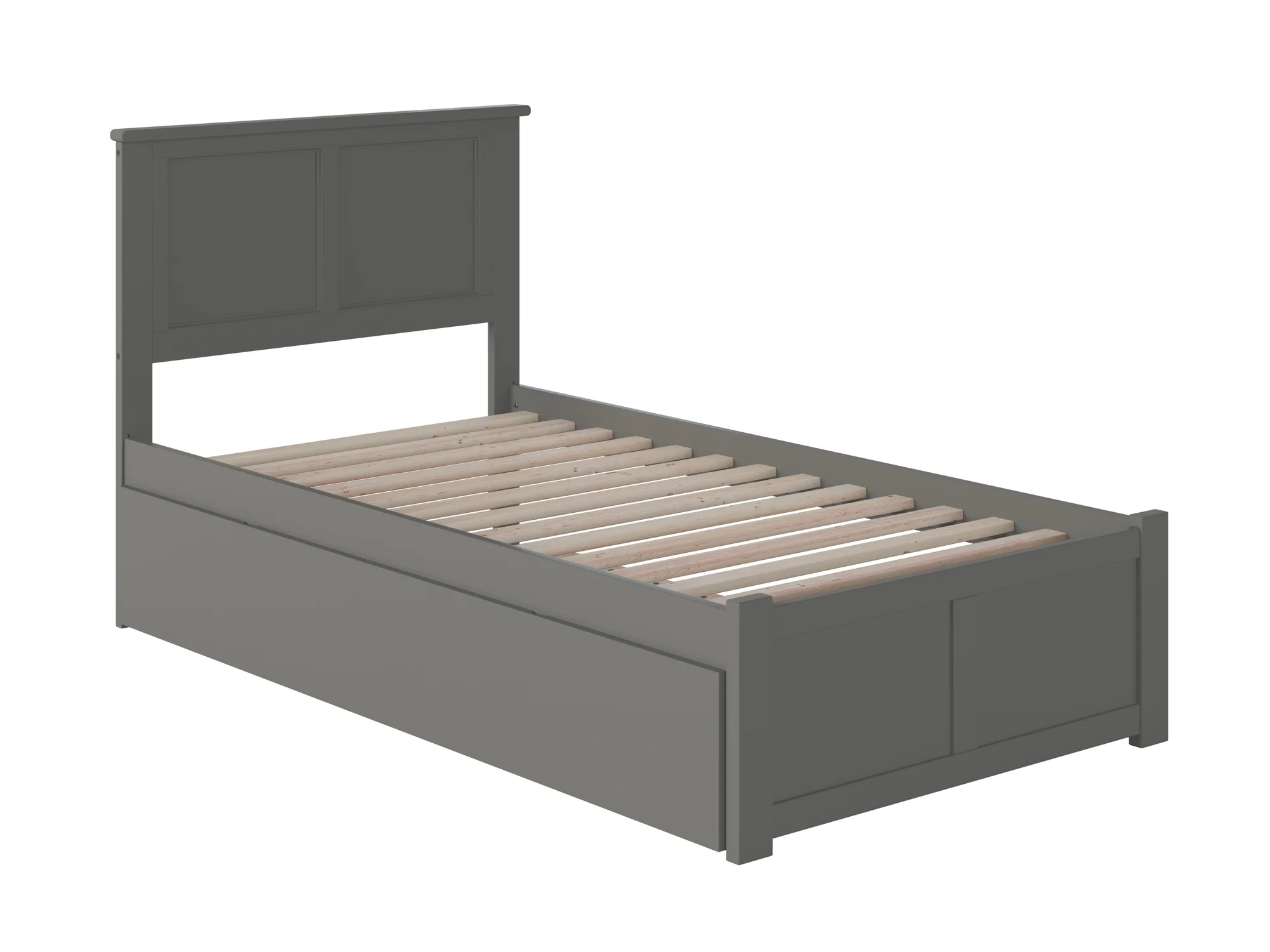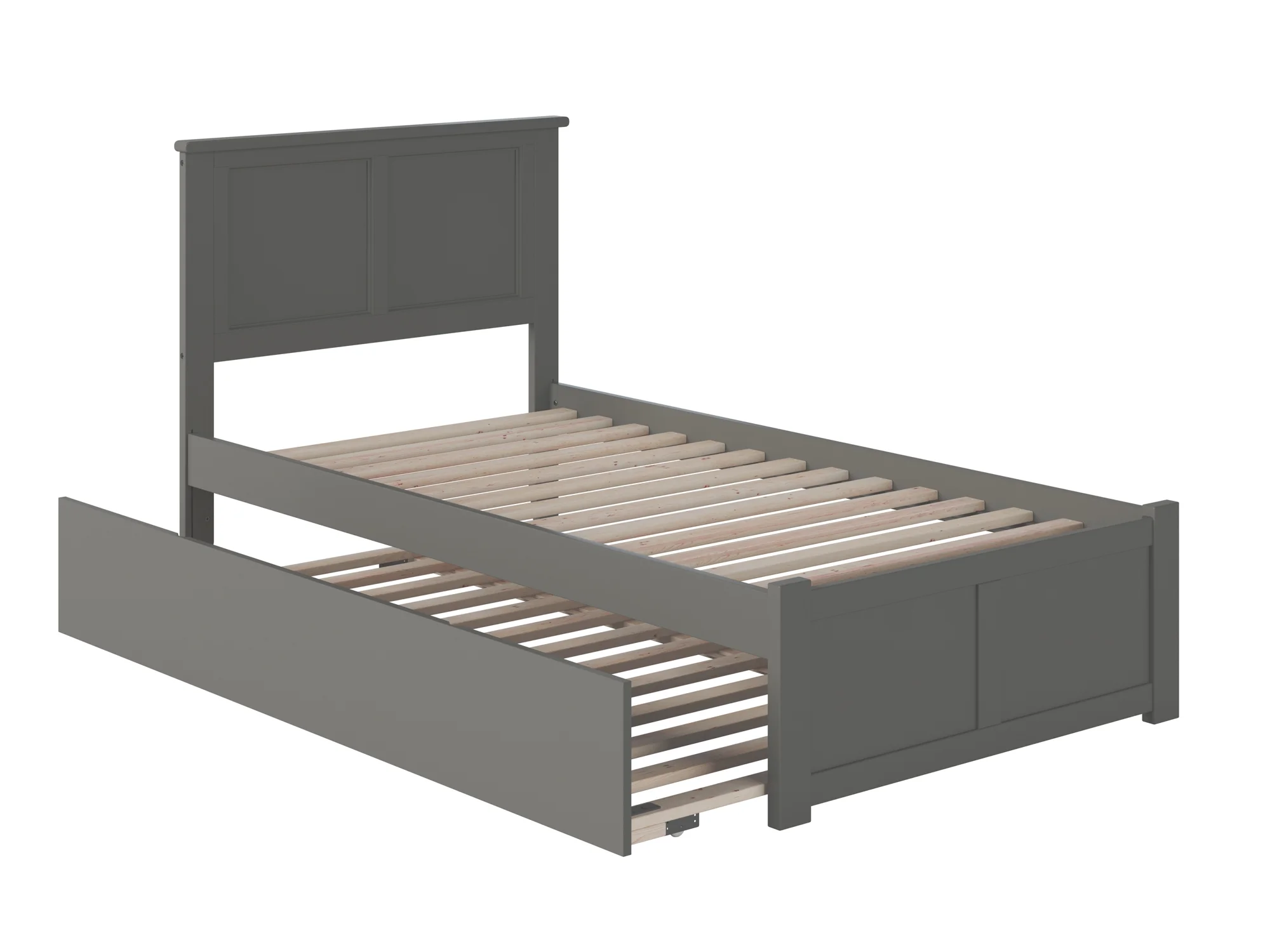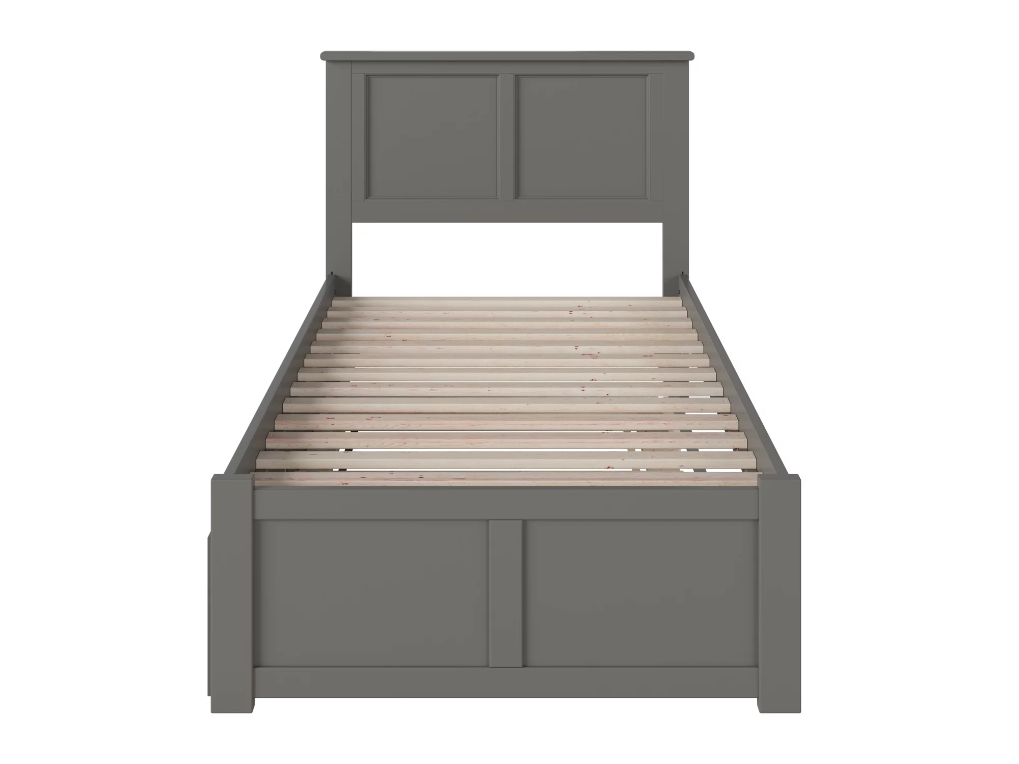 AFI Madison Twin Solid Wood Platform Bed with Footboard & Twin Trundle in Grey