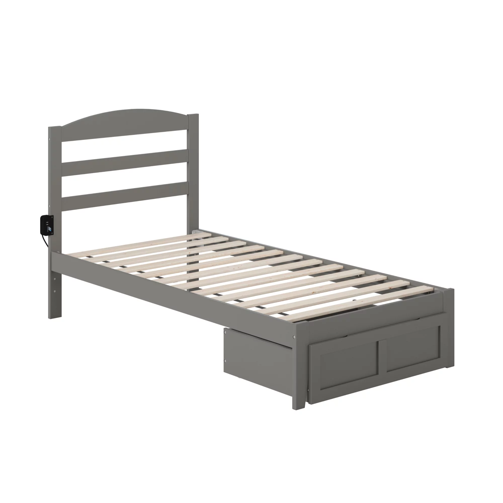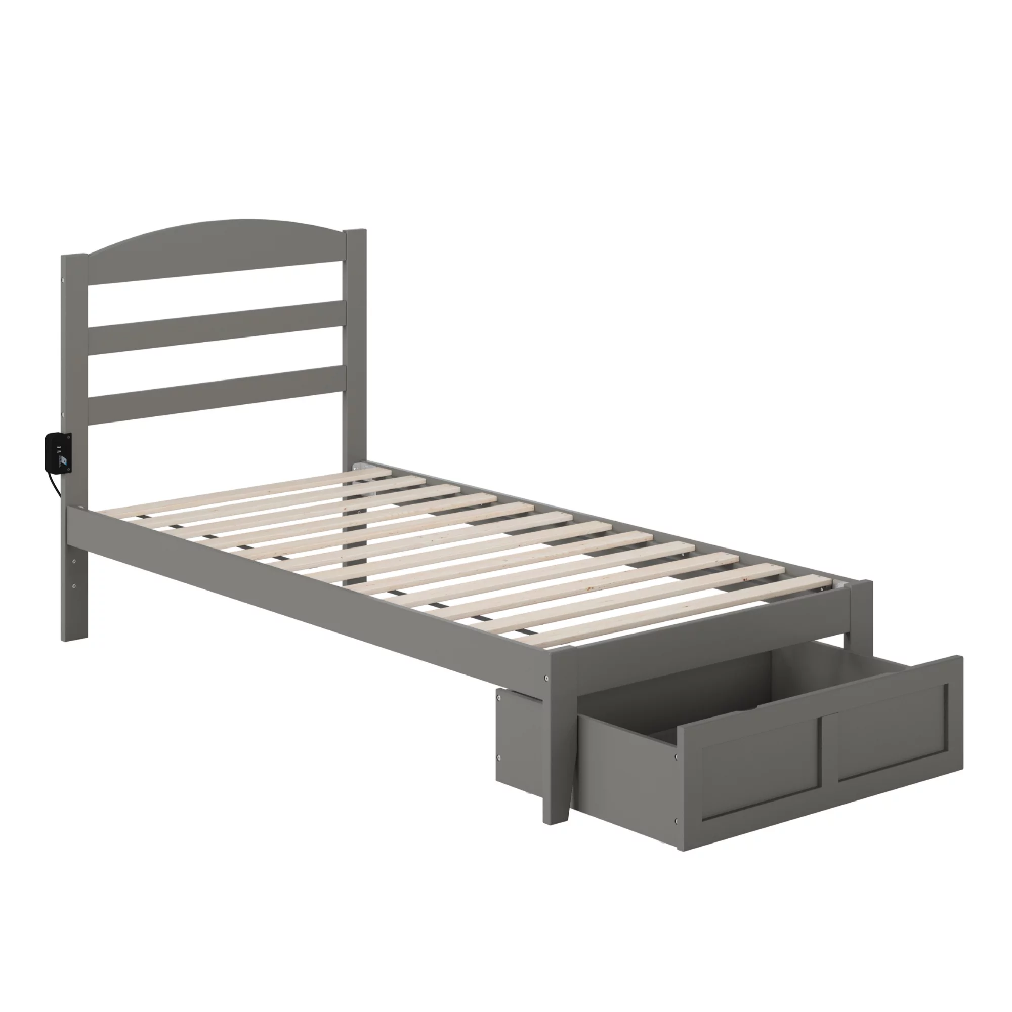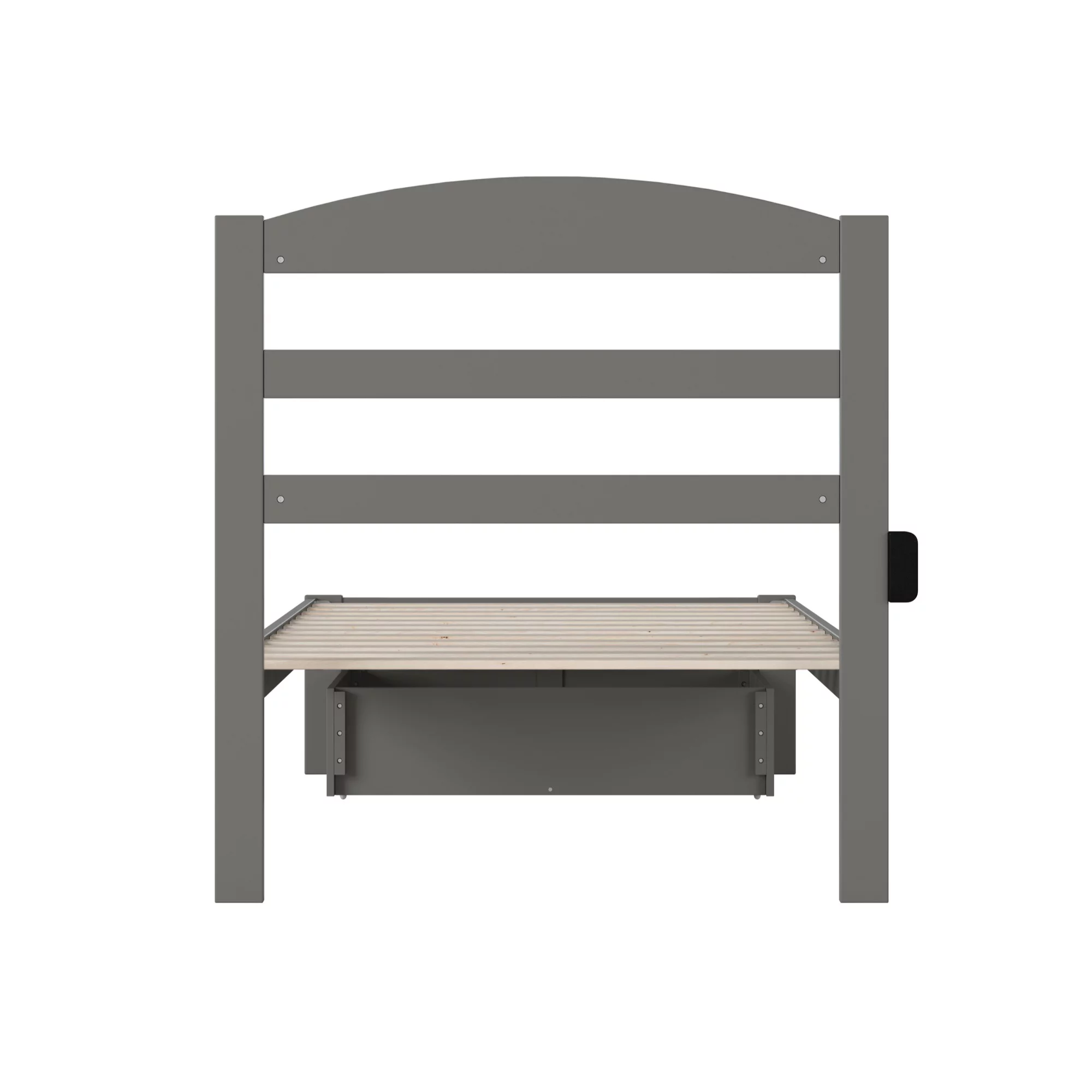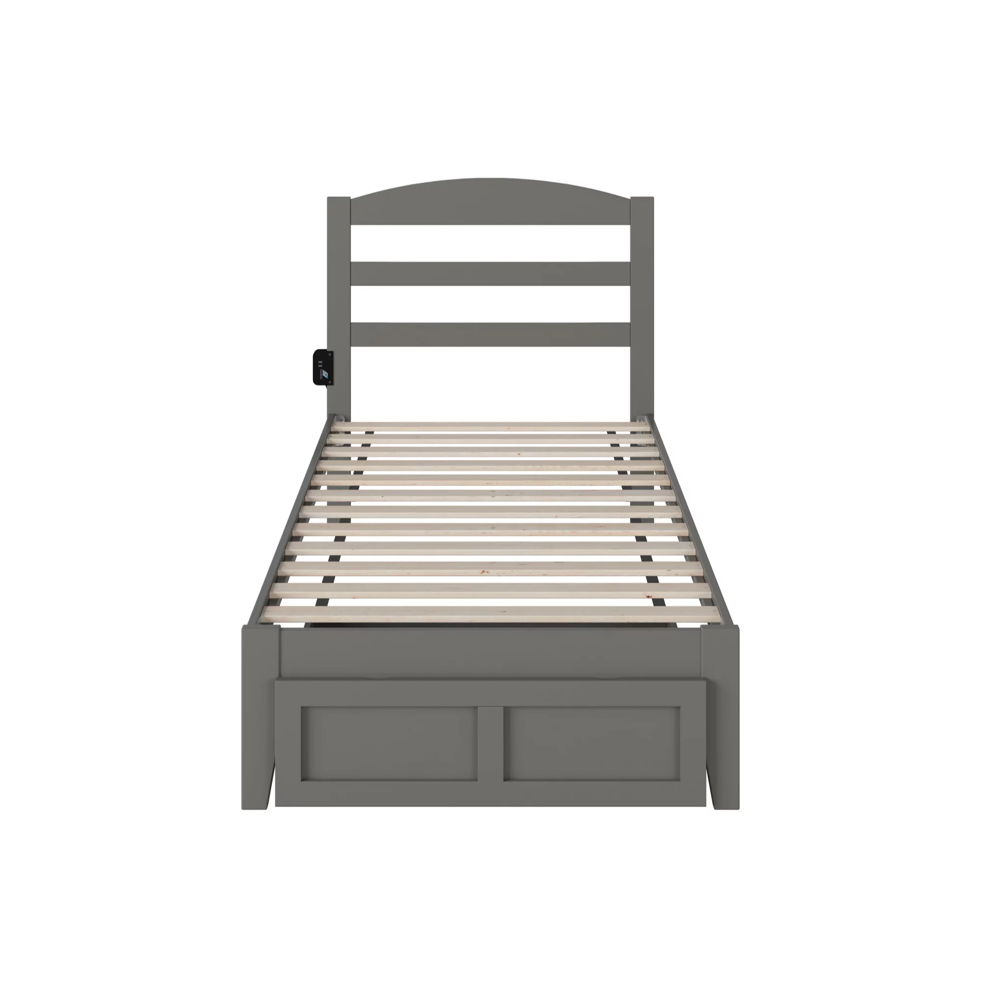AFI Madison Twin Solid Wood Platform Bed with Footboard & Twin Trundle in Grey