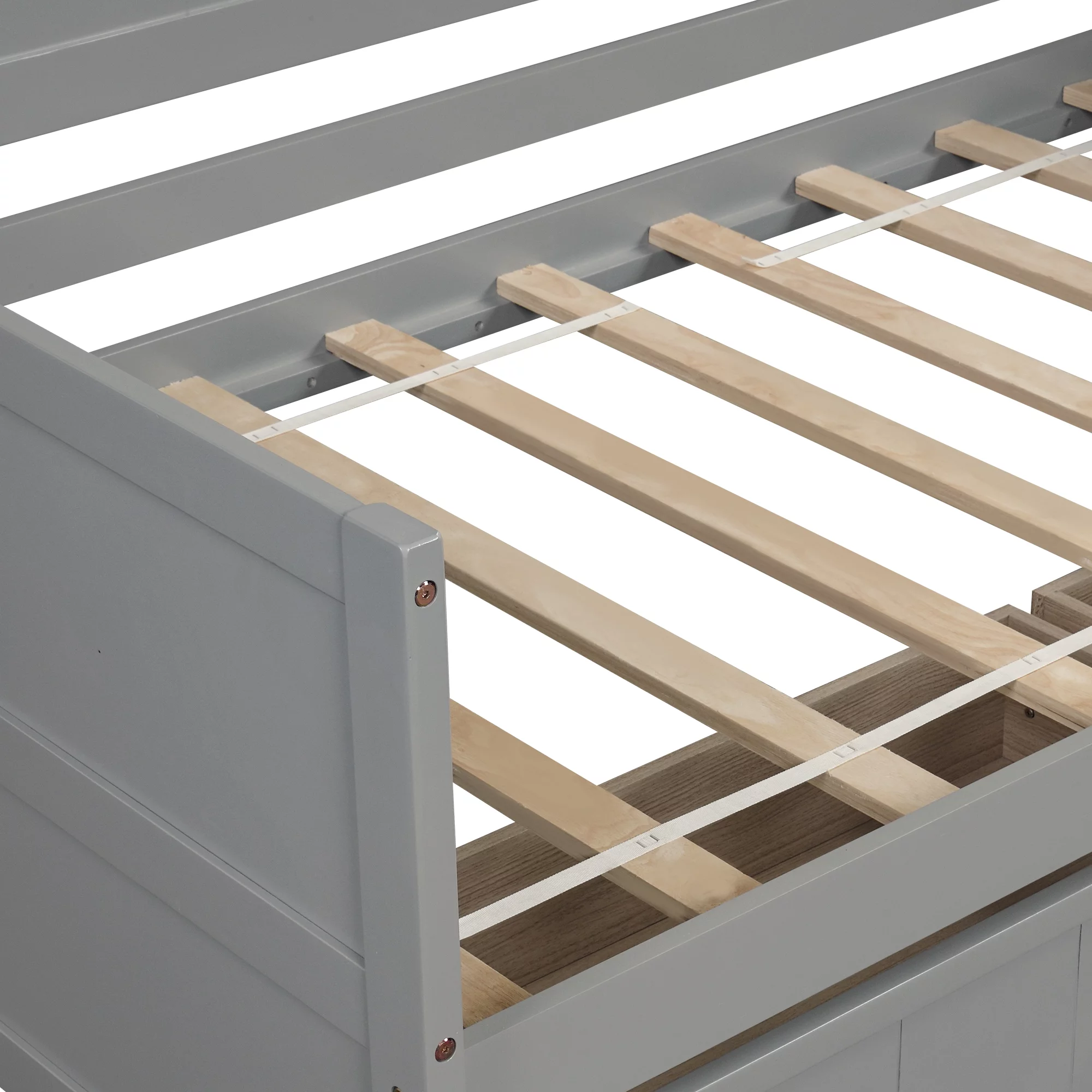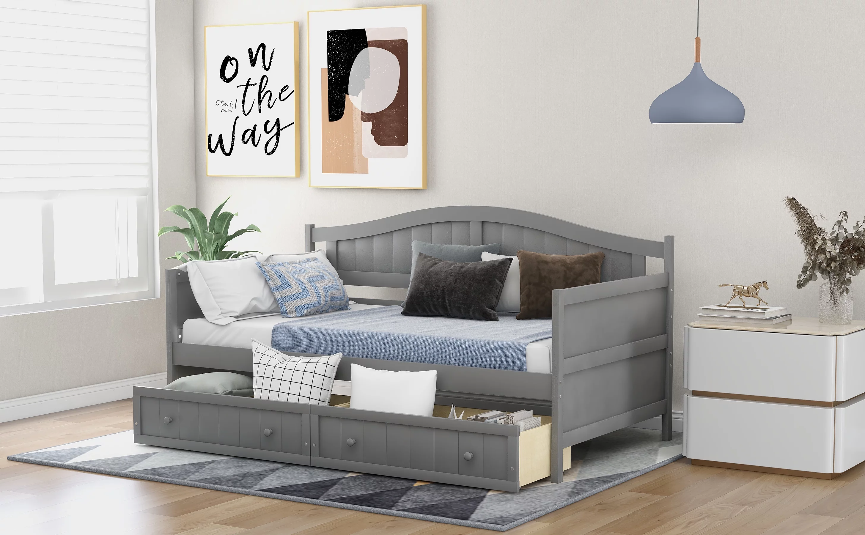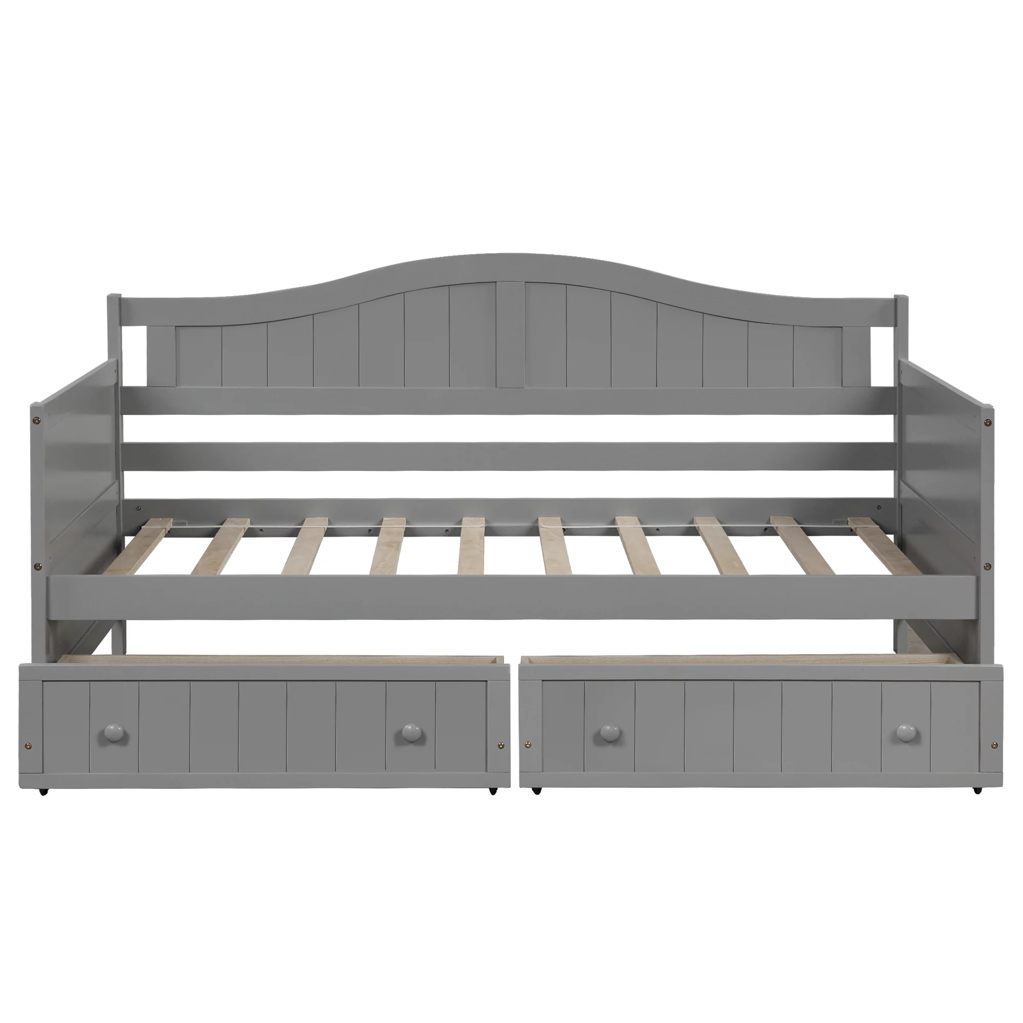 Twin Wooden Daybed with 2 drawers, Sofa Bed for Bedroom Living Room,No Box Spring Needed,Gray