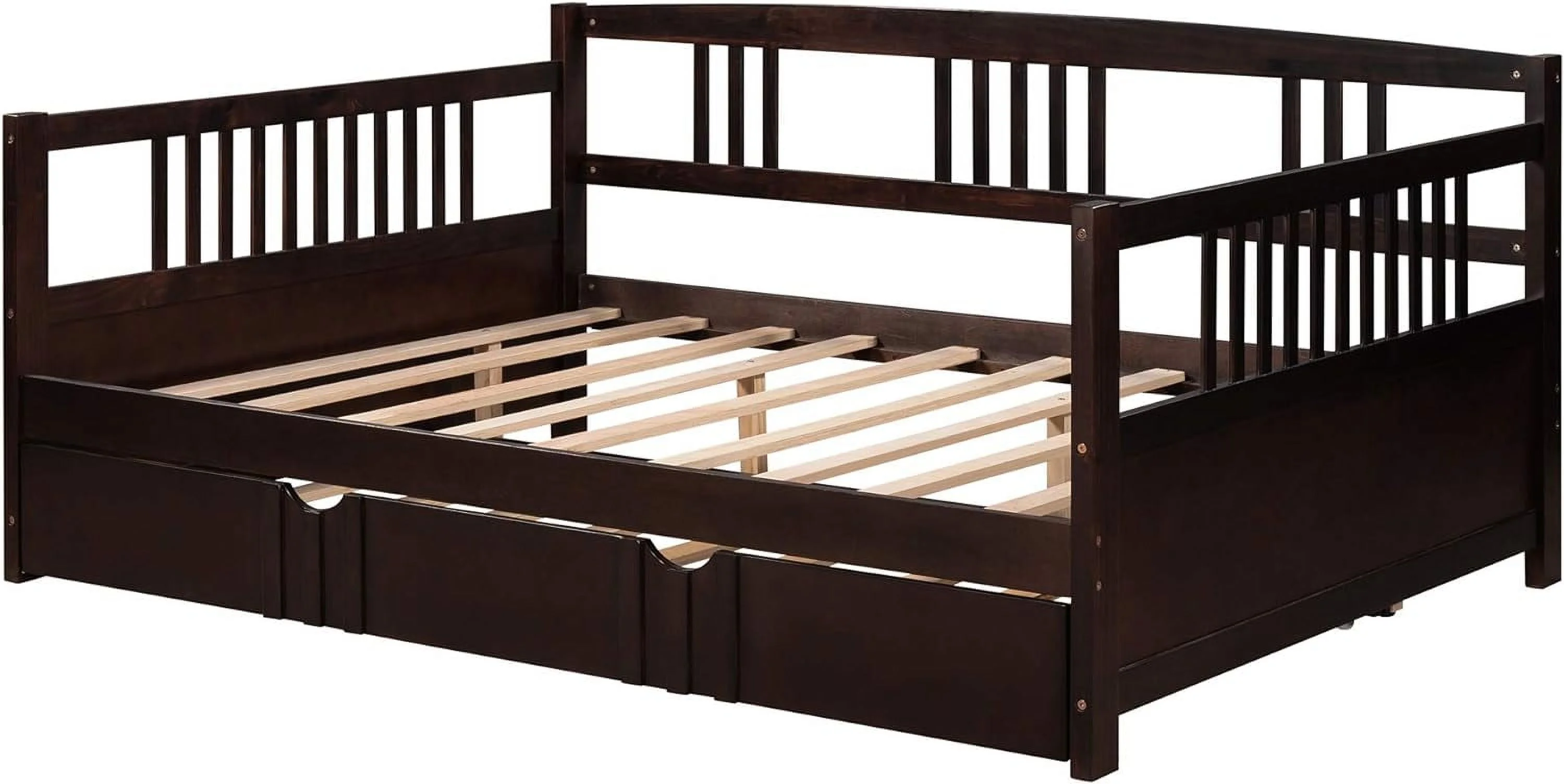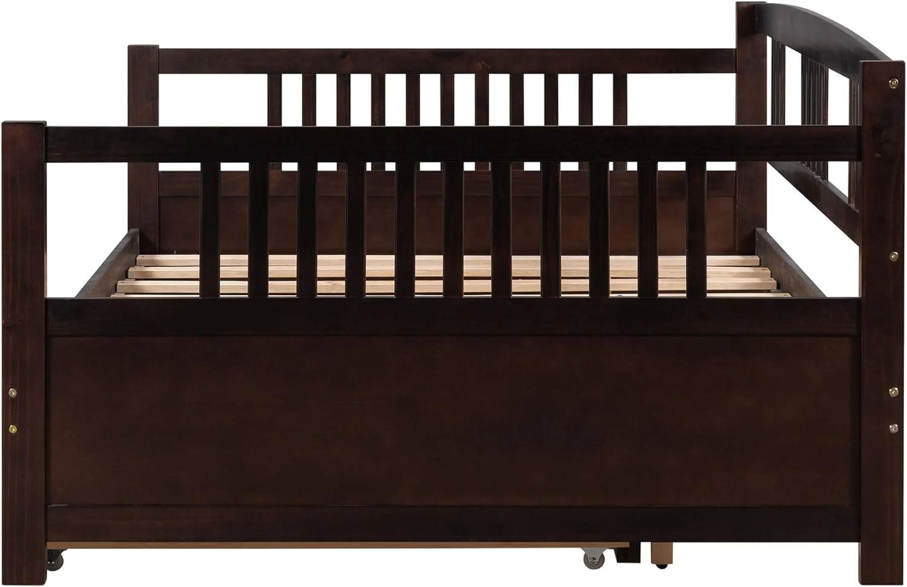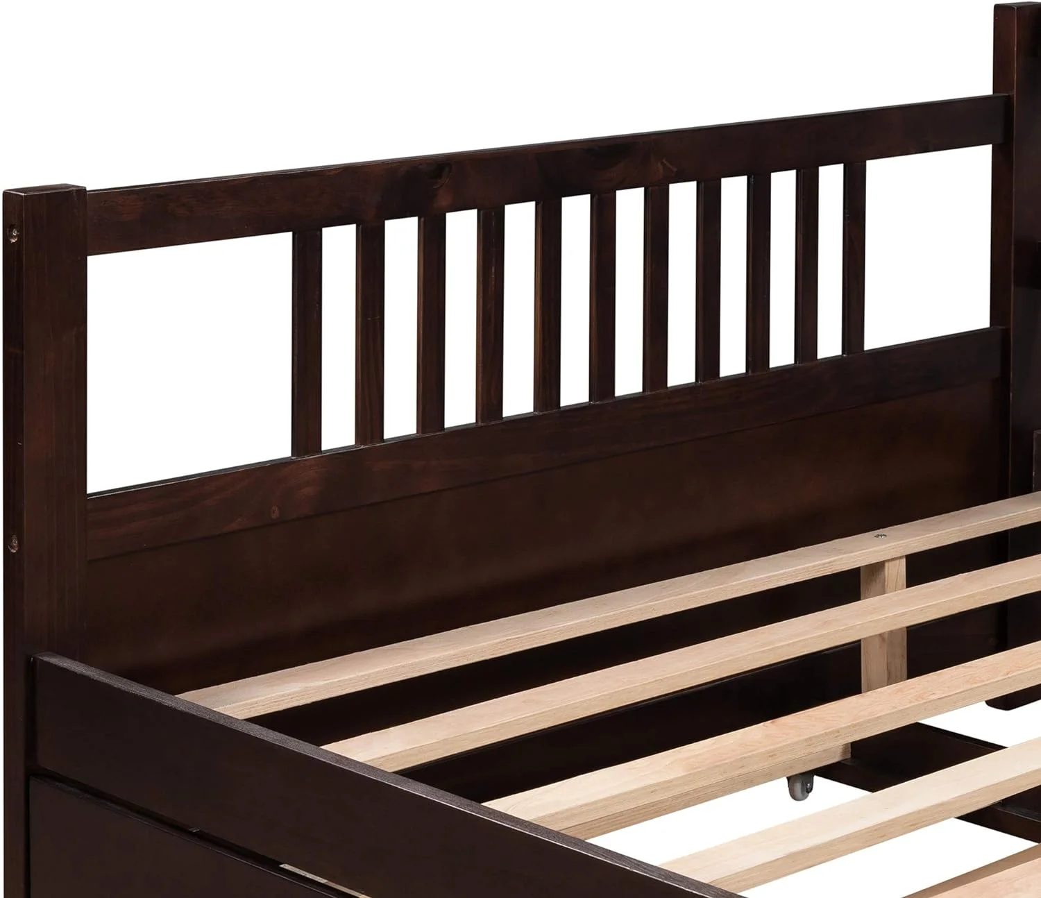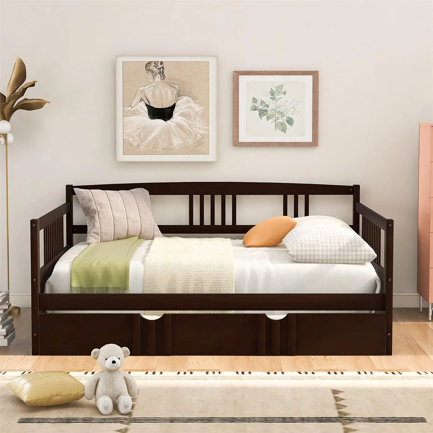 Twin Wooden Daybed with 2 drawers, Sofa Bed for Bedroom Living Room,No Box Spring Needed,Espresso
