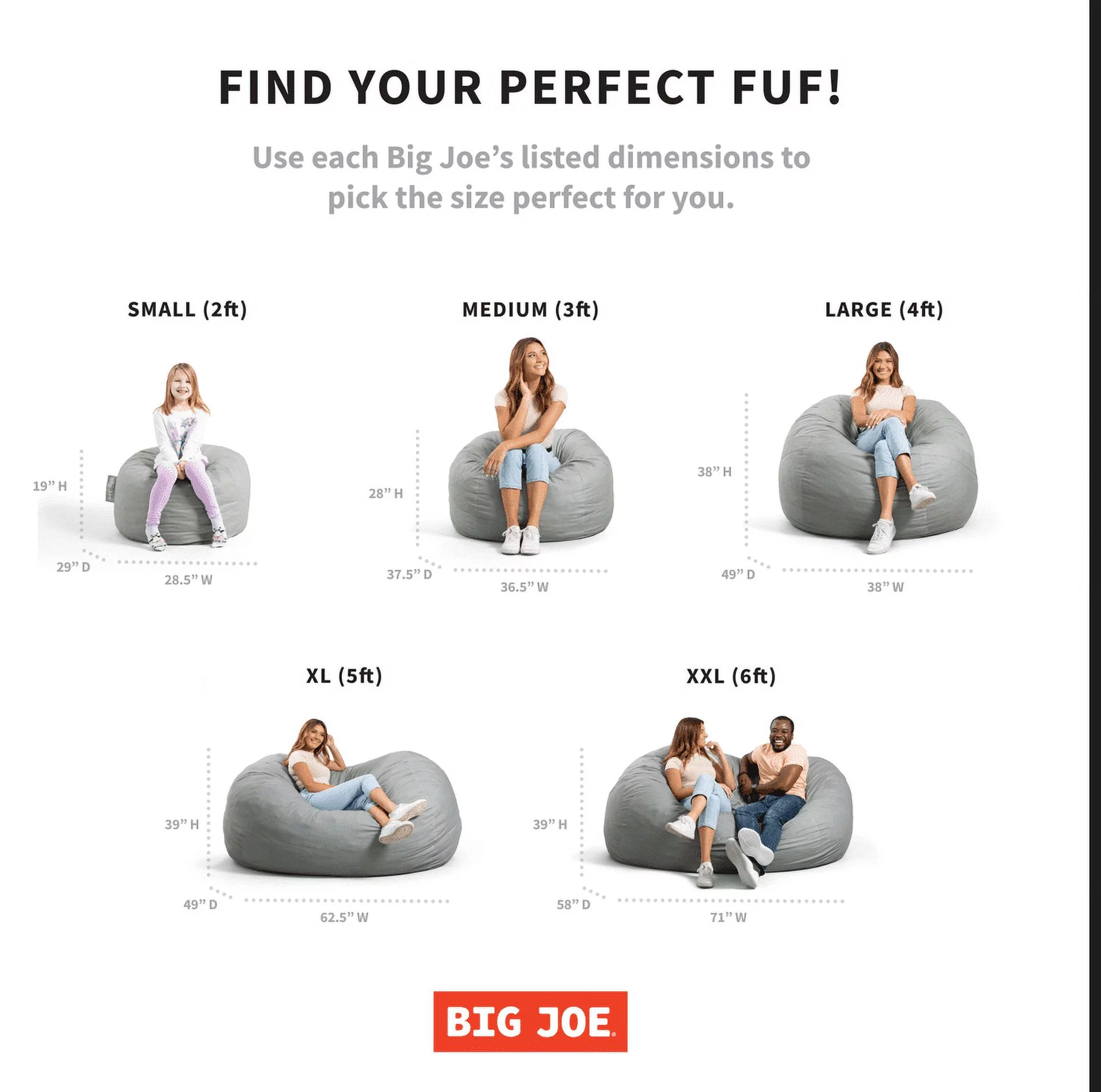 Chill Sack Bean Bag Chair, Memory Foam Lounger with Microsuede Cover, Kids, Adults, 6 ft, Charcoal