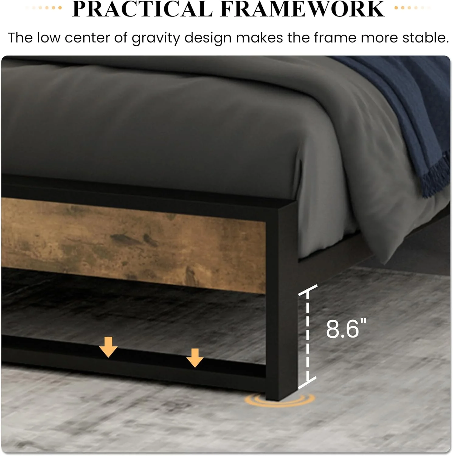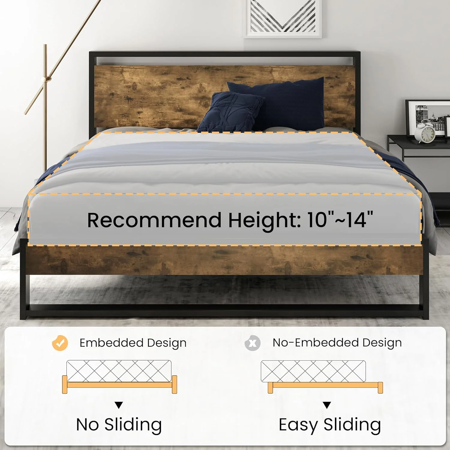 Yaheetech Metal Bed with High Headboard and Footboard with Storage 77.17"x55.91"x41.73"