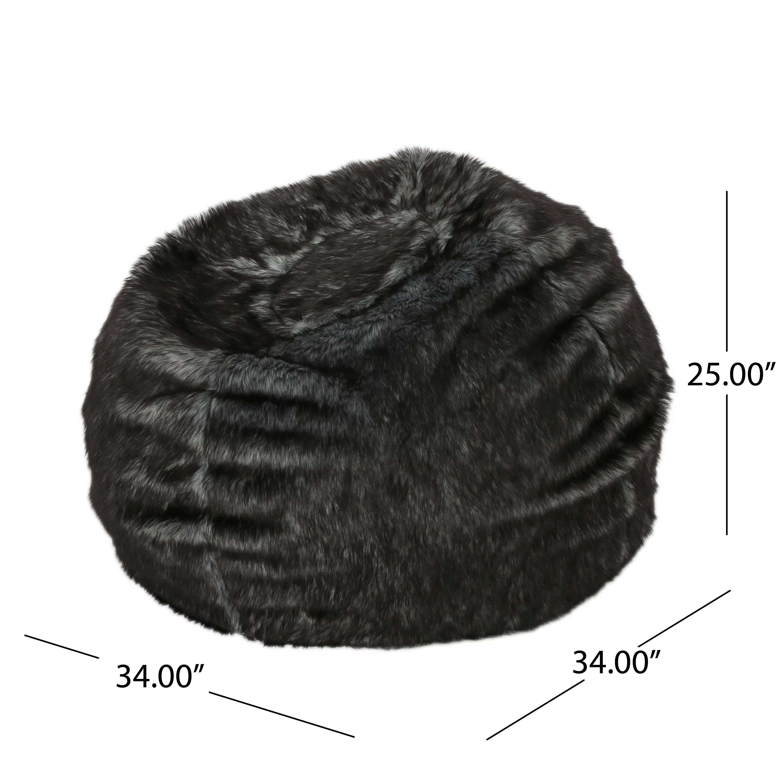 GDF Studio Laraine Glam Faux Fur 3 Ft. Bean Bag, Black and White Streak