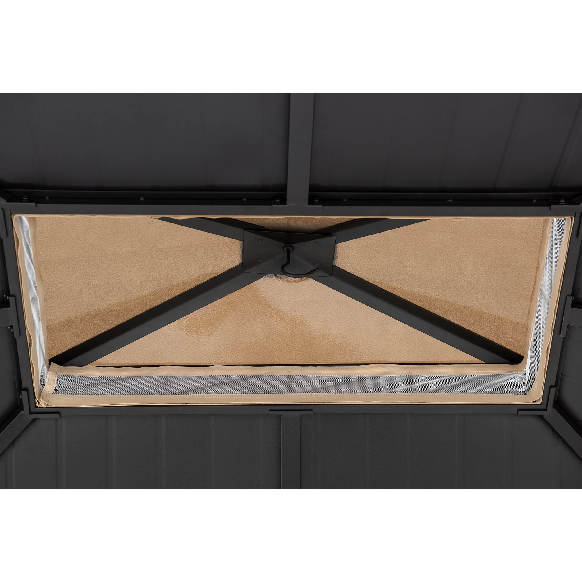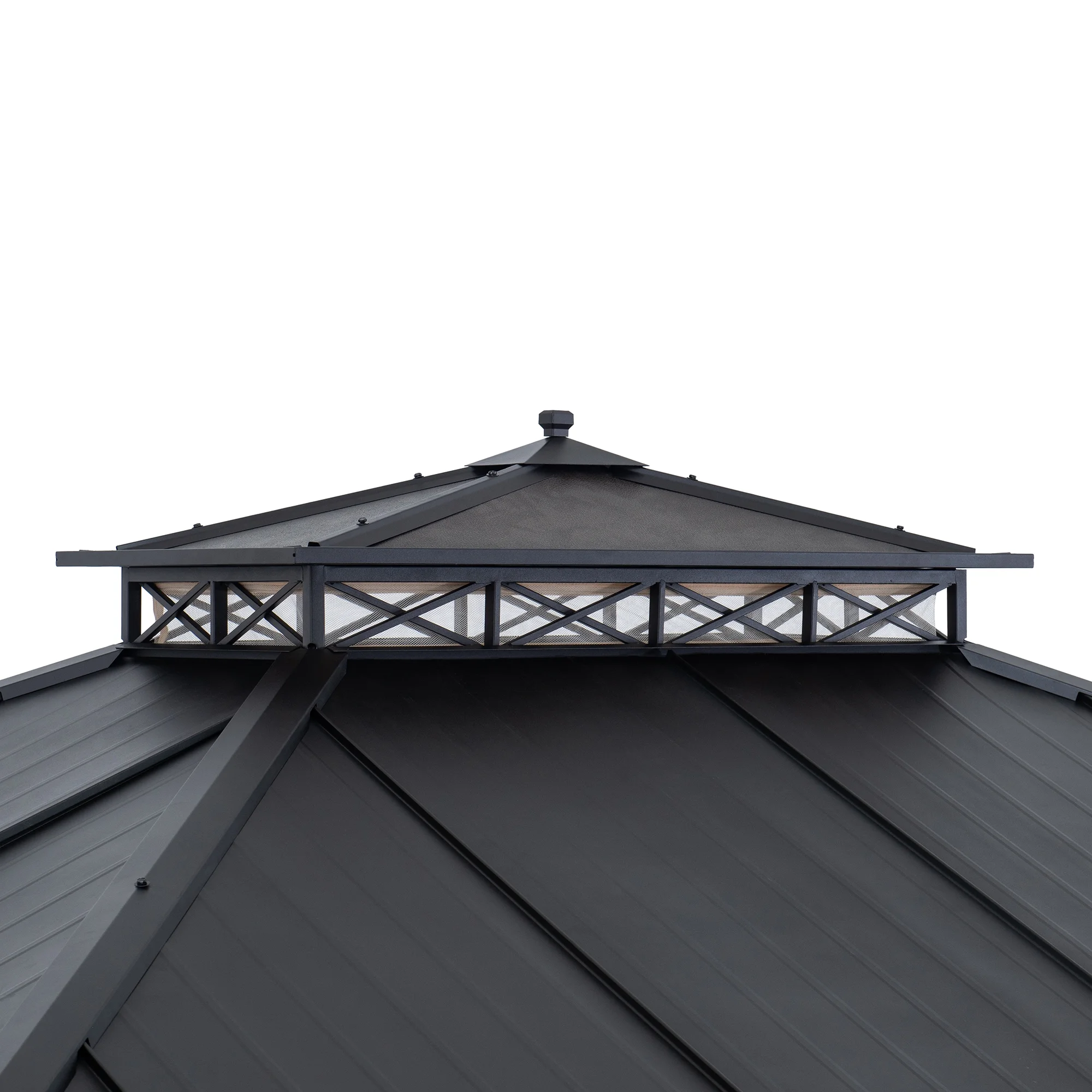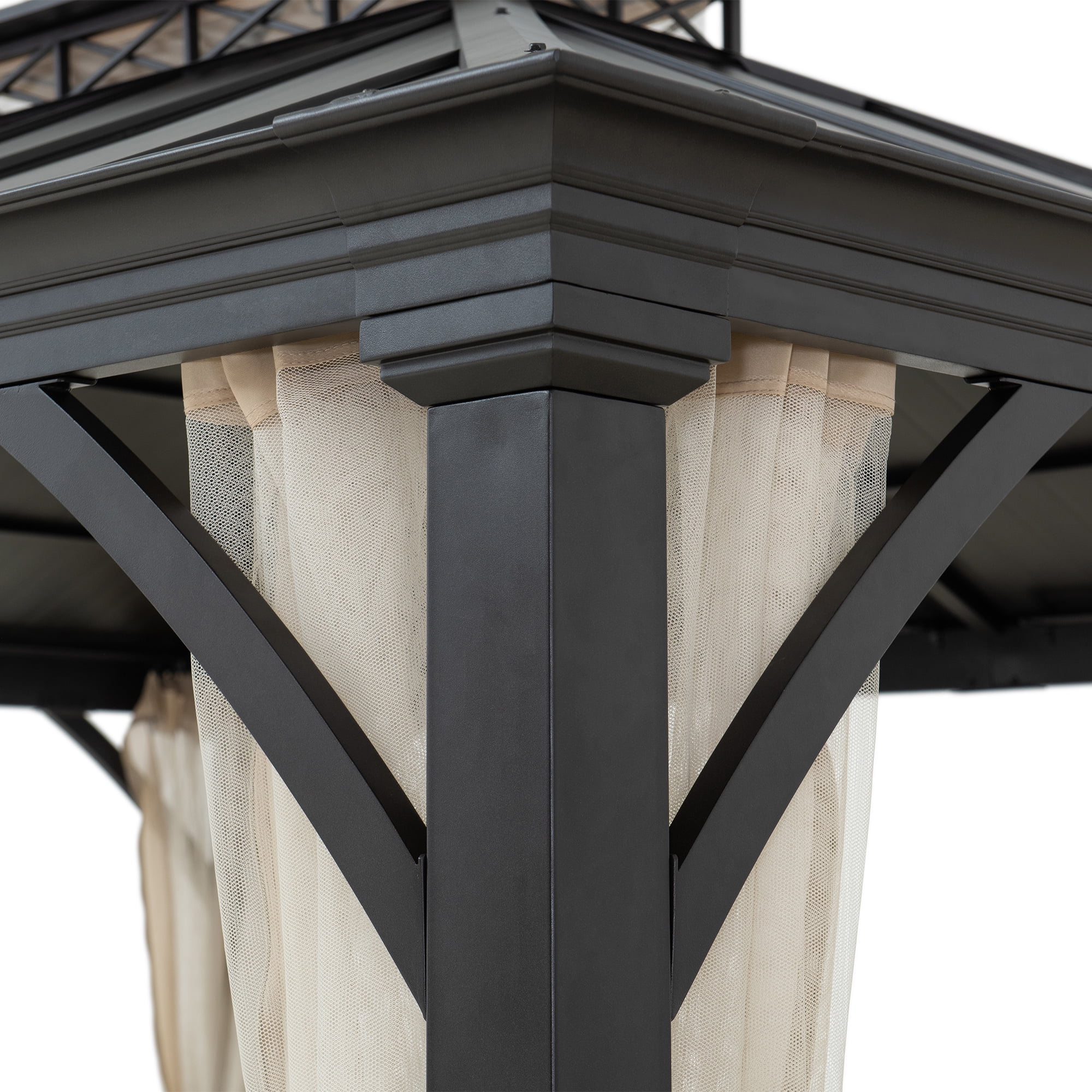Sunjoy Outdoor Patio 11x13 Black 2-Tier Backyard Hardtop Gazebo with Metal Ceiling Hook and Netting