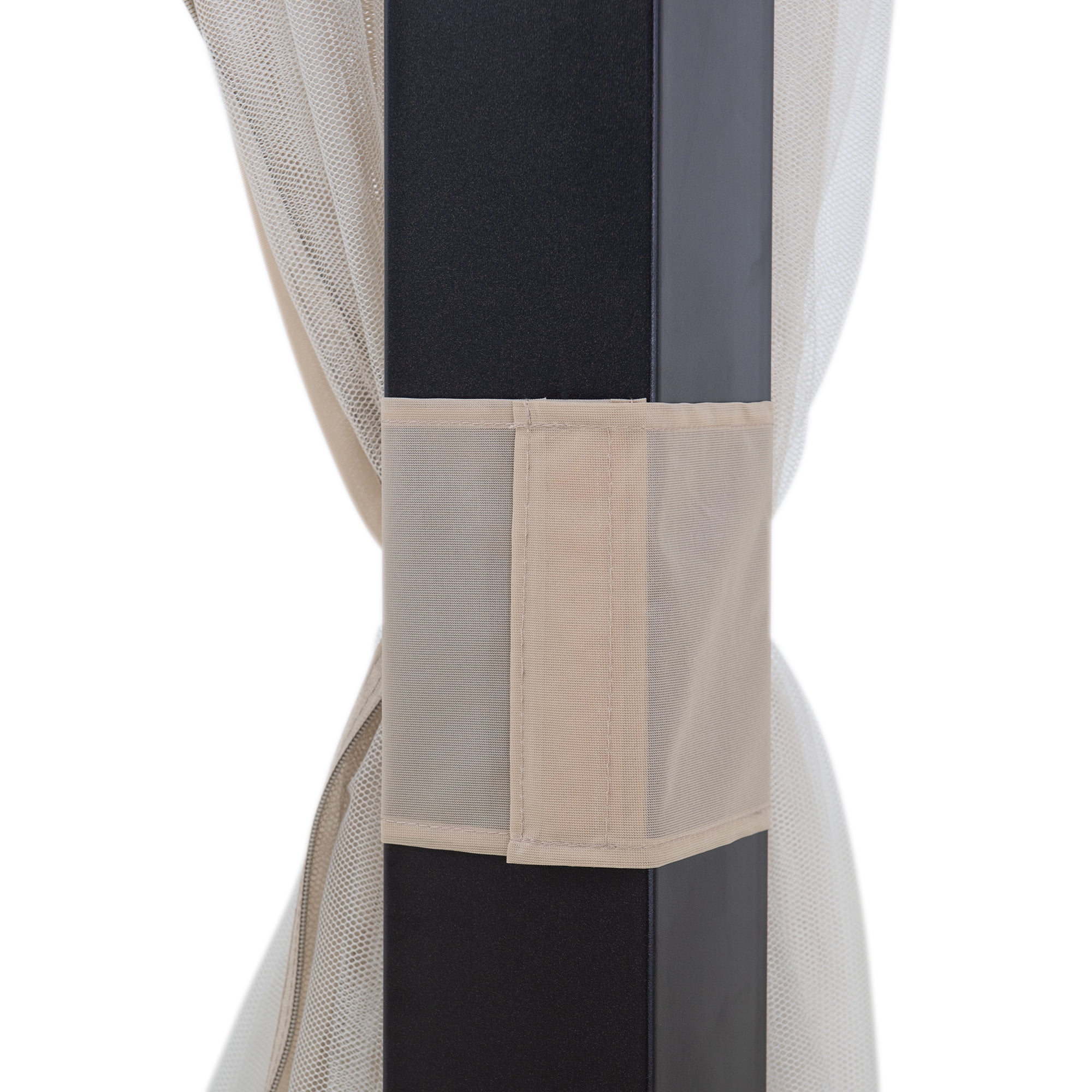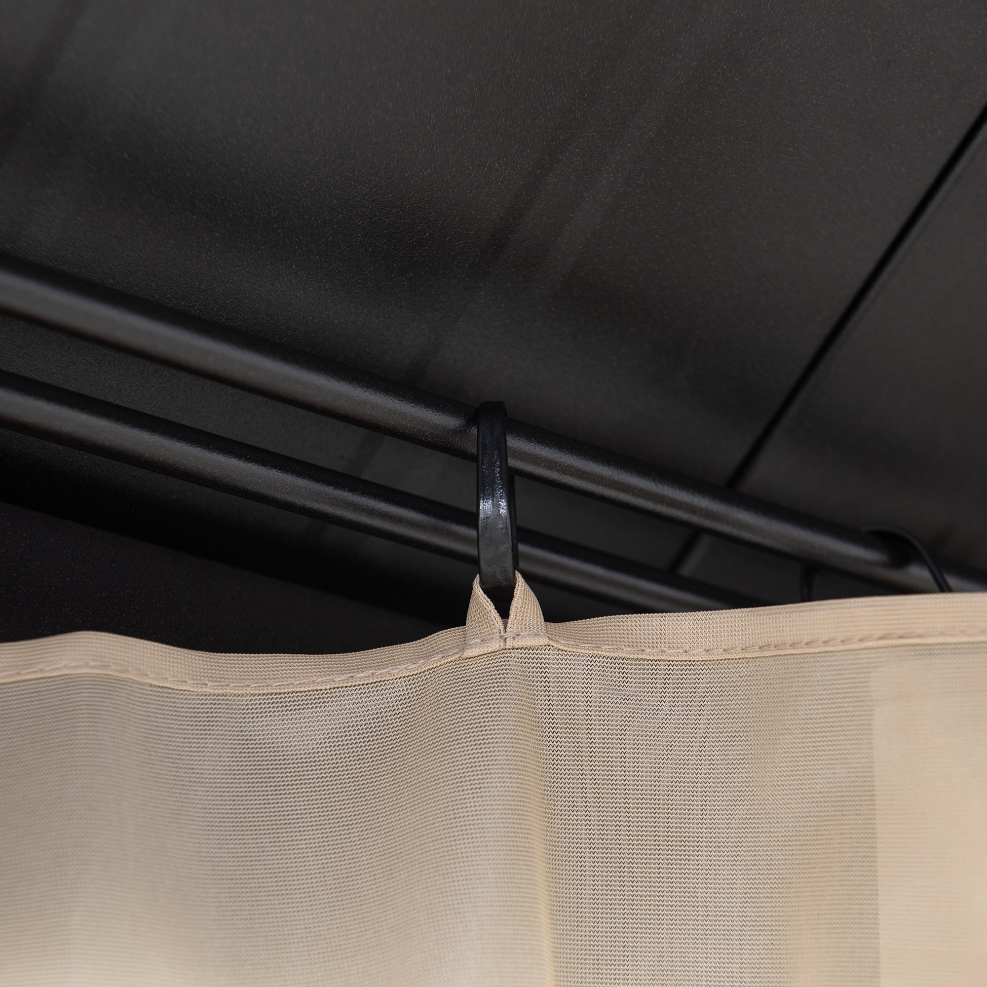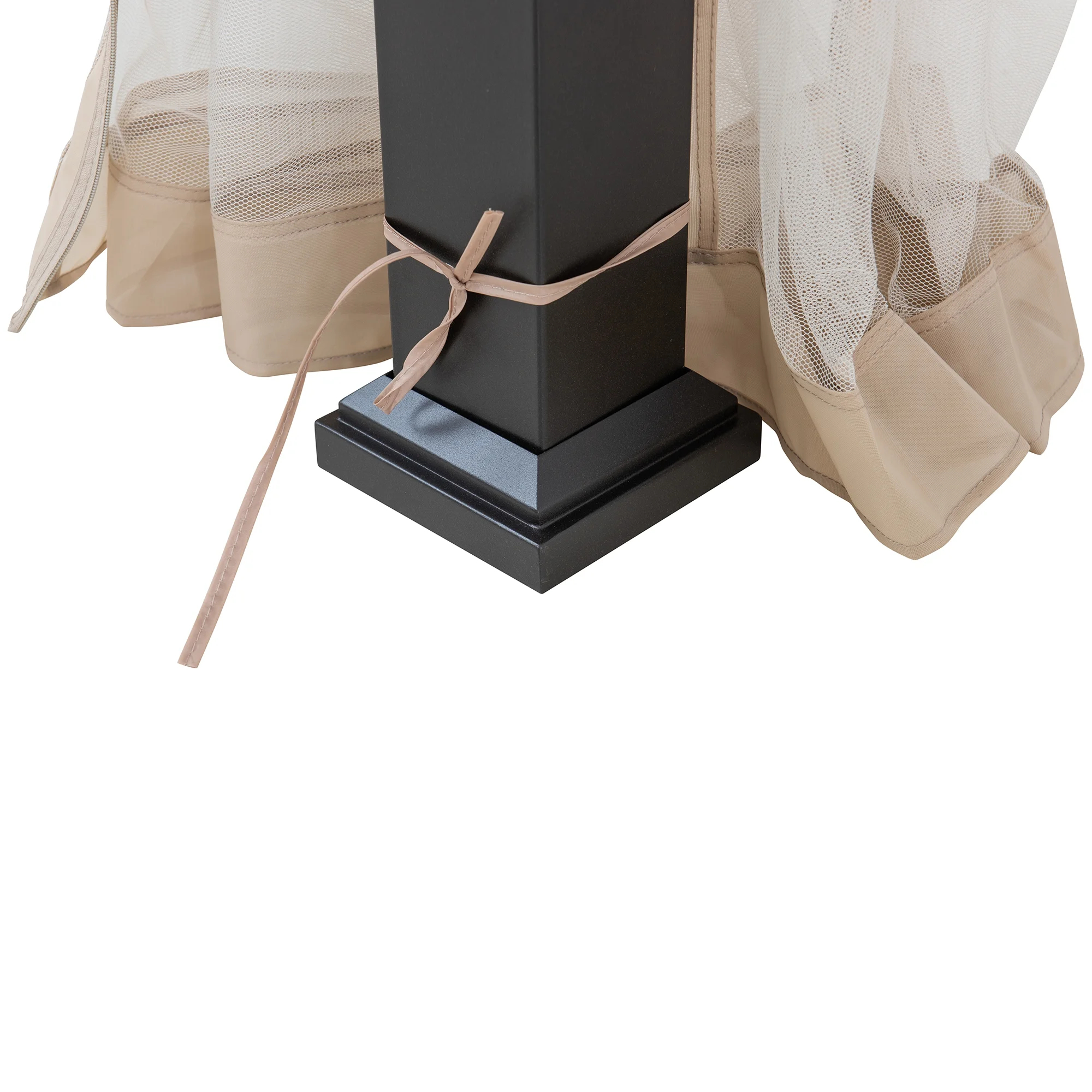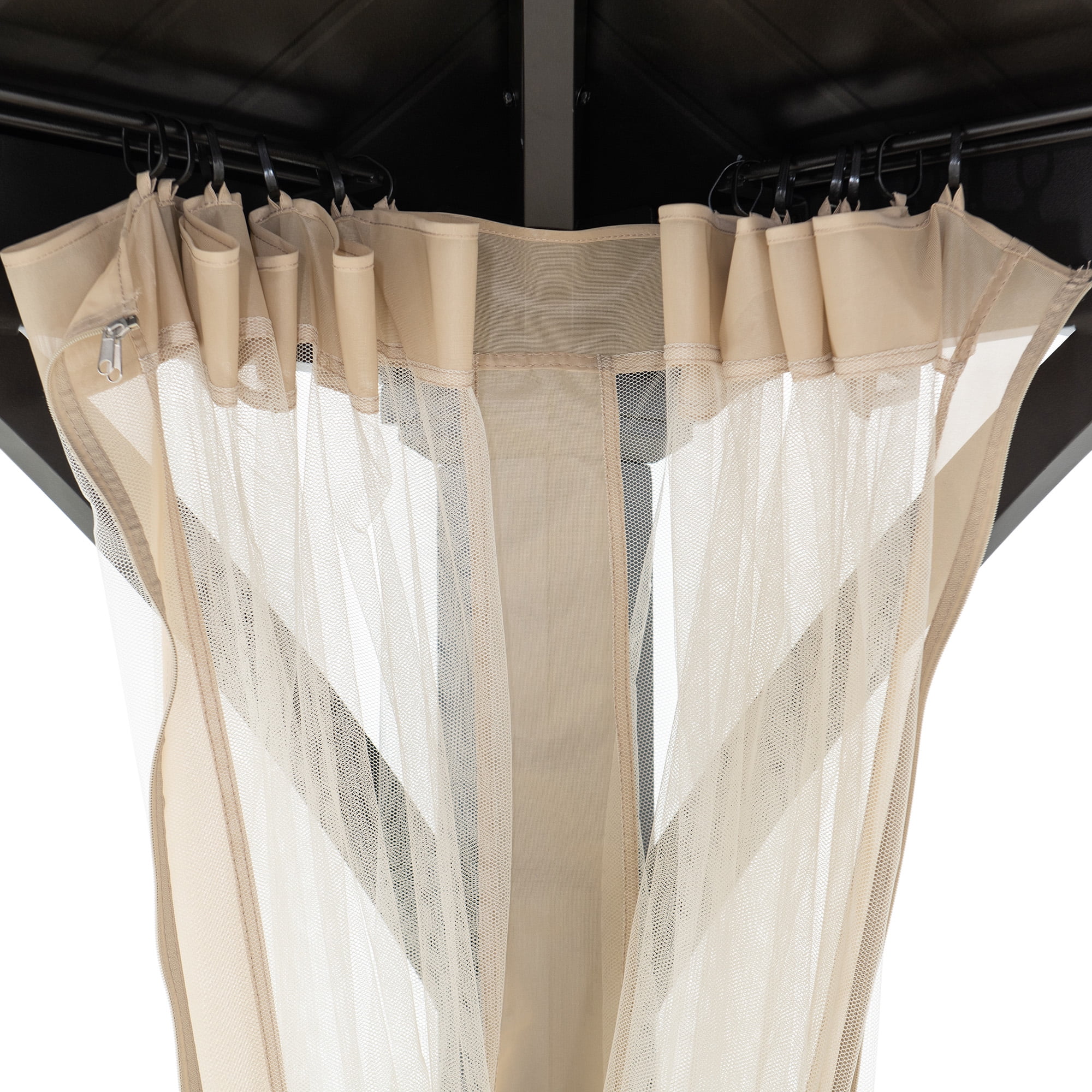Sunjoy Outdoor Patio 11x13 Black 2-Tier Backyard Hardtop Gazebo with Metal Ceiling Hook and Netting