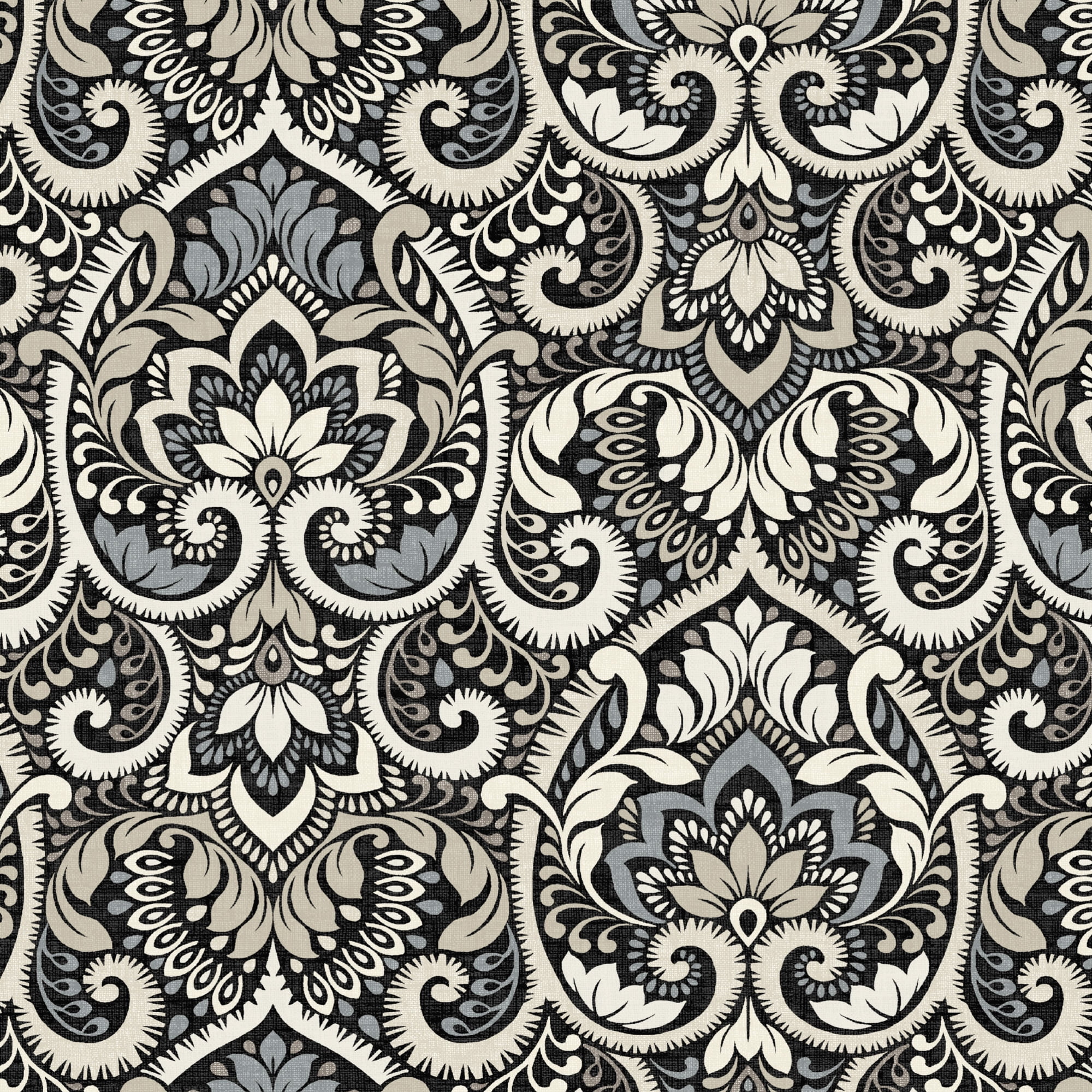 Arden Selections Outdoor Wicker Settee Cushion 41.5 x 18, Black Aurora Damask