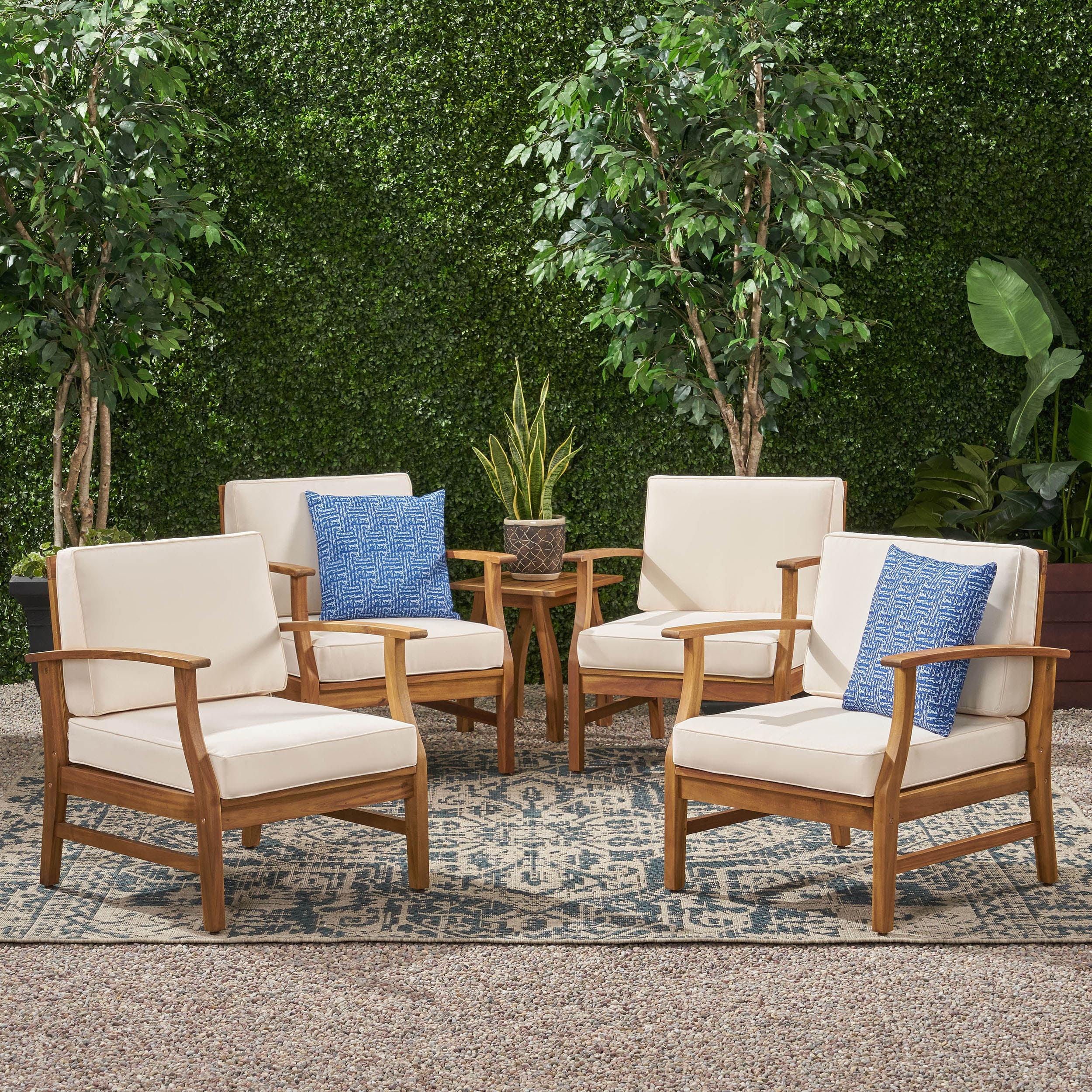 GDF Studio Abena Outdoor Acacia Wood Club Chairs with Cushions, Set of 4, Teak and Cream