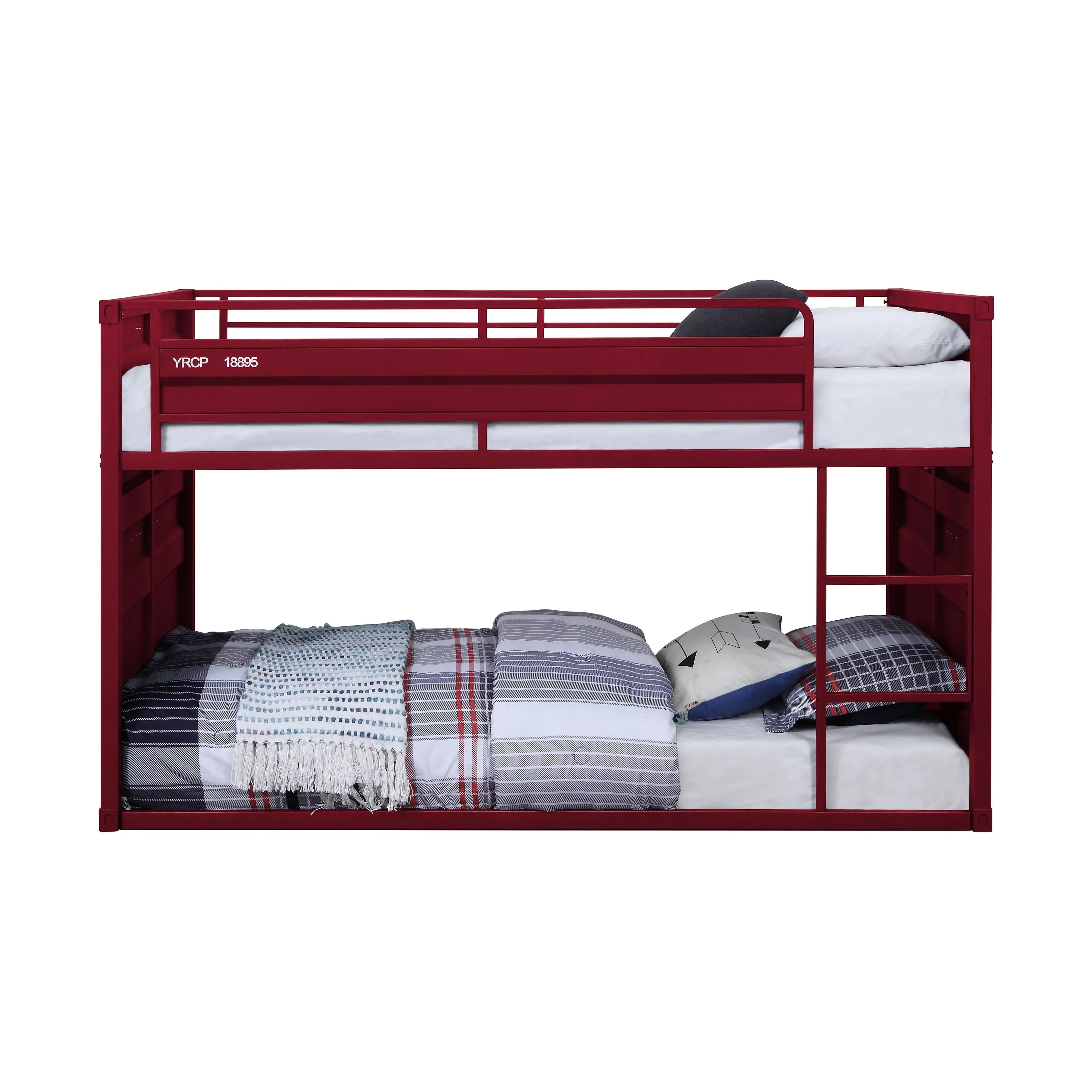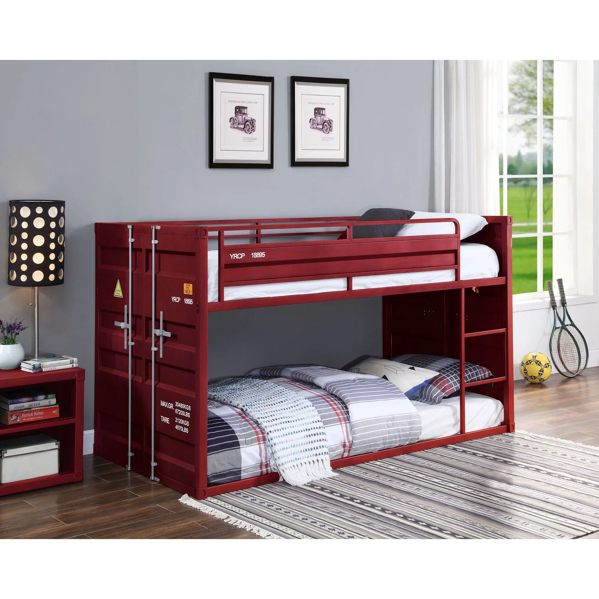 Contemporary Cargo Container Design Twin over Twin Metal Bunk Bed, Red Finish