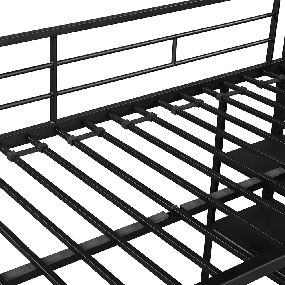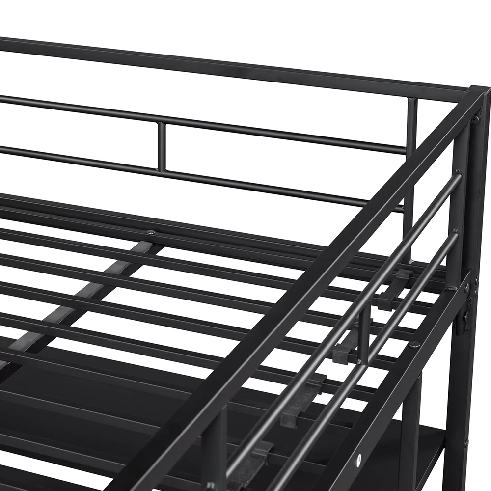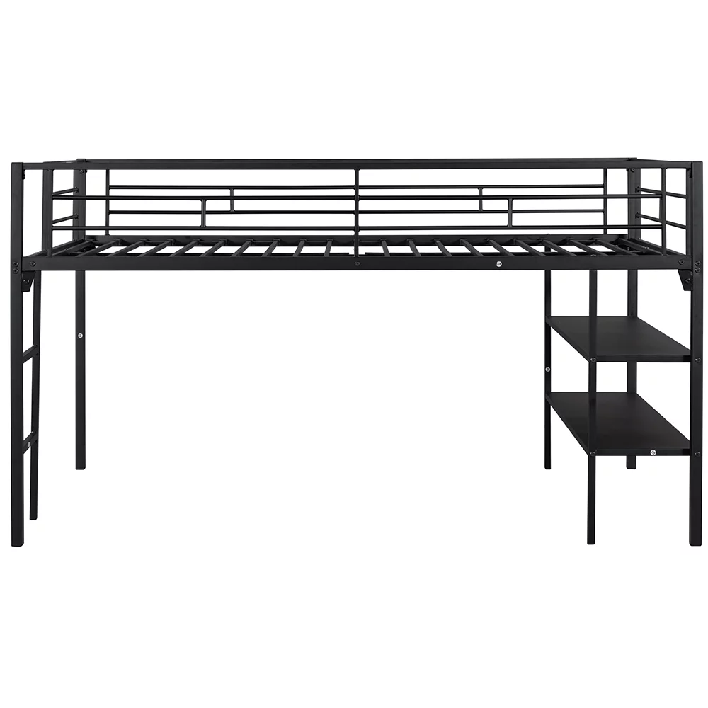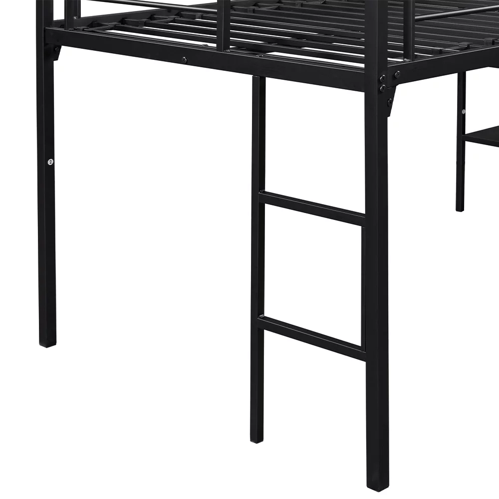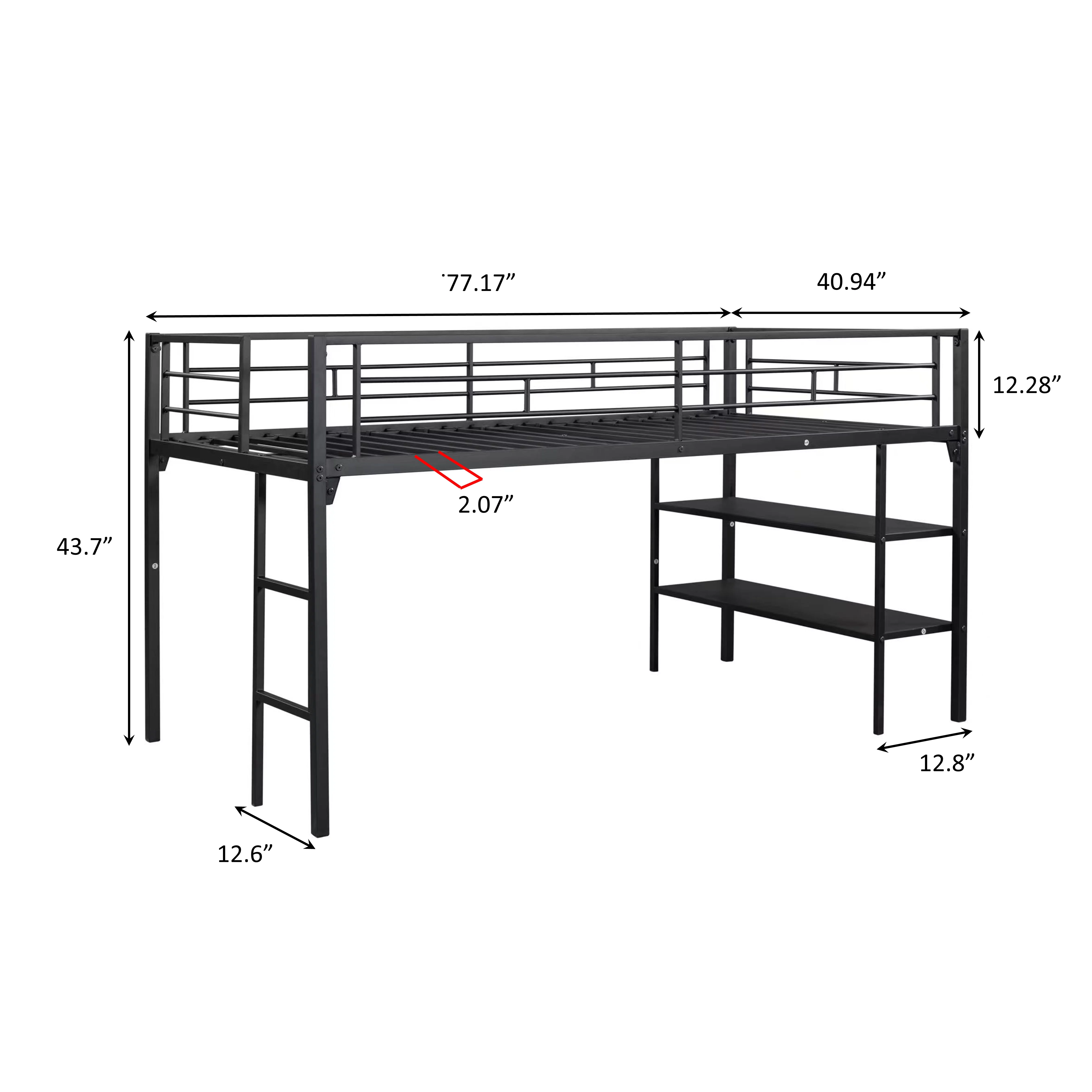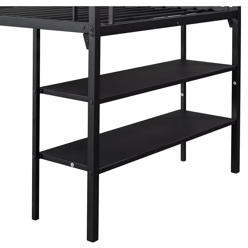 Loft Bed With Desk And 3 Shelves, Metal Size Loft Bed With Writing Board, Sapce Saving Loft Bed For Kids, Boys,Girls,Teens,Black