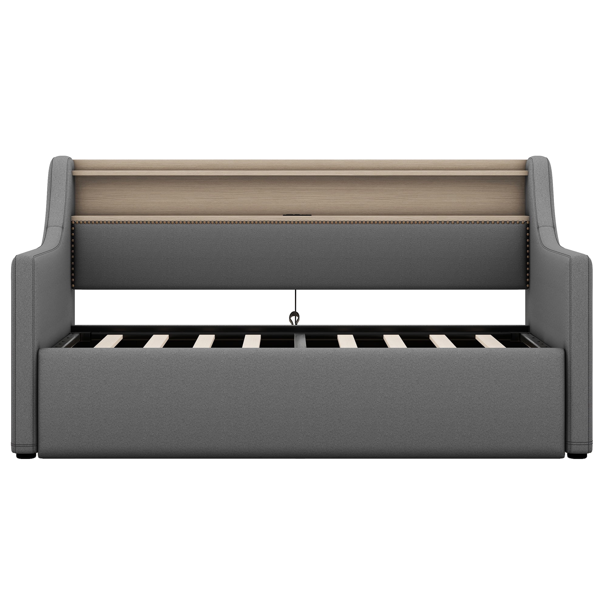 Supfirm Upholstered Daybed with Trundle, Wood Slat Support,Upholstered Frame Sofa Bed , Twin,Gray