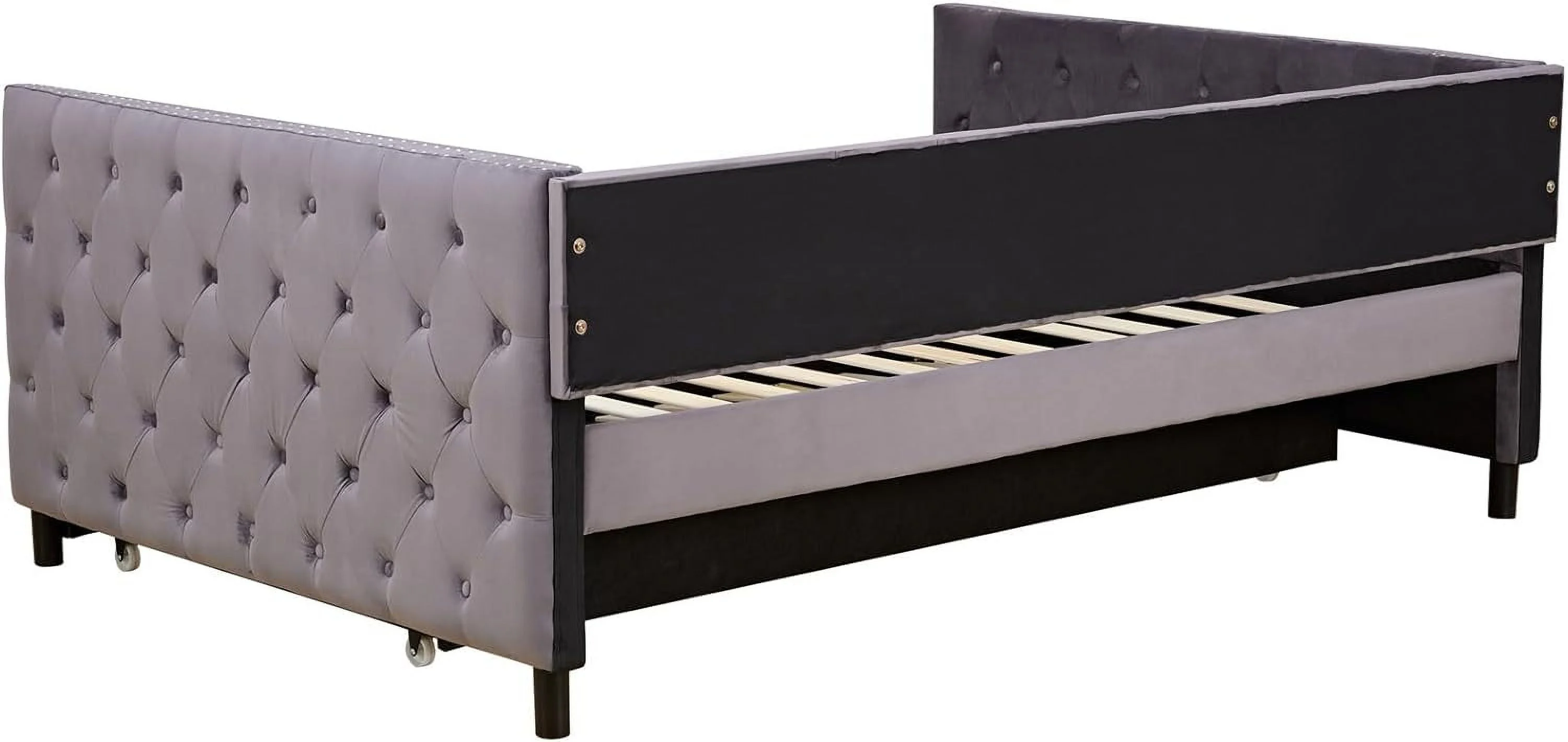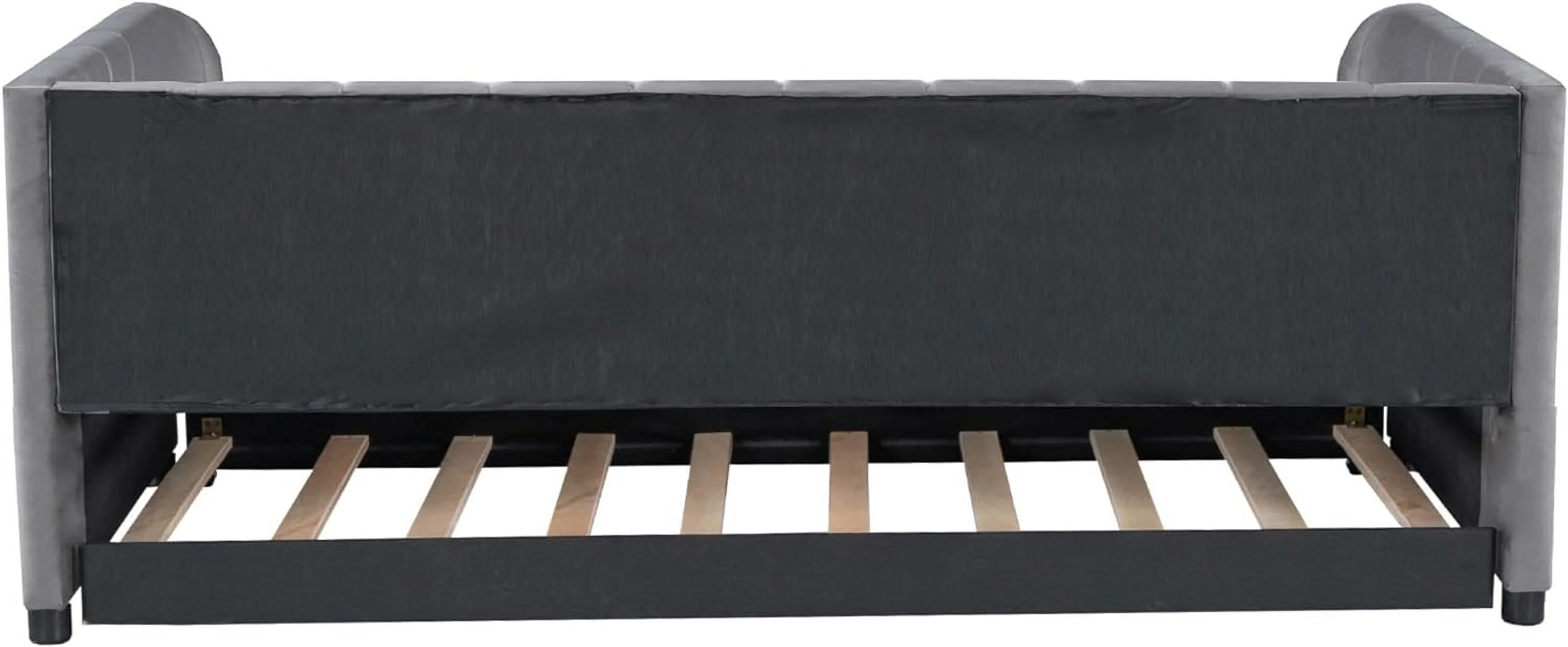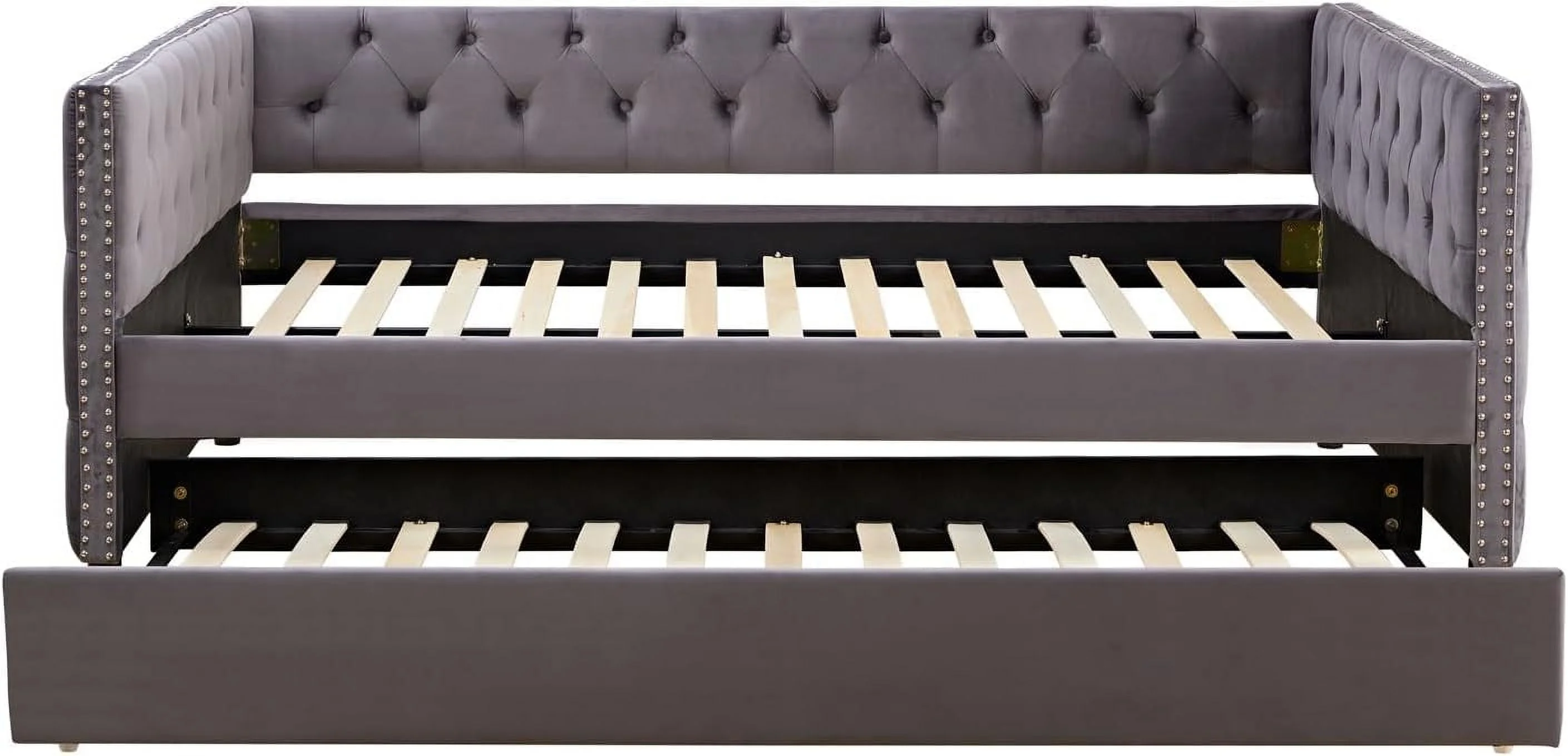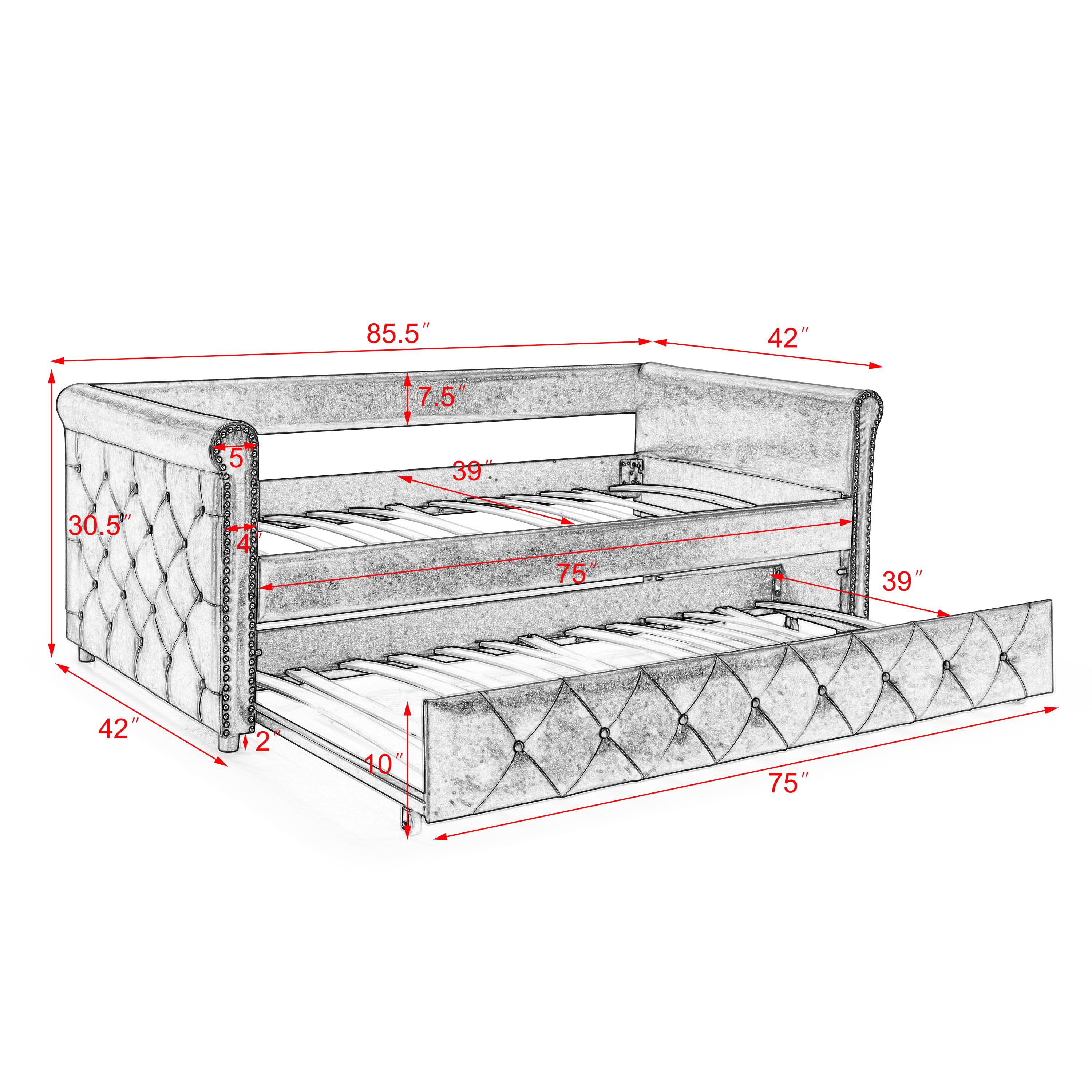 Oaks Aura Daybed with Trundle Upholstered Tufted Sofa Bed, with Button and Copper Nail on Arms