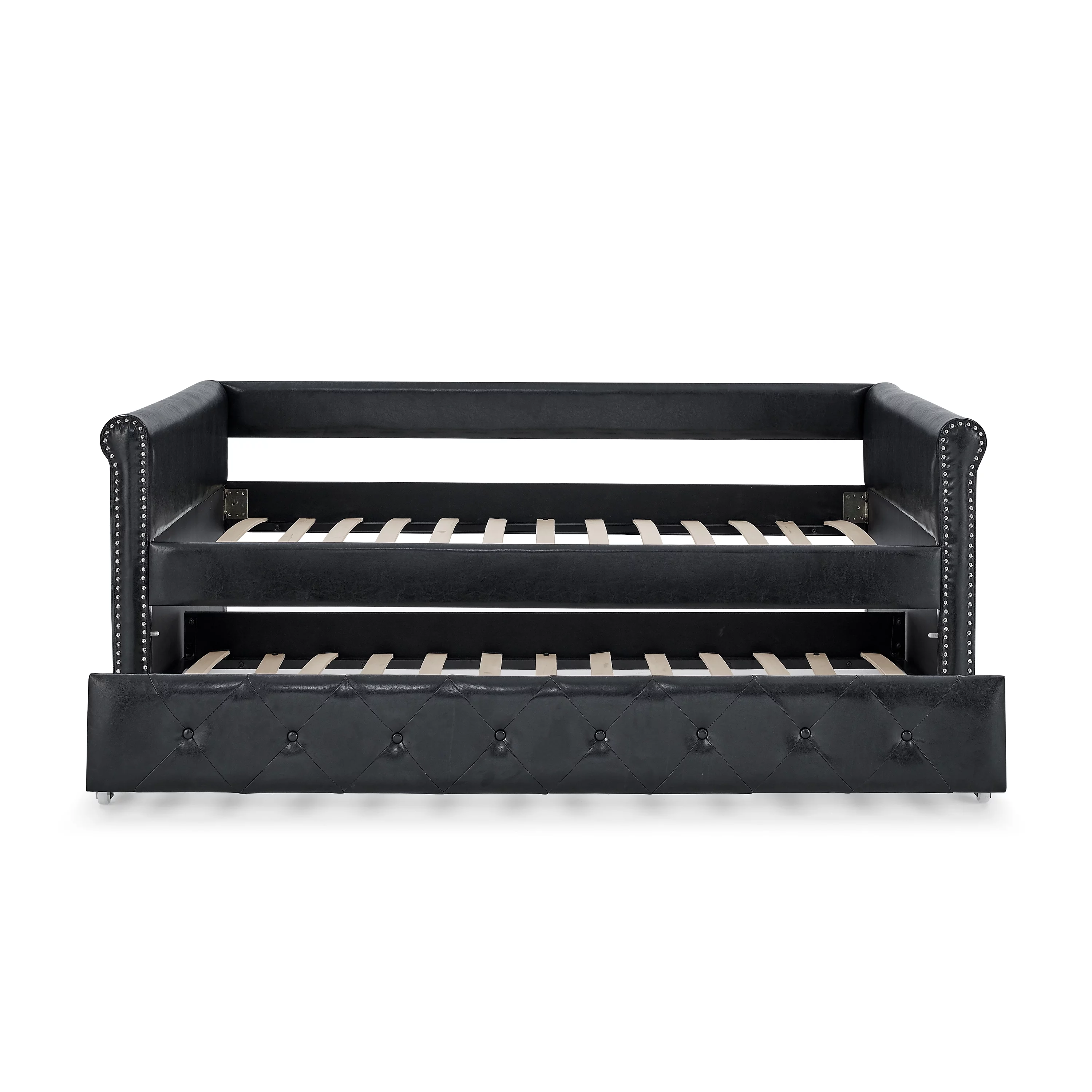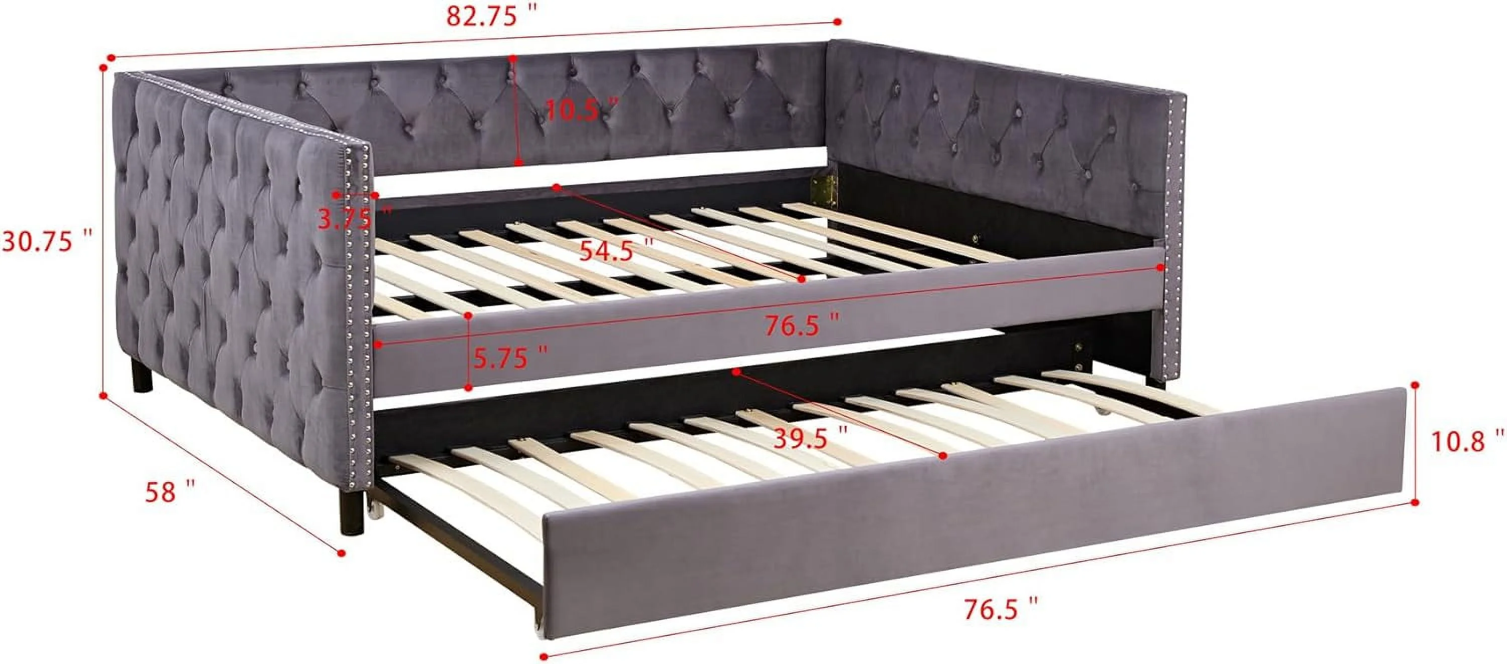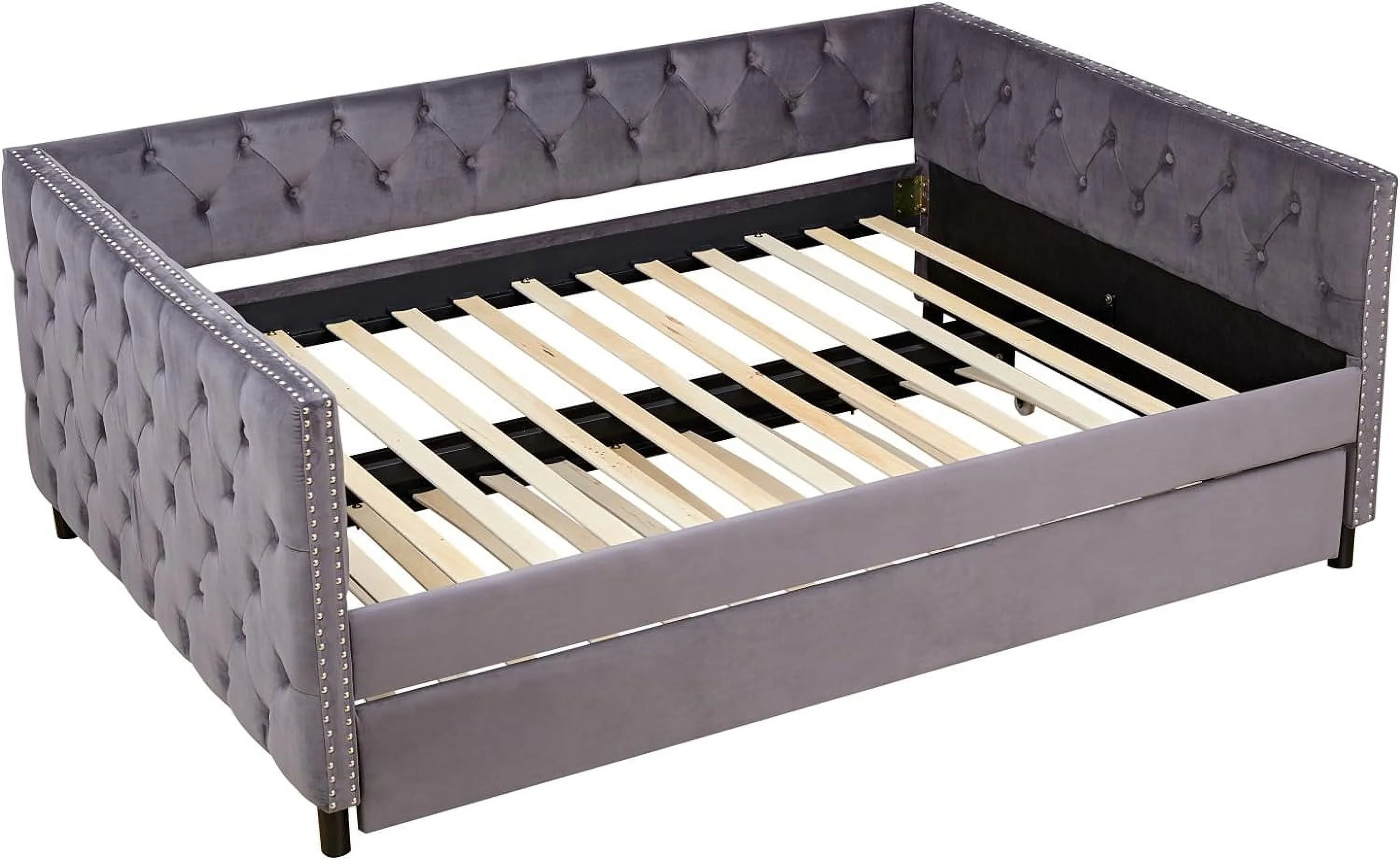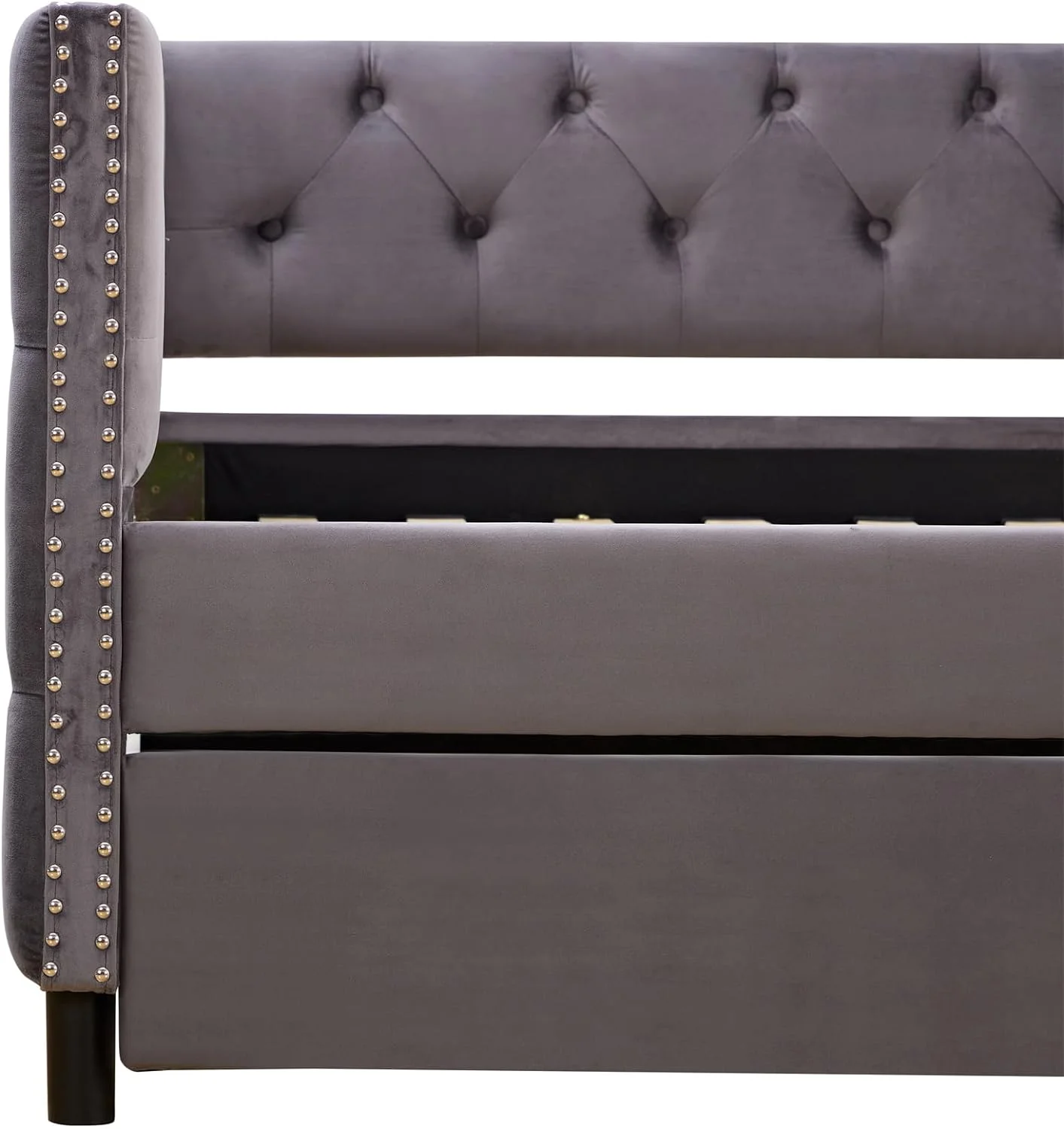 Oaks Aura Daybed with Trundle Upholstered Tufted Sofa Bed, with Button and Copper Nail on Arms