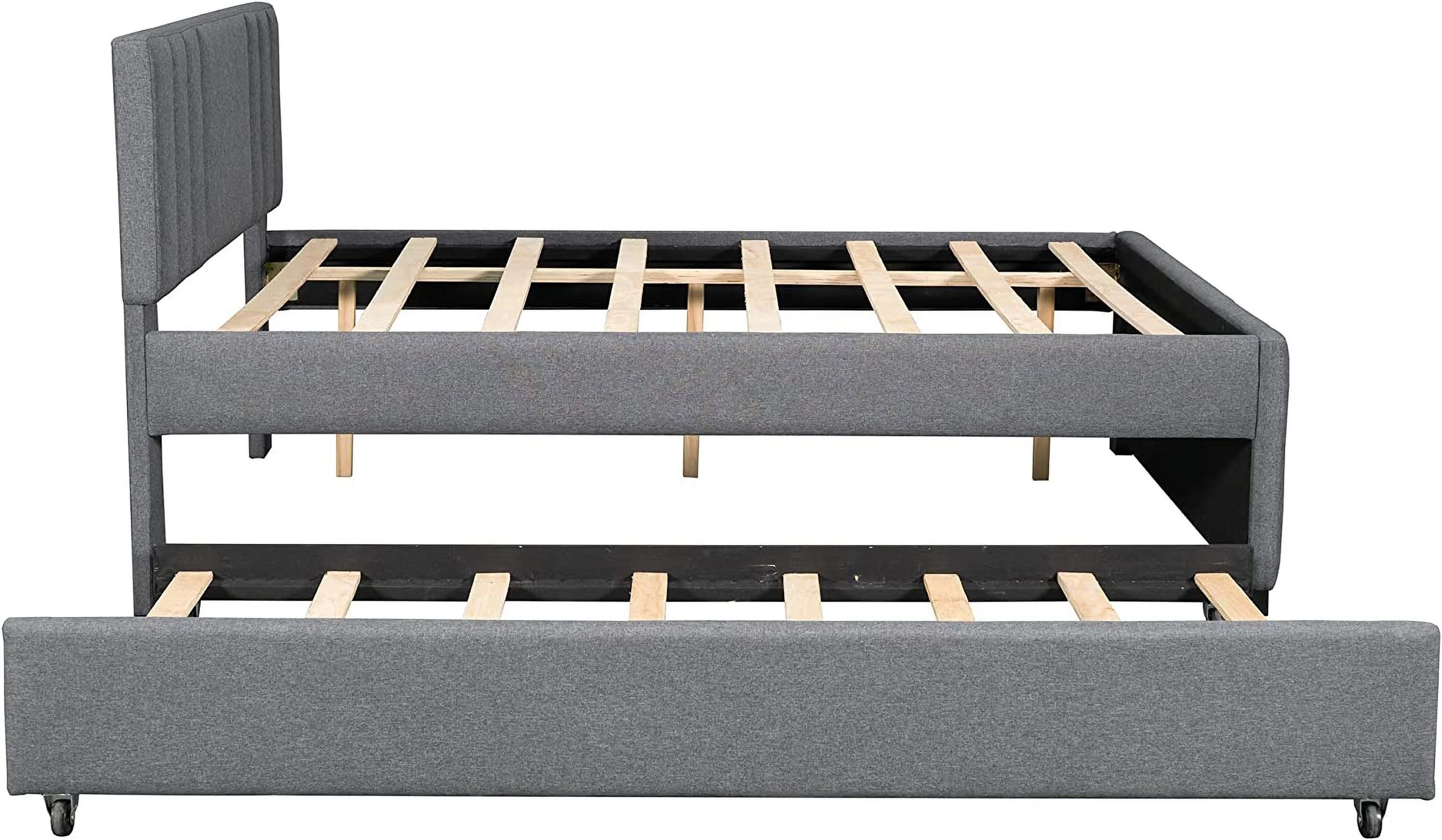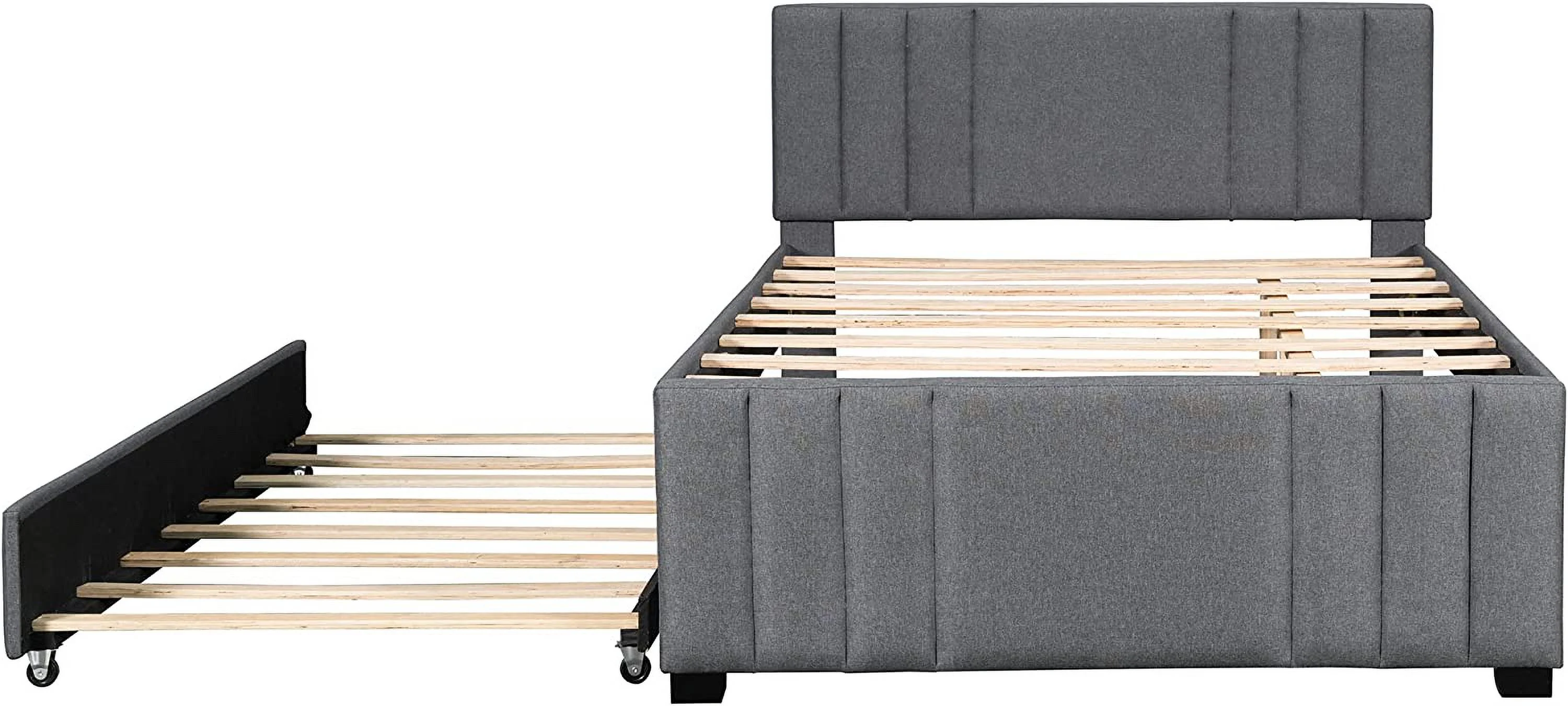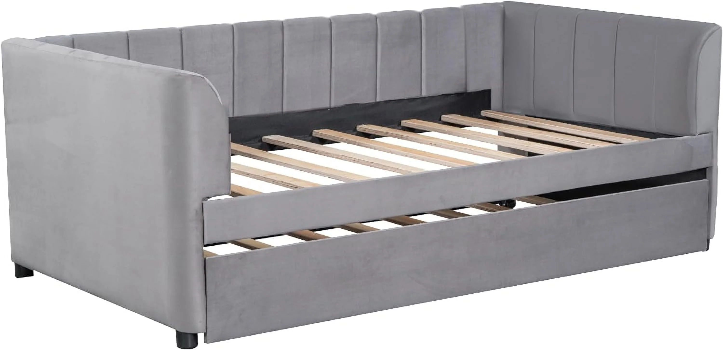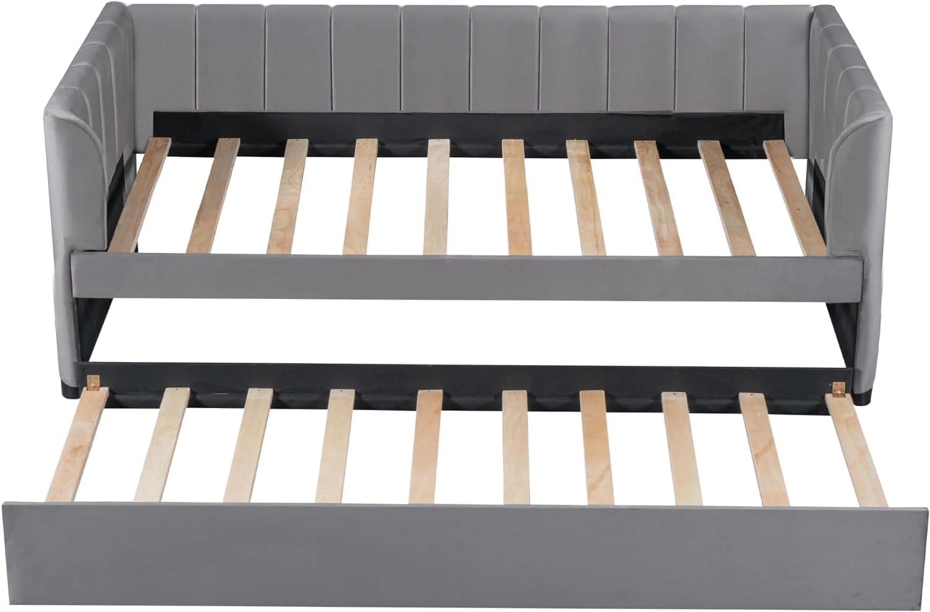 Oaks Aura Daybed with Trundle Upholstered Tufted Sofa Bed, with Button and Copper Nail on Arms