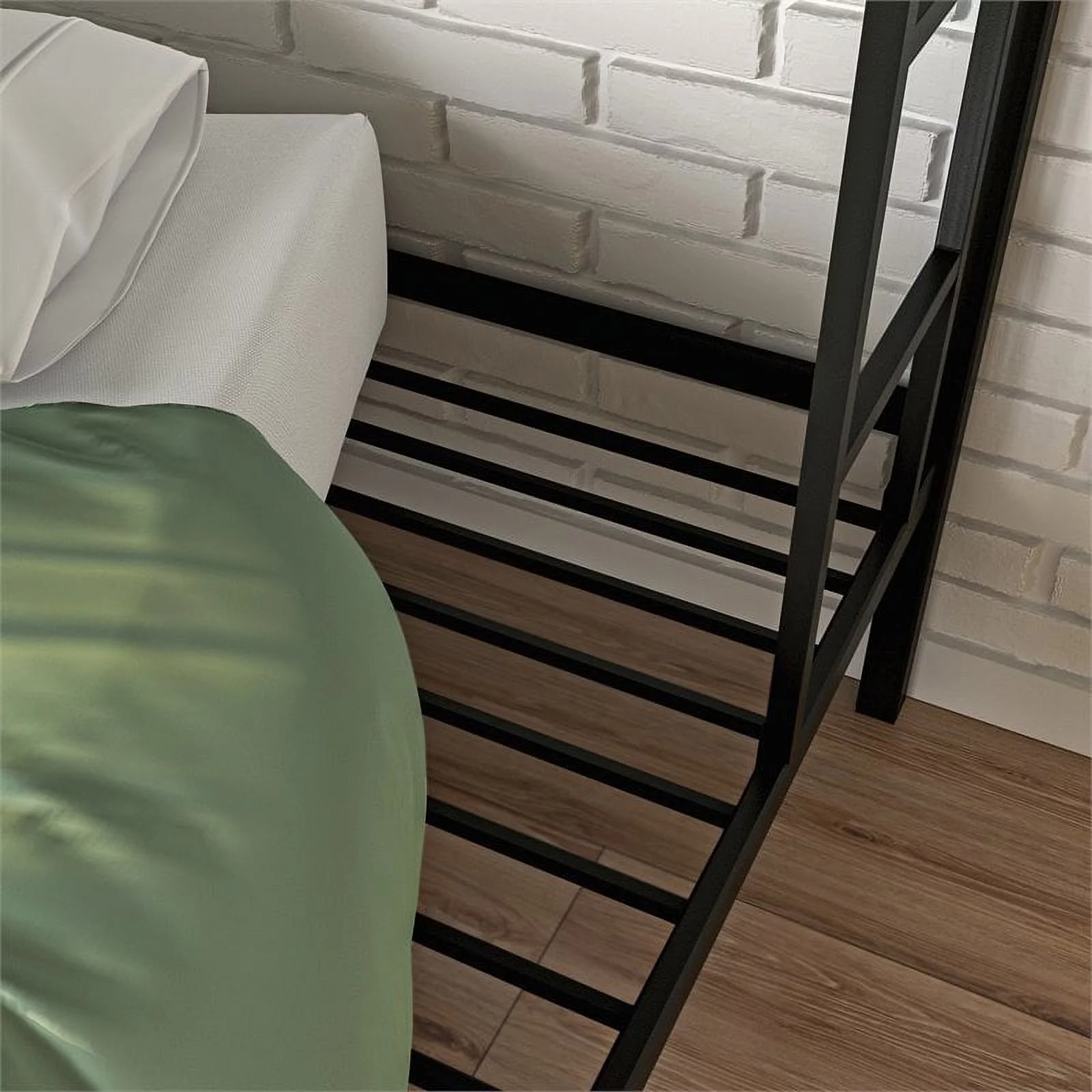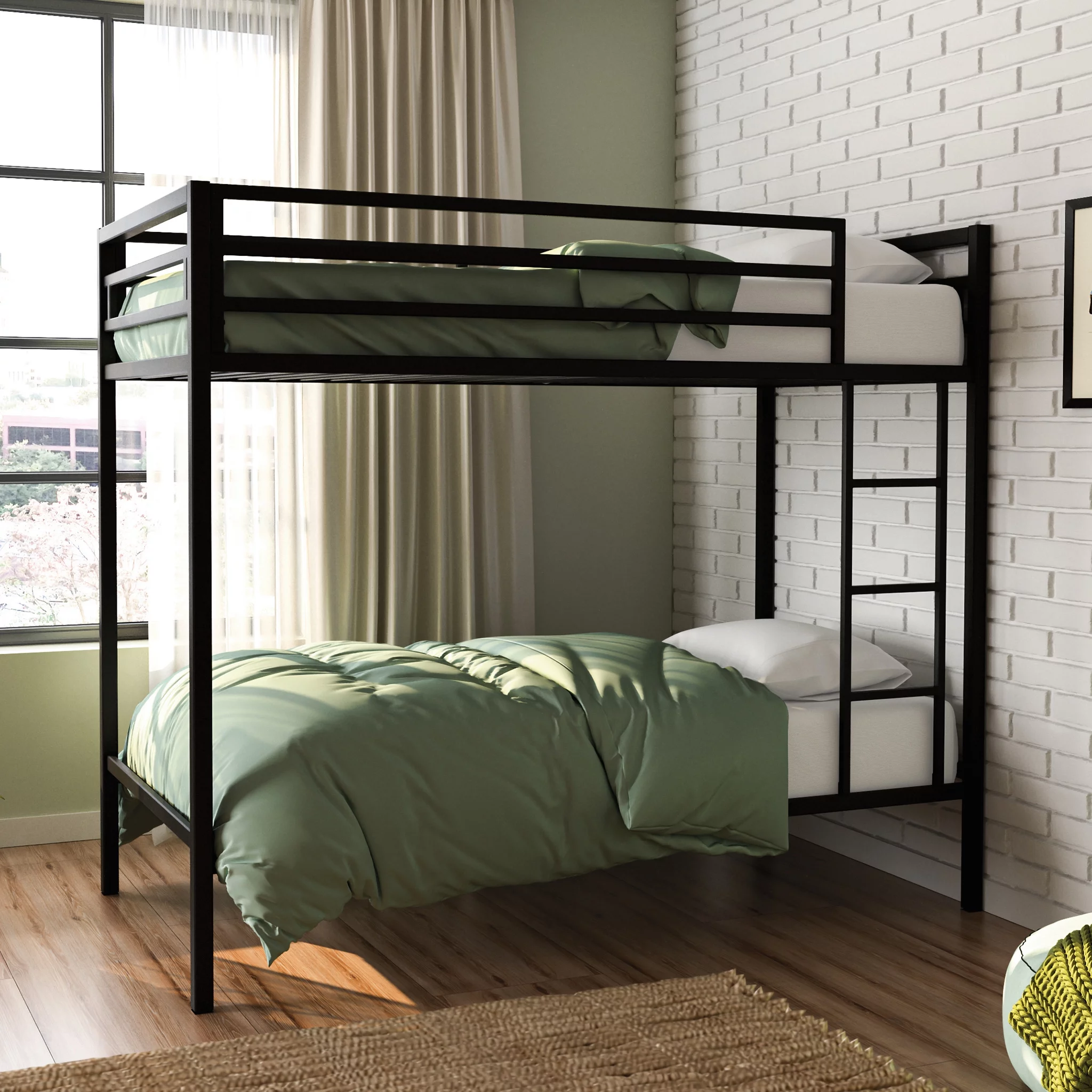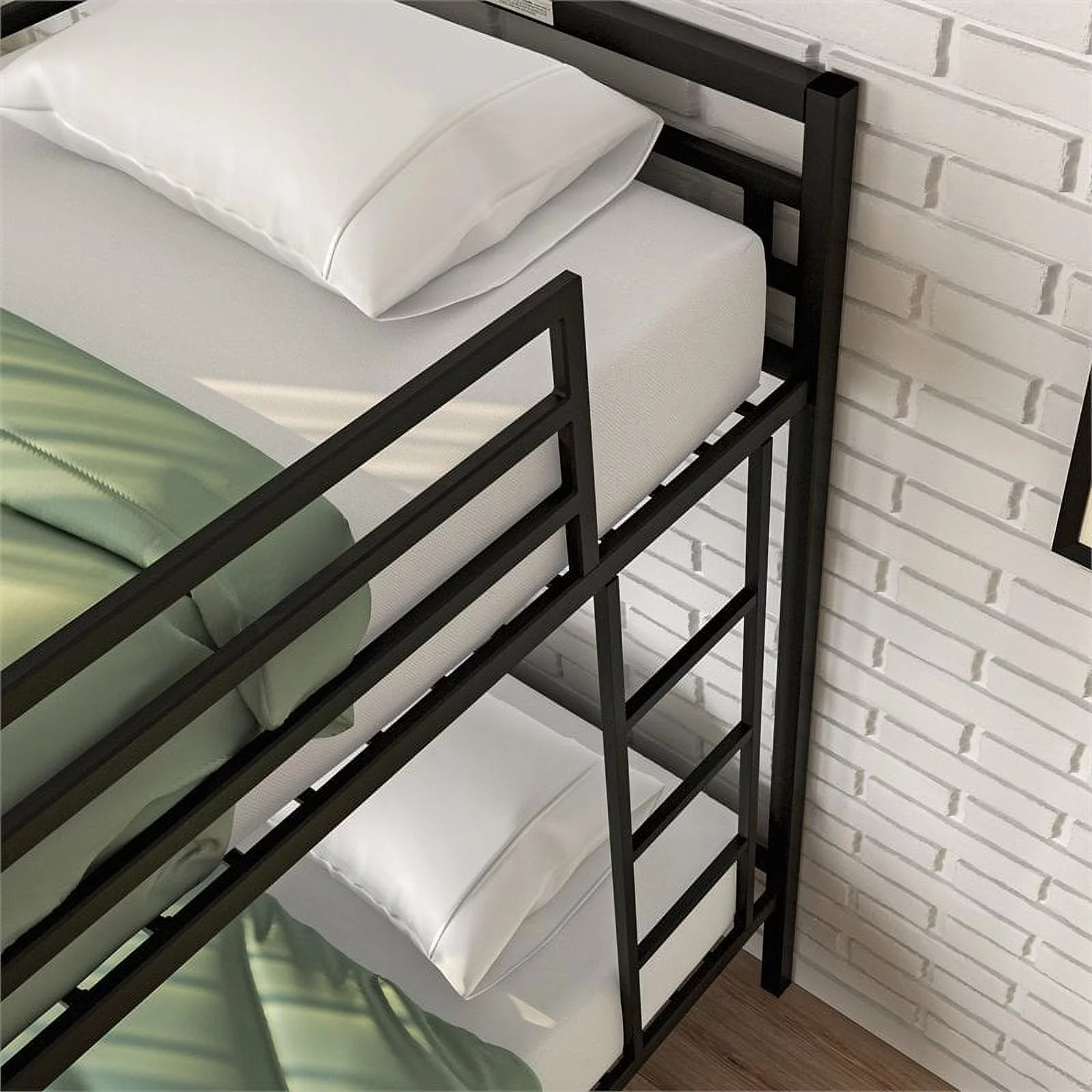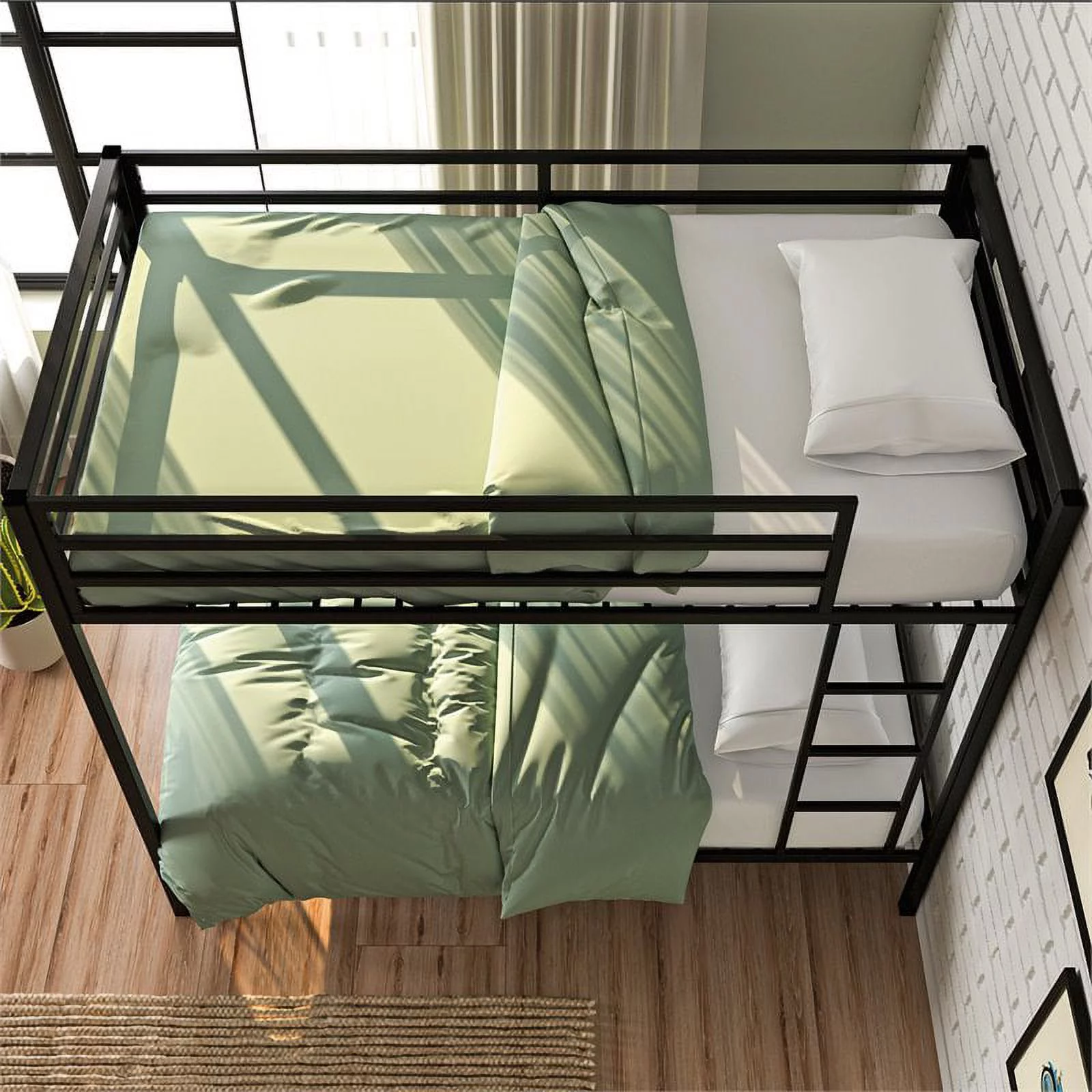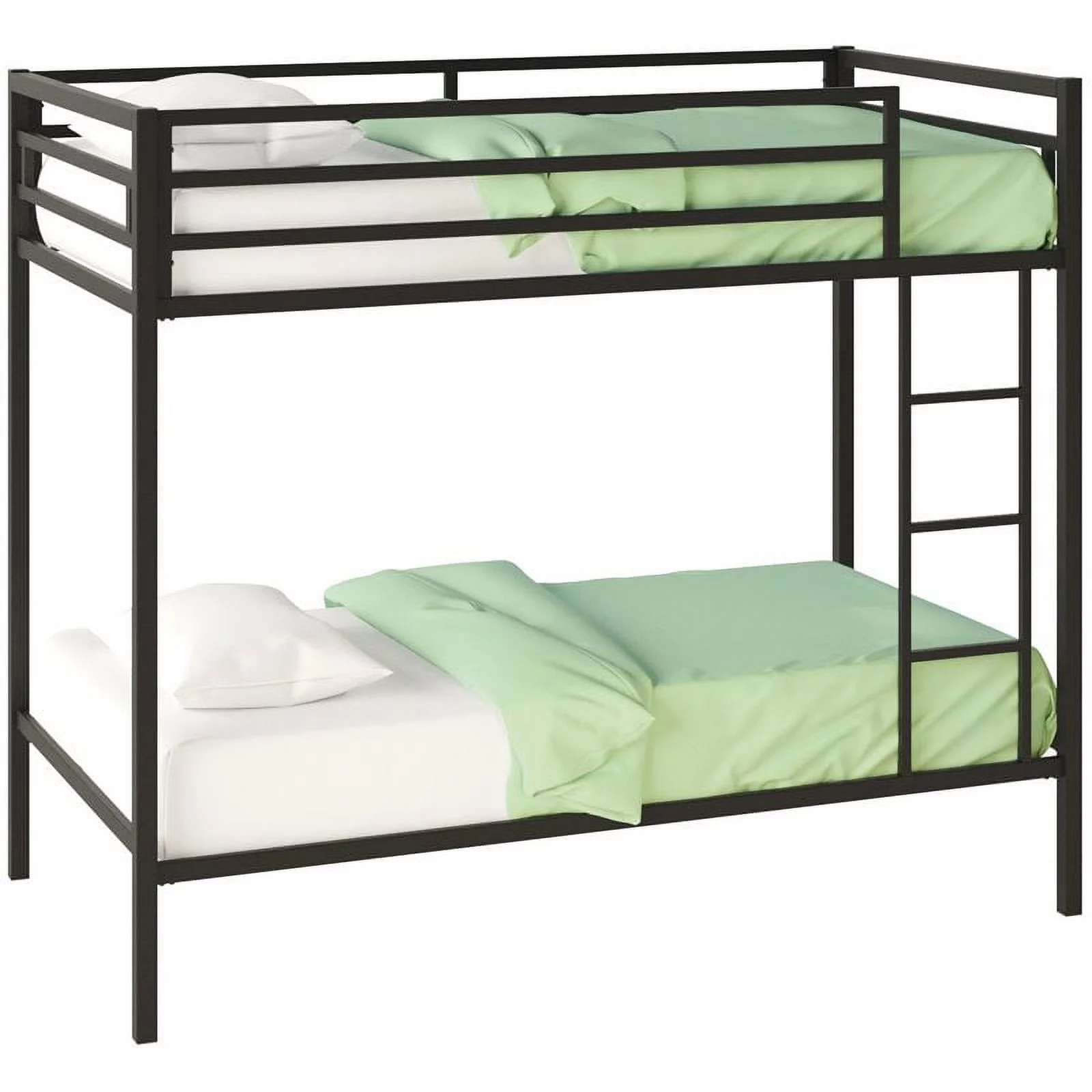 Adam Twin over Twin Metal Bunk, Black Metal + Black + Metal + Bedroom + Bed Frame + Box Spring Not Required