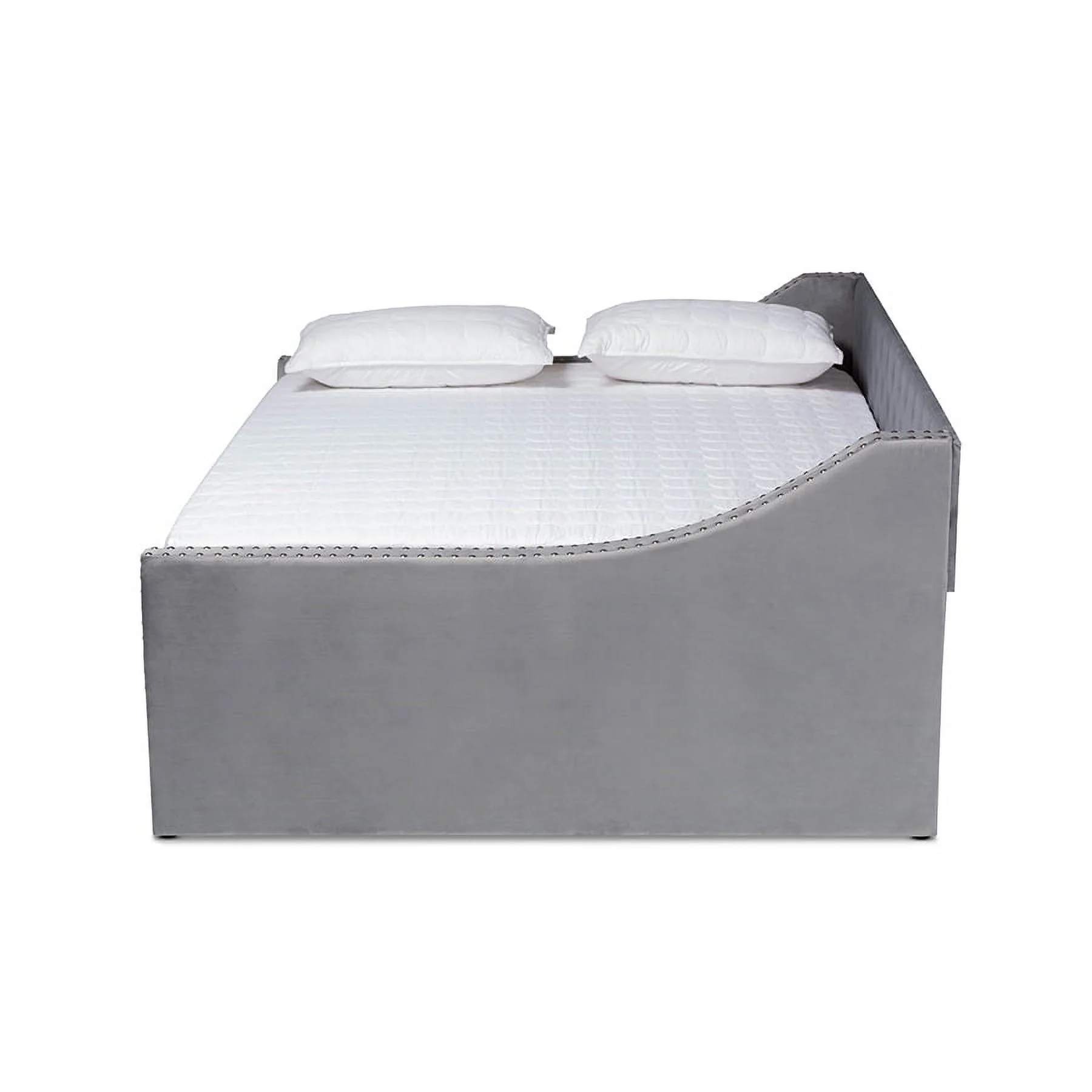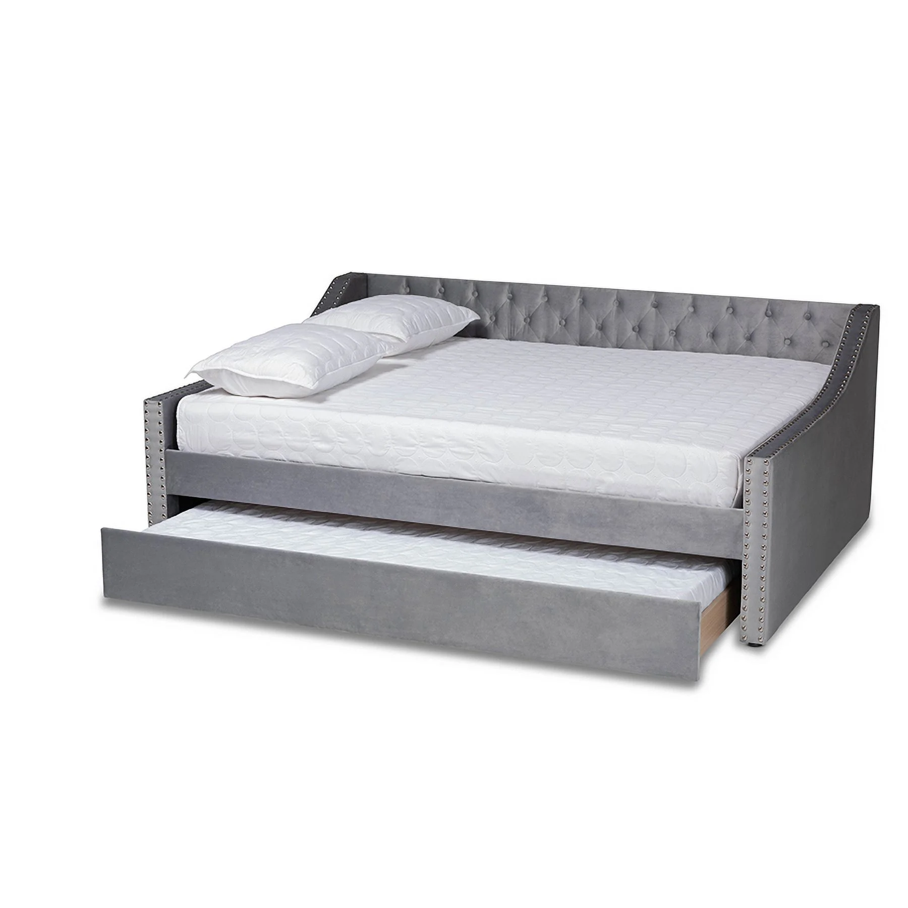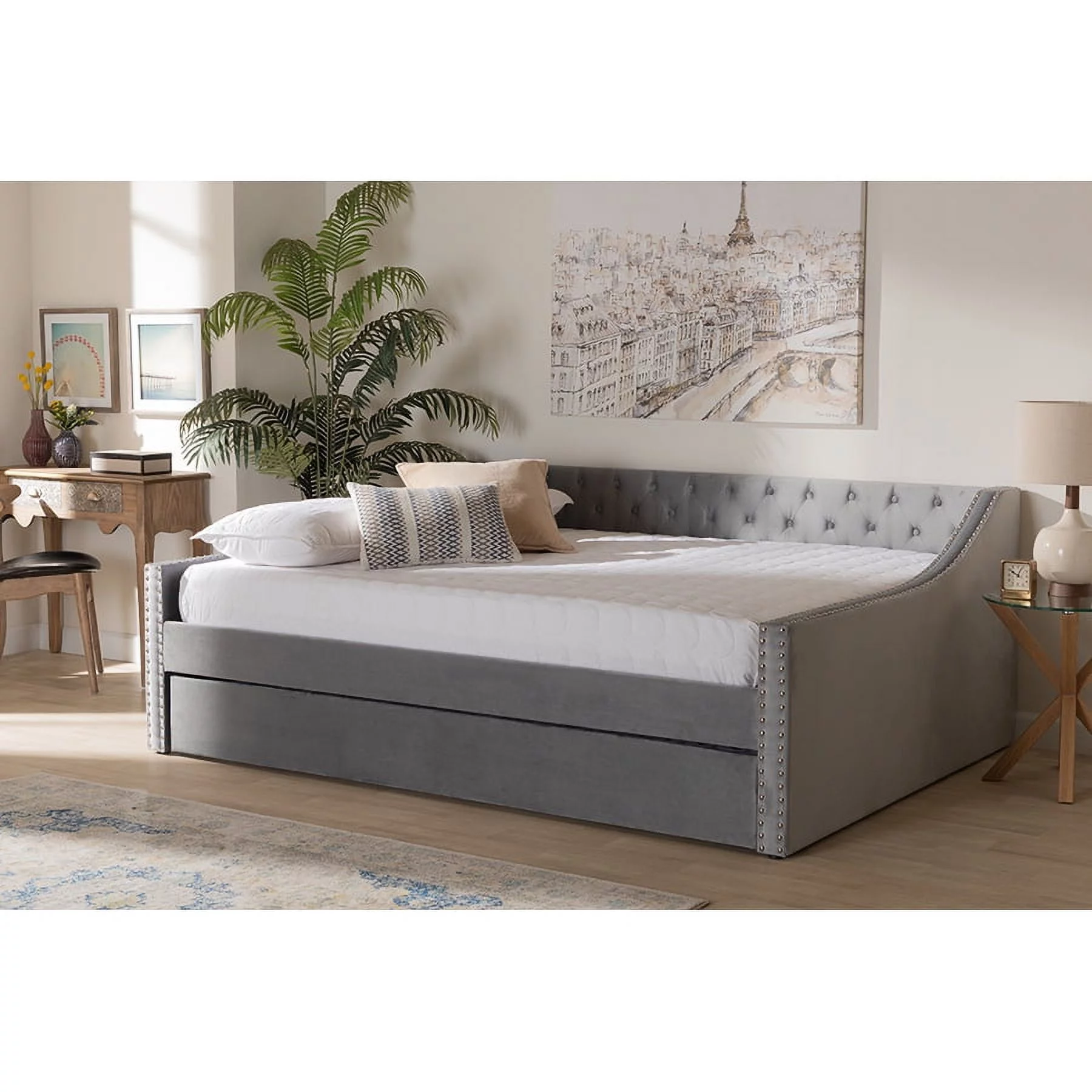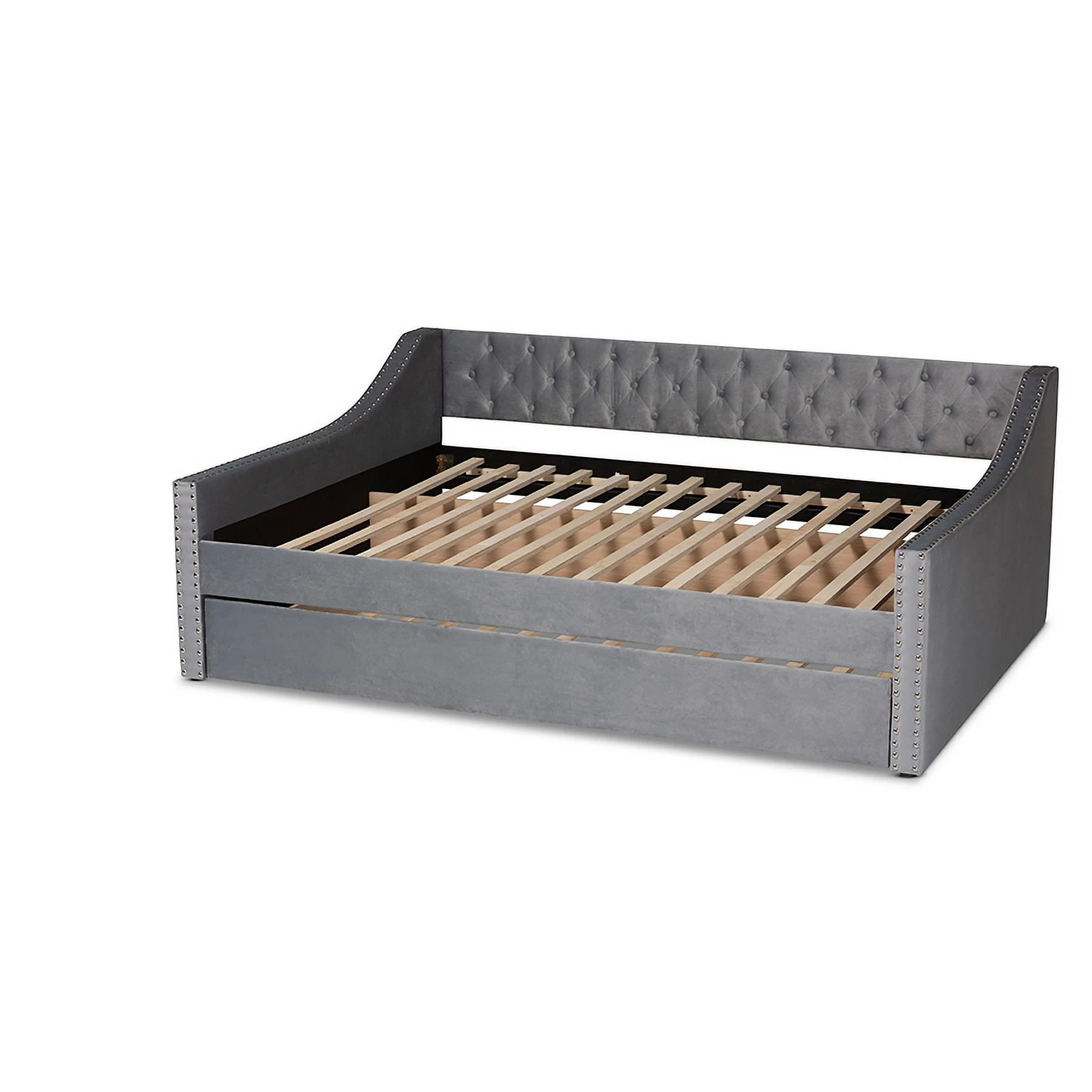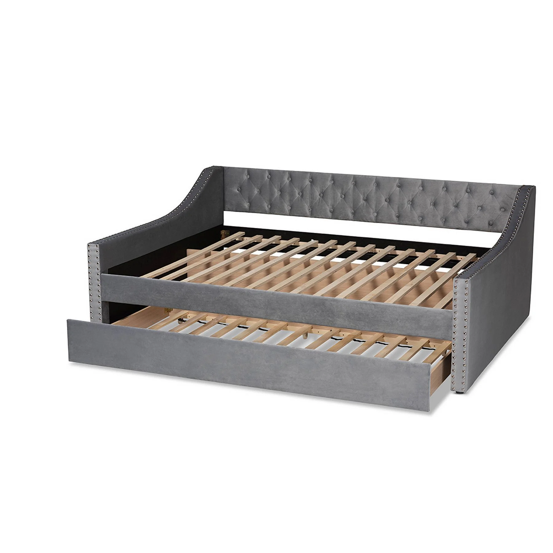 Baxton Studio Raphael Modern and Contemporary Grey Velvet Fabric Upholstered Full Size Daybed with Trundle