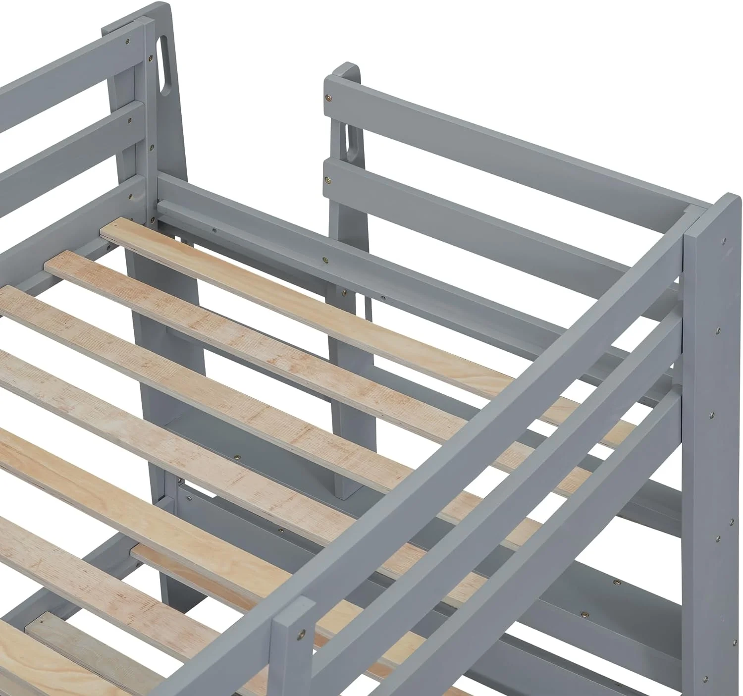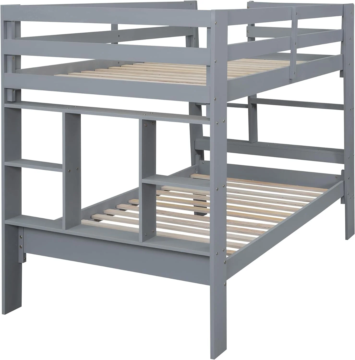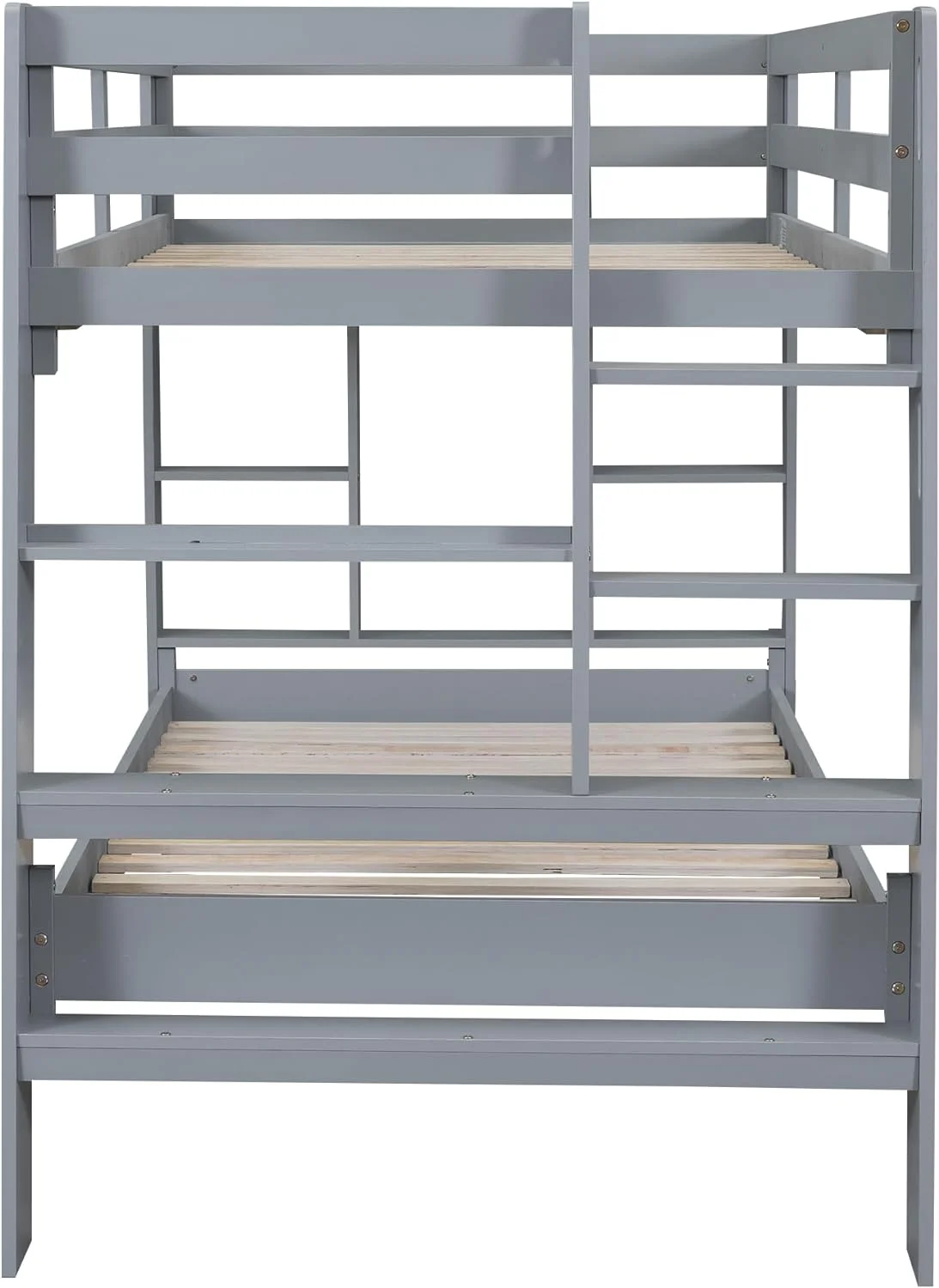 Twin Over Twin Bunk Bed with Shelves and Built-in Ladder,Safety Guardrail