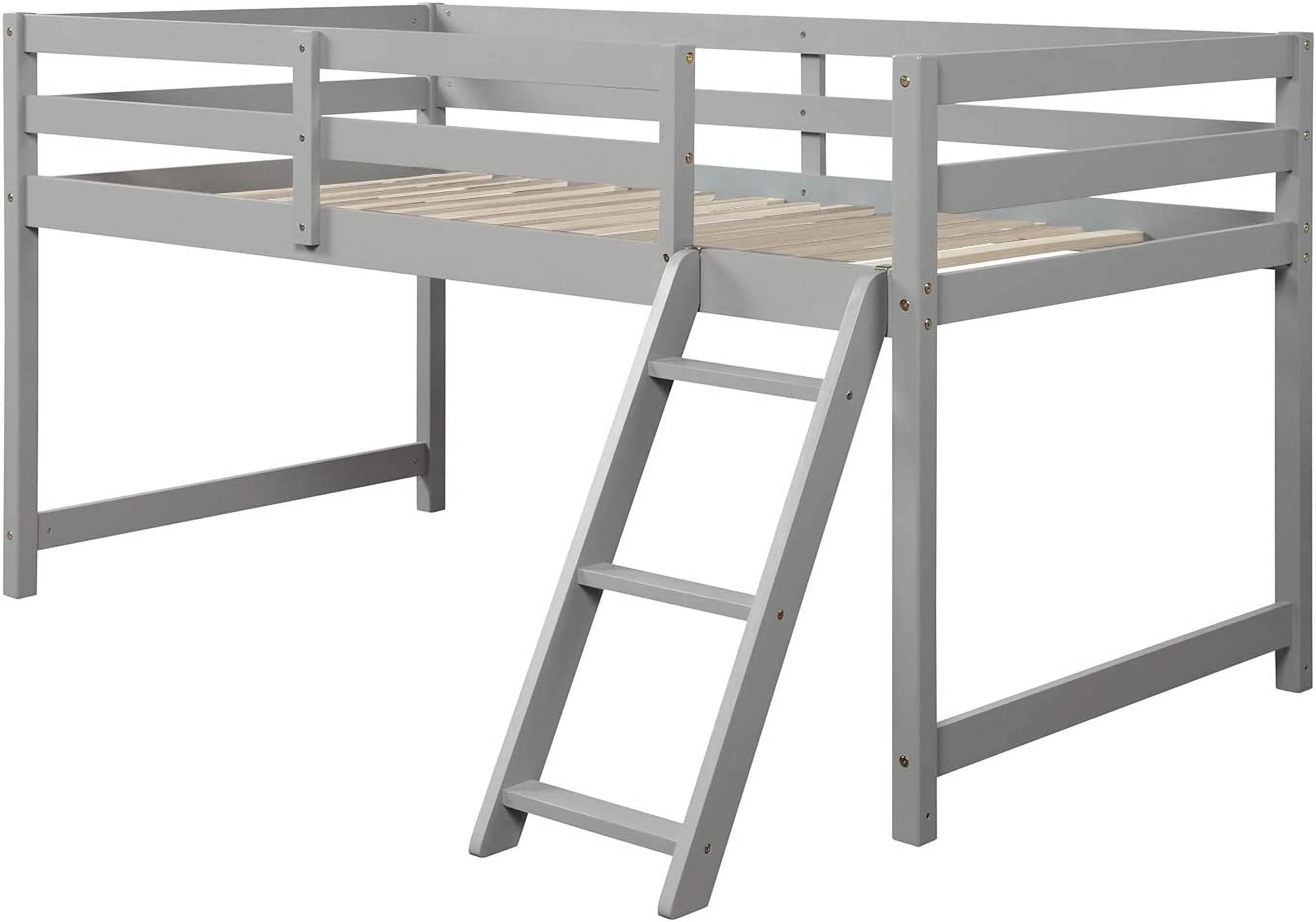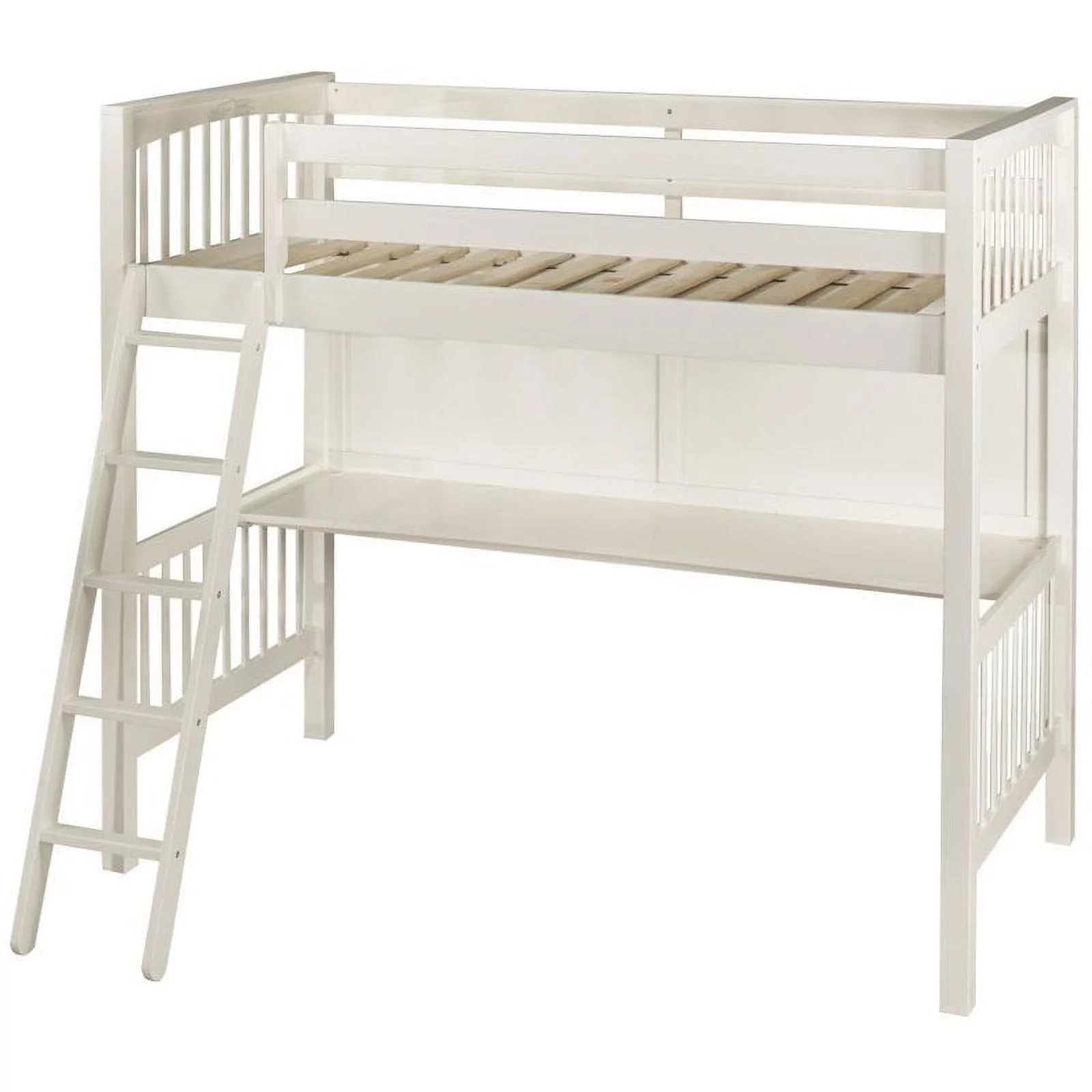 Pemberly Row Twin Wooden Loft Bed with Desk and Hanging Nightstand in White