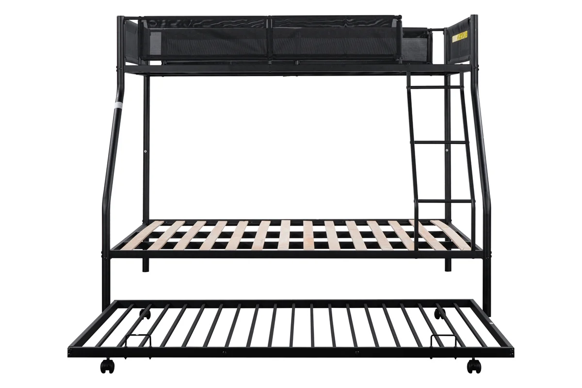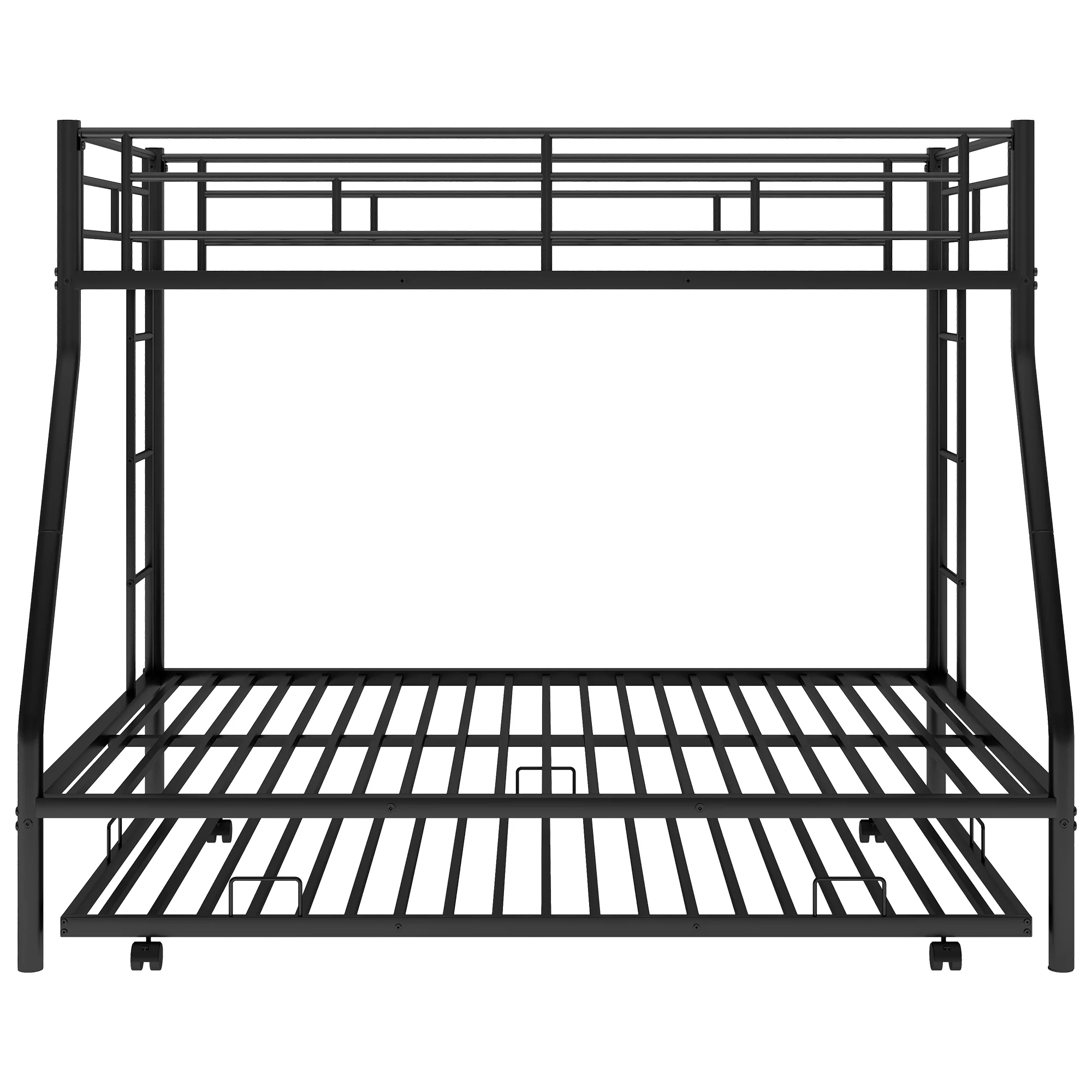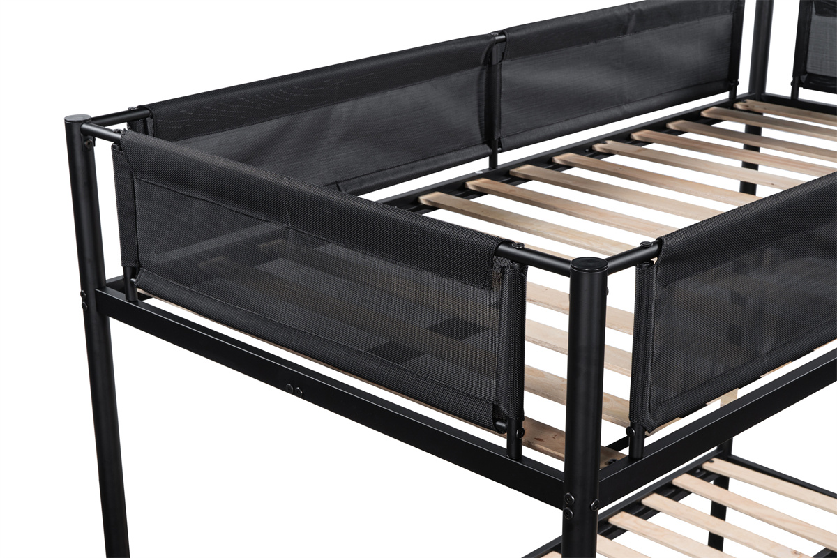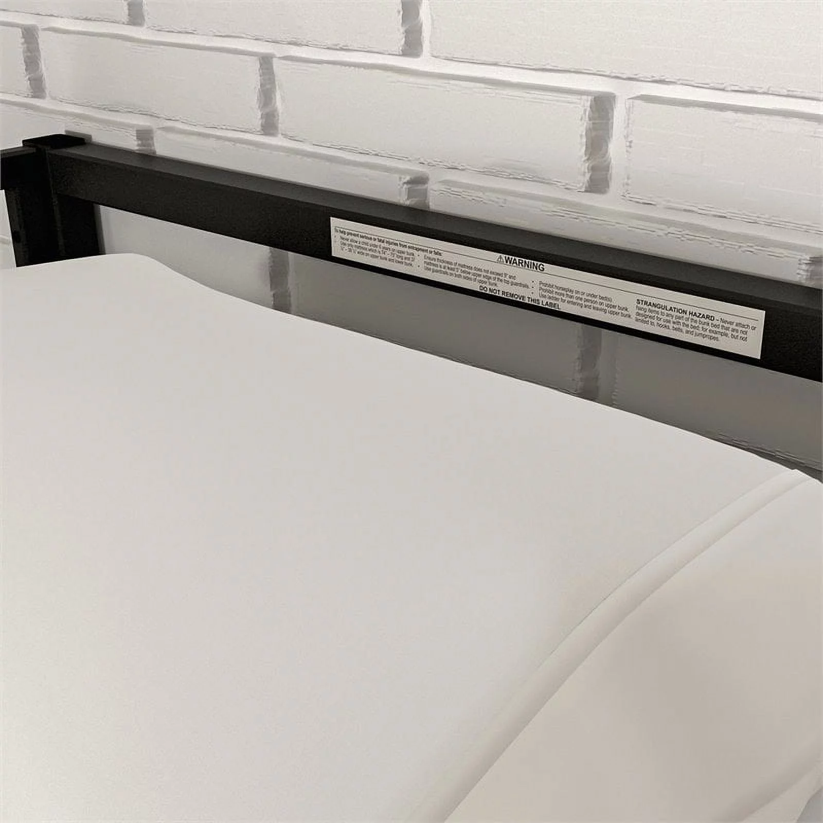 Benzara Metal Twin Over Full Bunk Bed With Full Length Guard Rails, Black-Color:Black