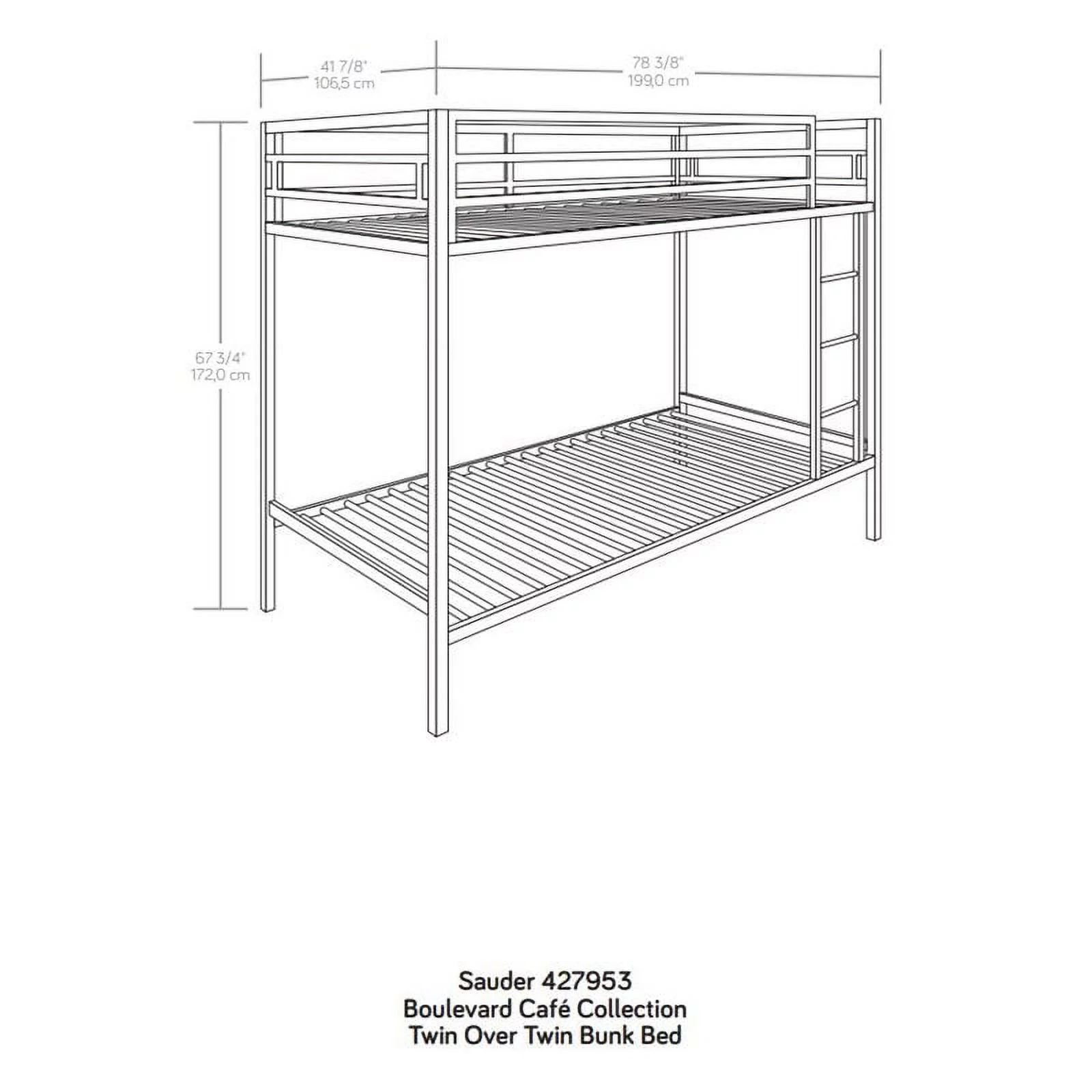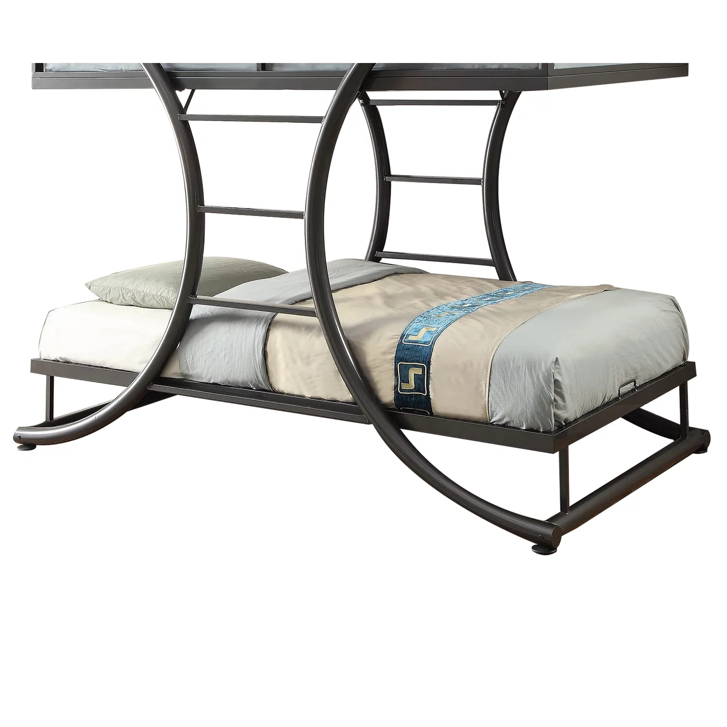 Benzara Metal Twin over Twin Bunk Bed with Ladder, Black-Color:Silver