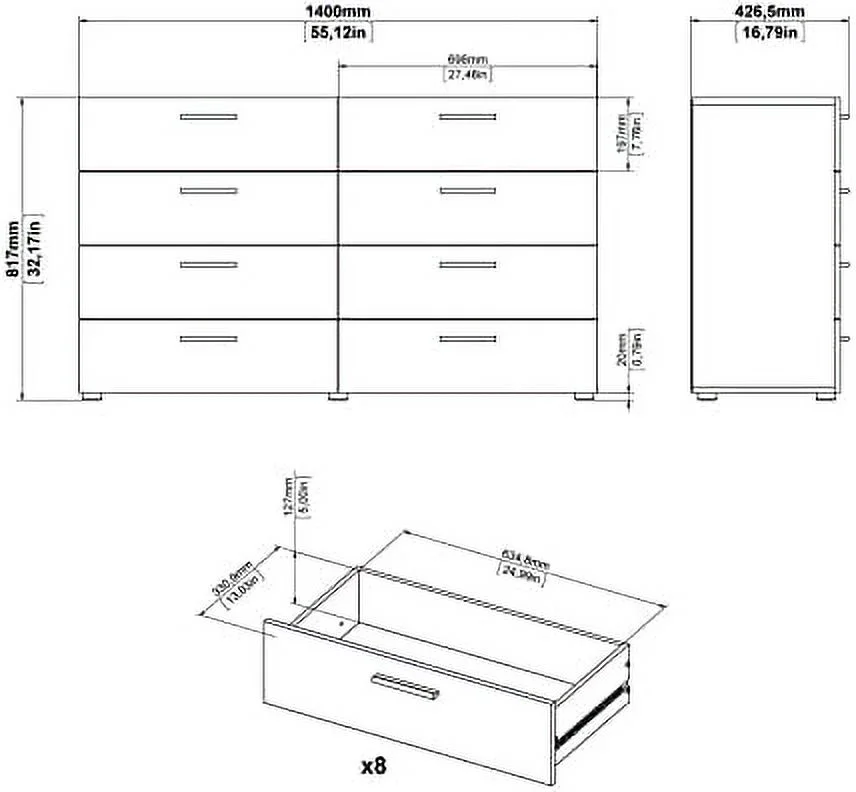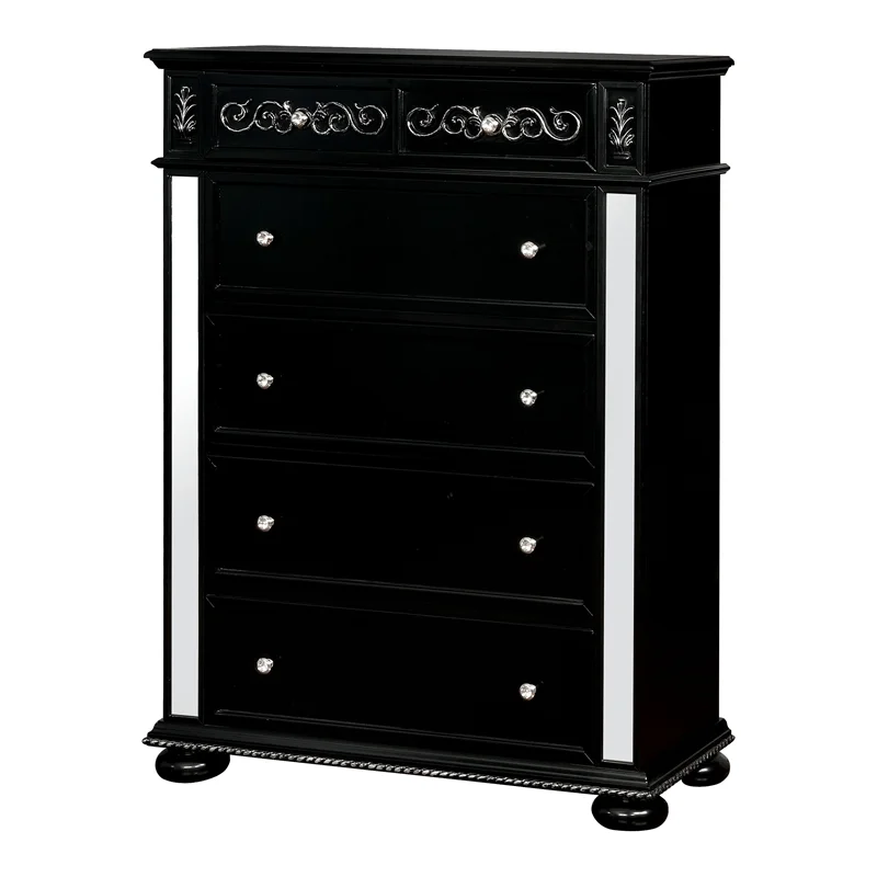 Bowery Hill 5-Drawer Traditional Solid Wood Chest with Mirror Trim in Black