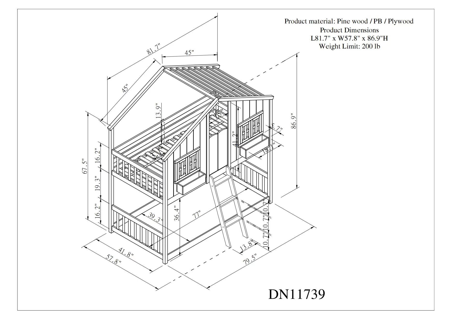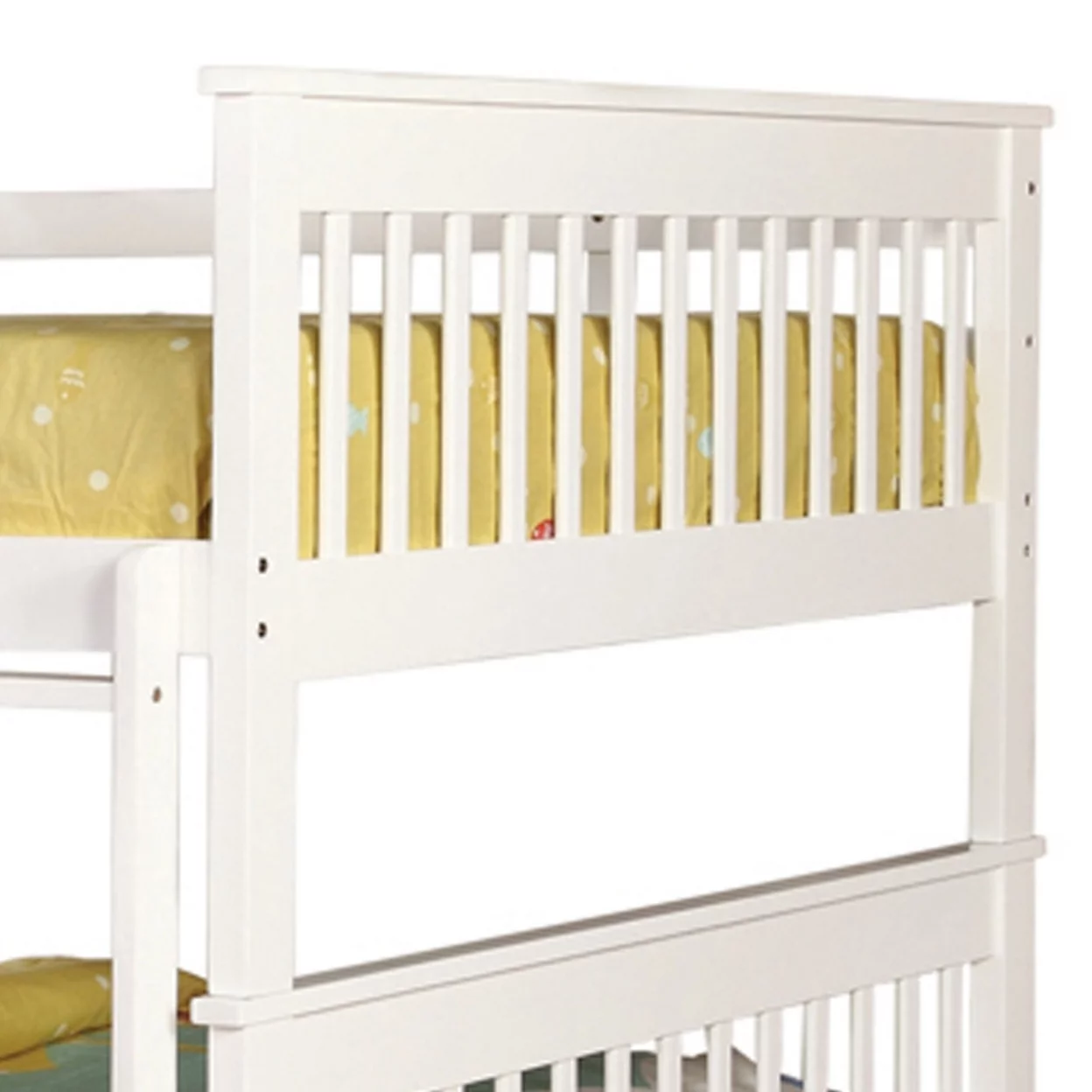 Mission Style Full over Full Bunk Bed with Attached Ladder, White- Saltoro Sherpi