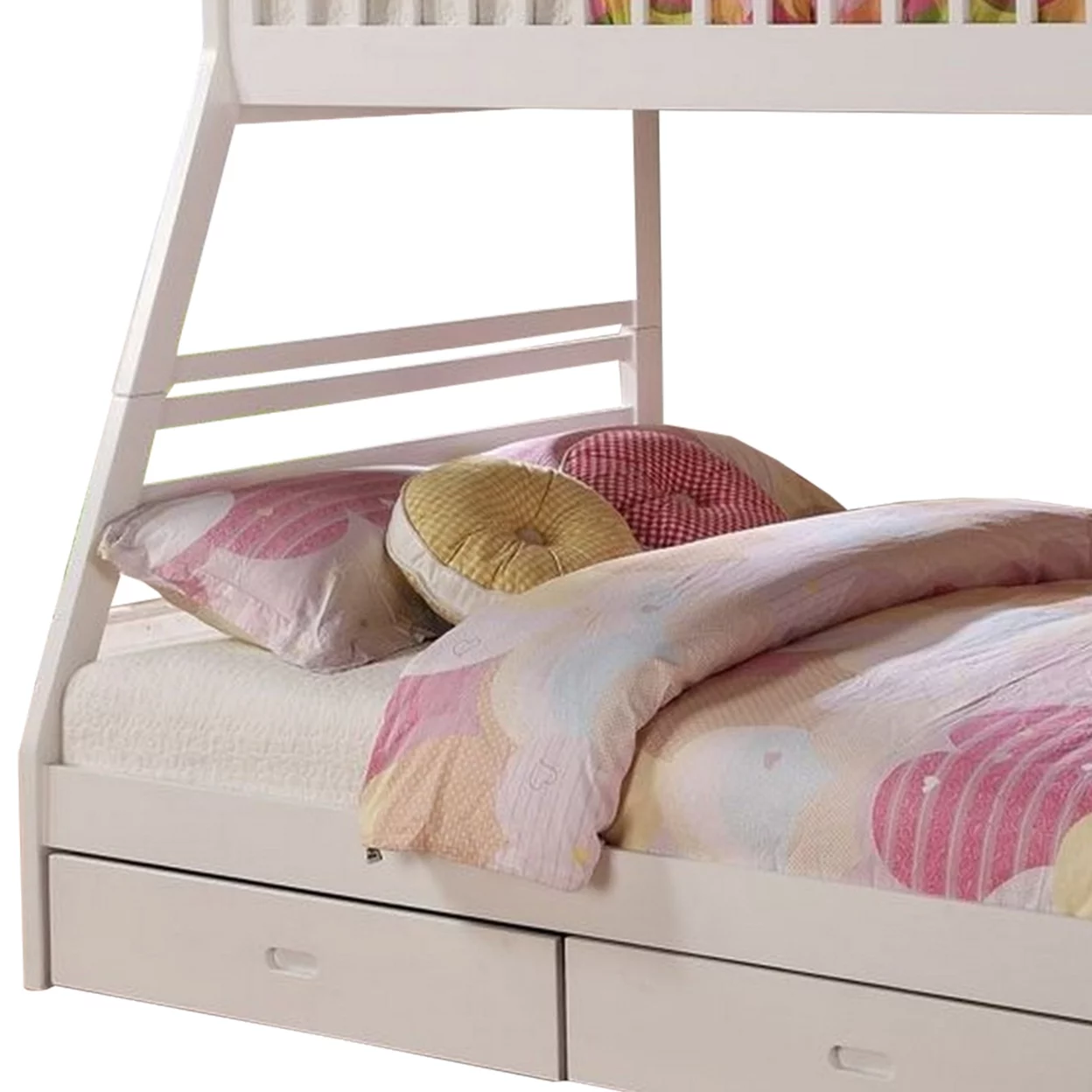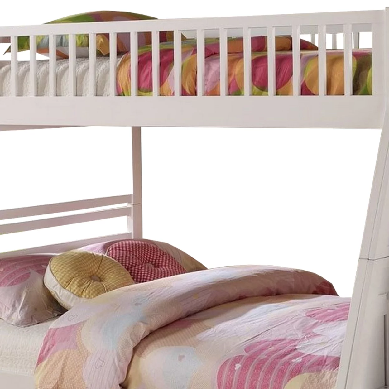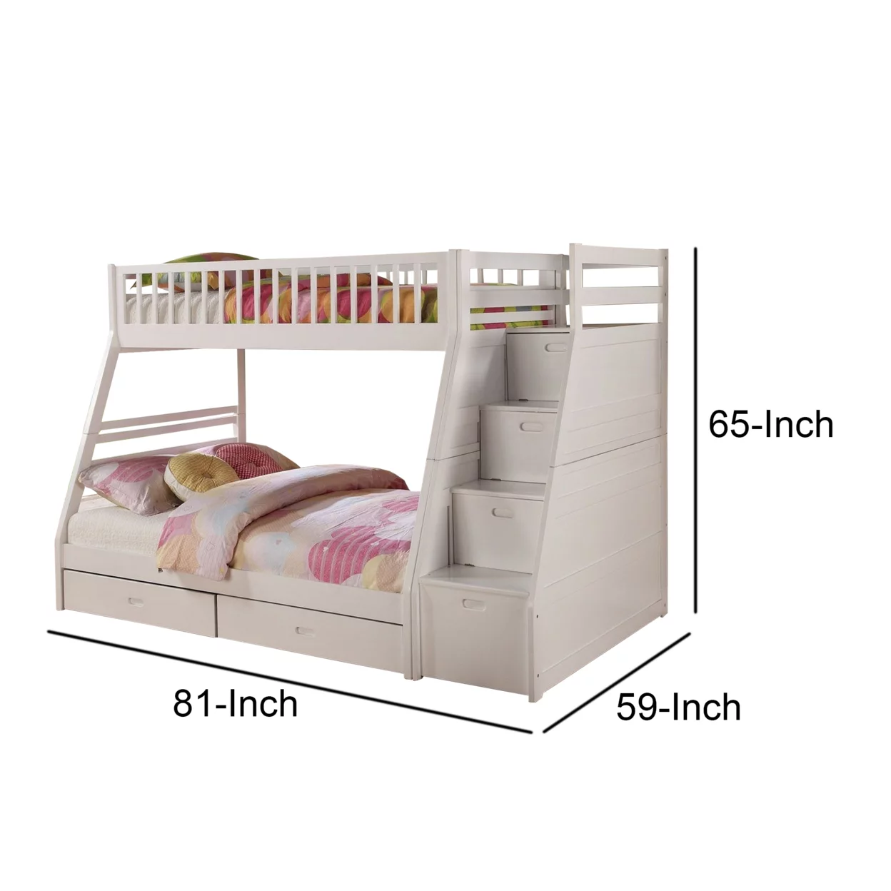 2 Drawer Wooden Twin Over Full Bunk Bed with Storage Staircase, White- Saltoro Sherpi