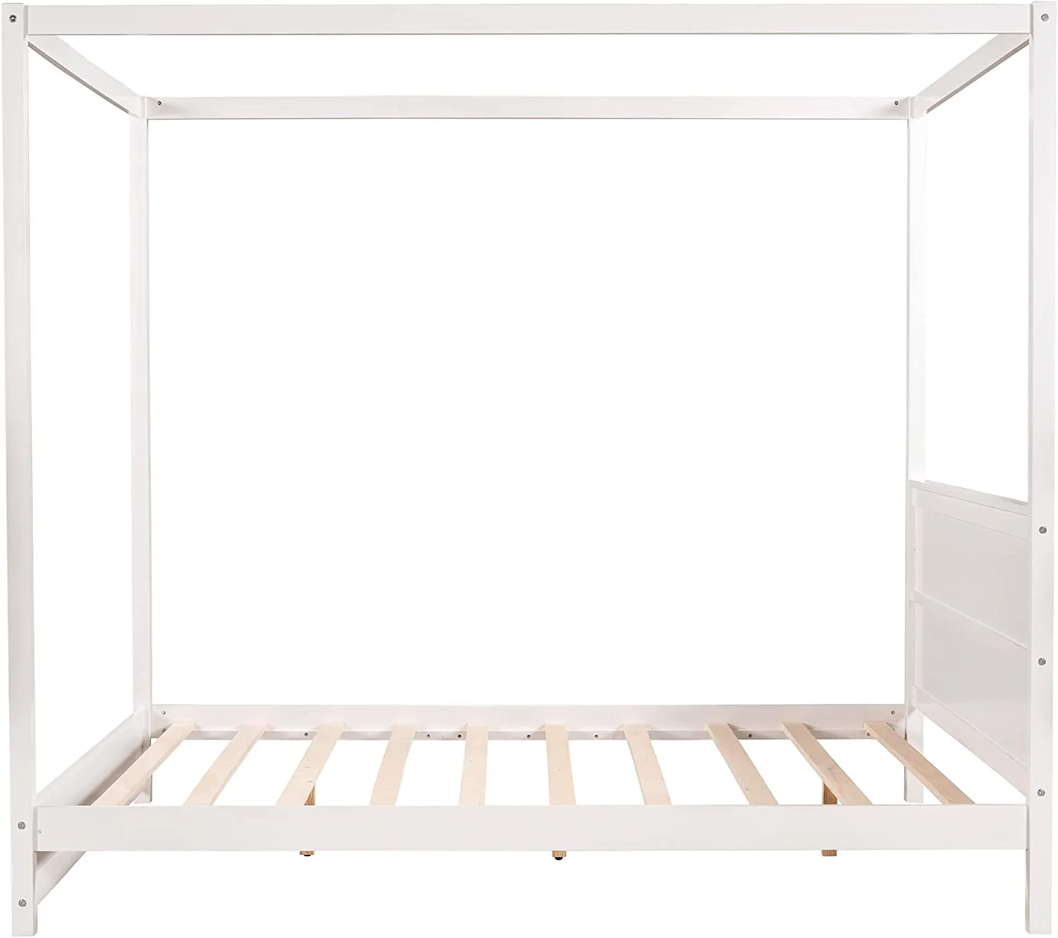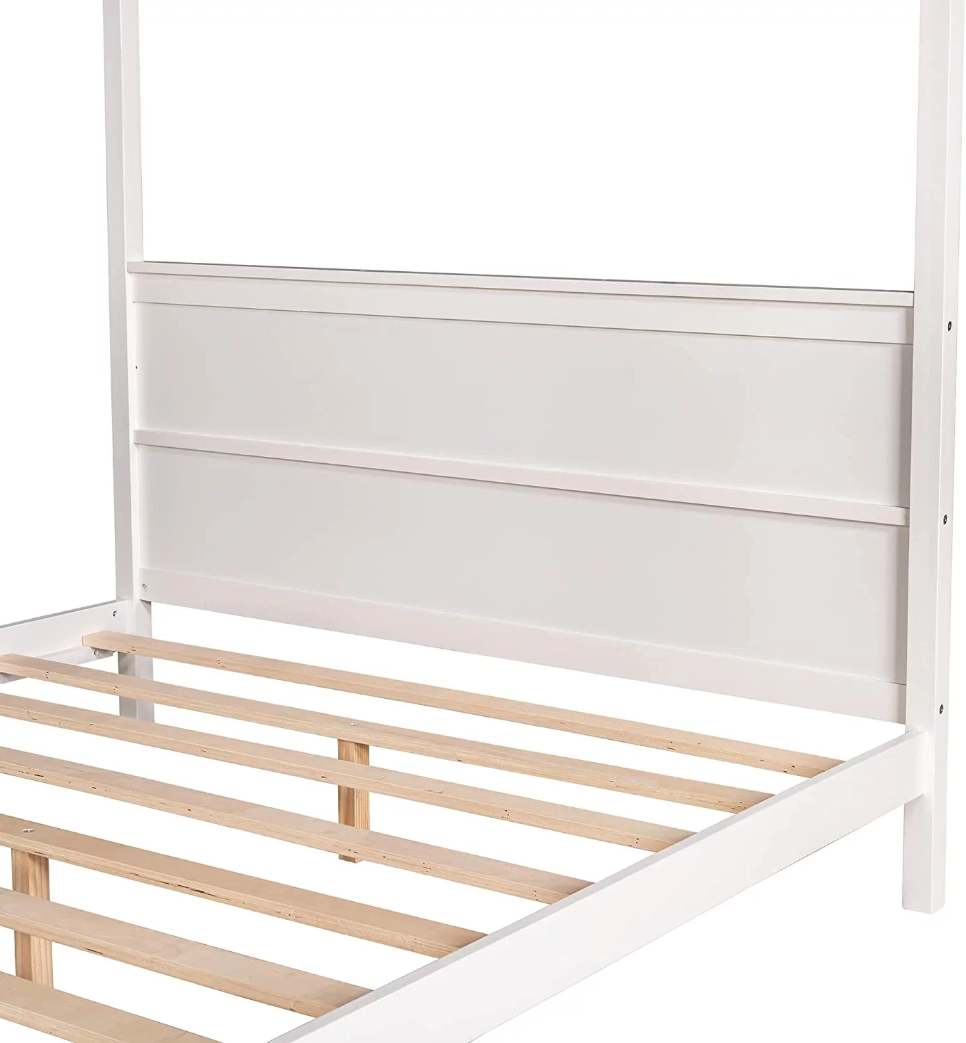 Full Size Bed Frame With Headboard, Canopy Platform Bed Frame With Wood Frame And Center Legs For Bedroom