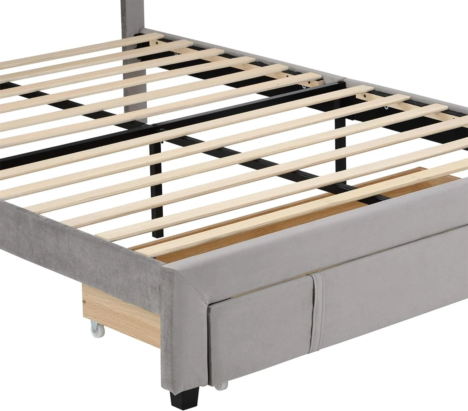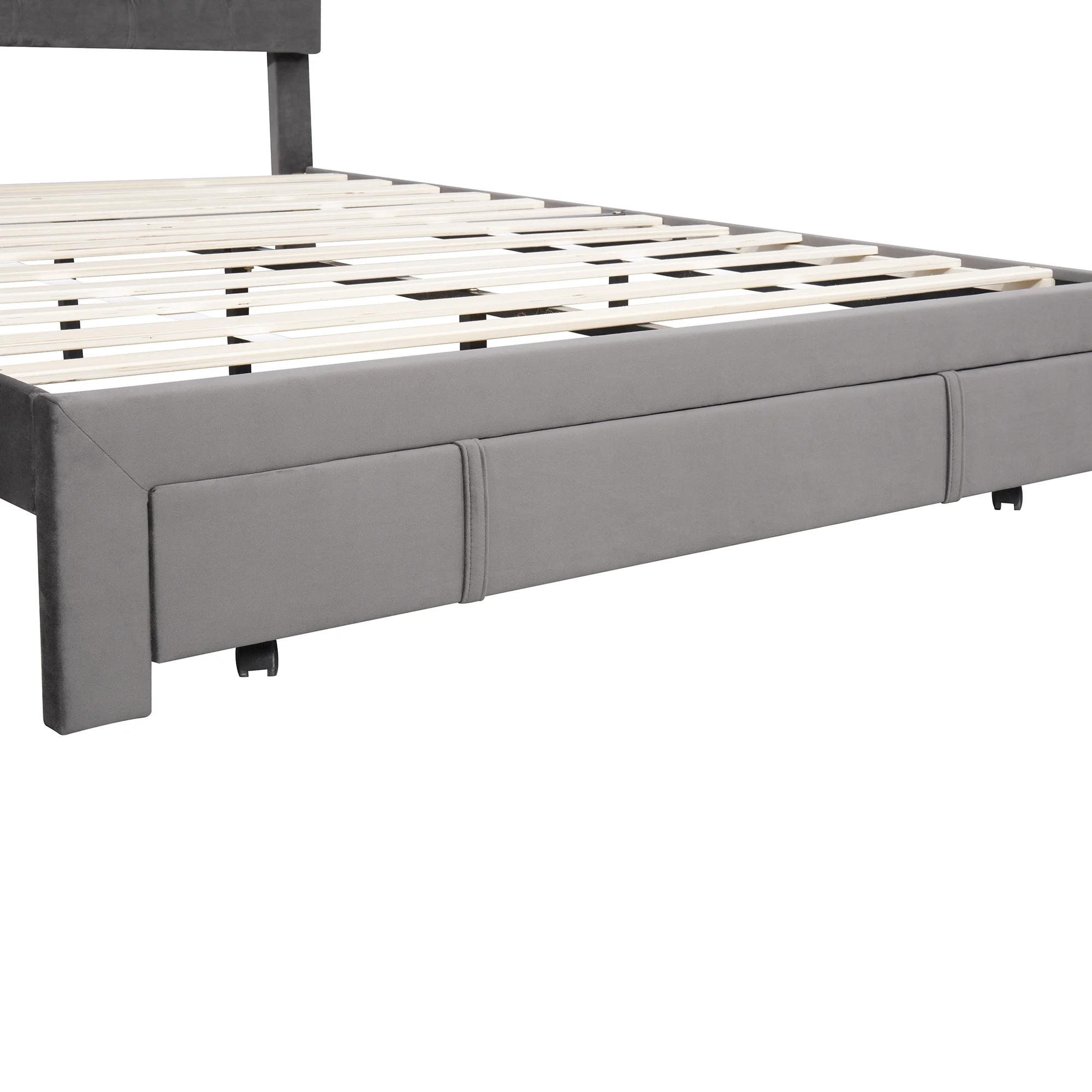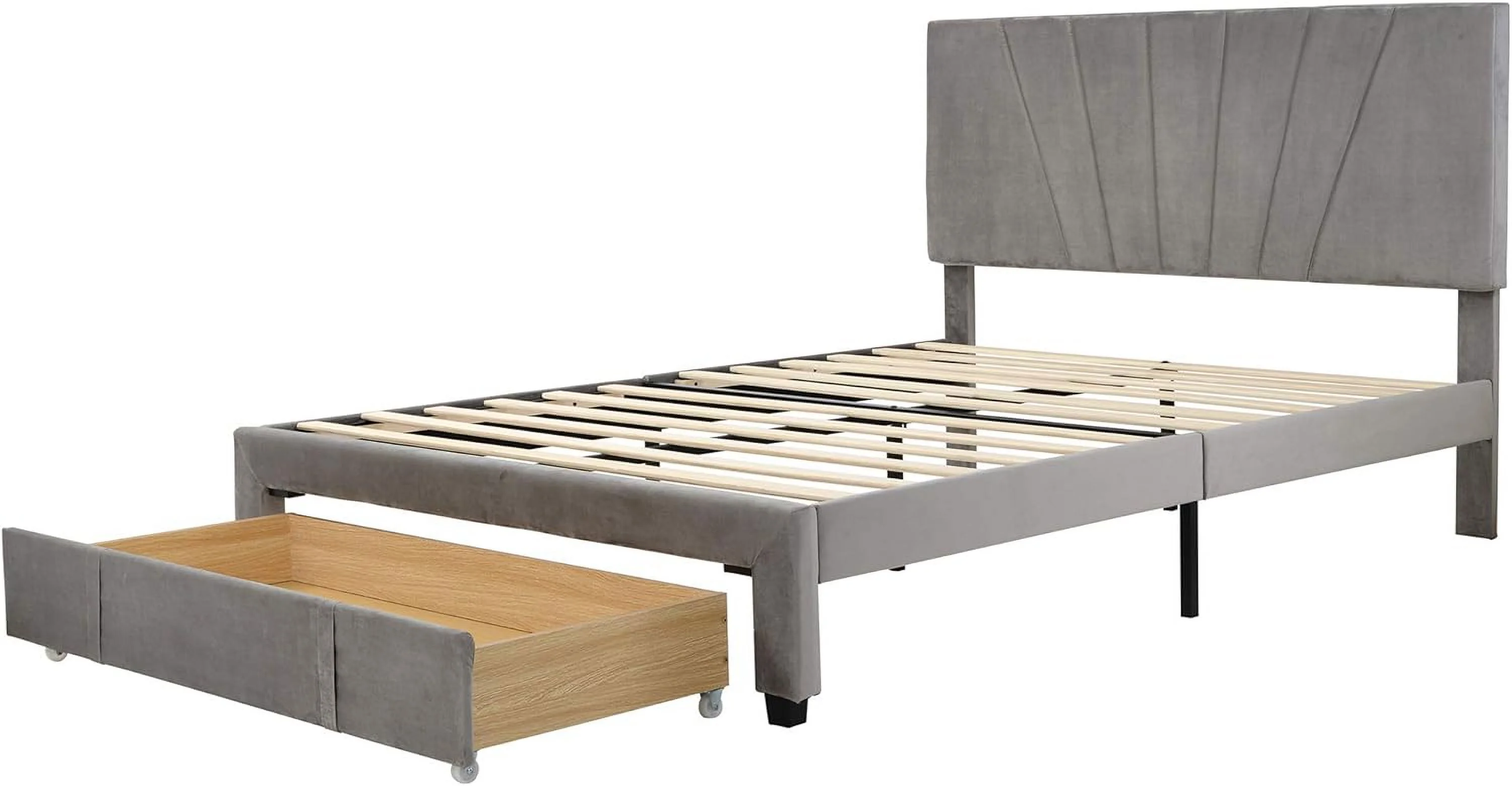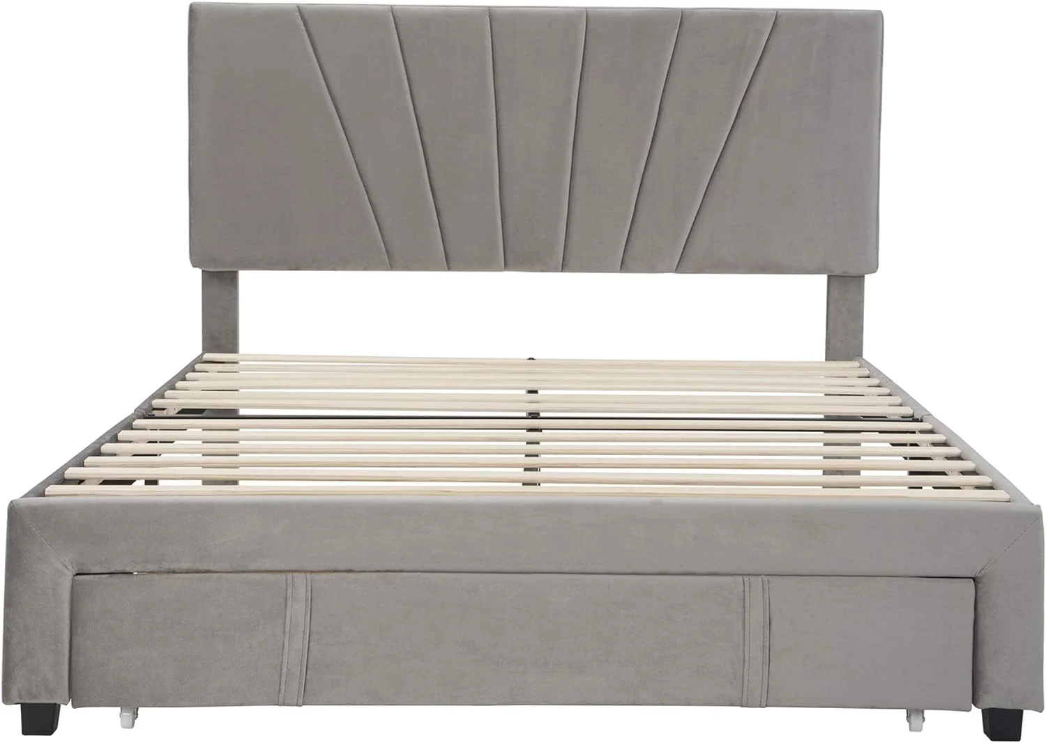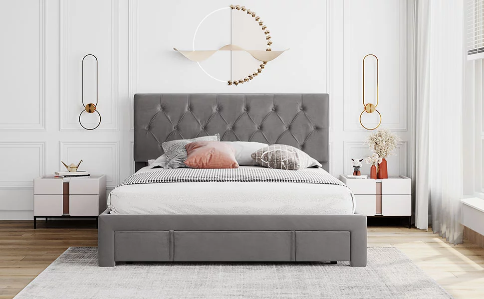 CoSoTower Queen Size Storage Bed Velvet Upholstered Platform Bed With A Big Drawer - Grey