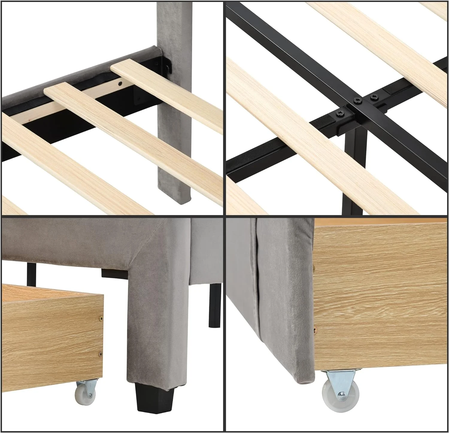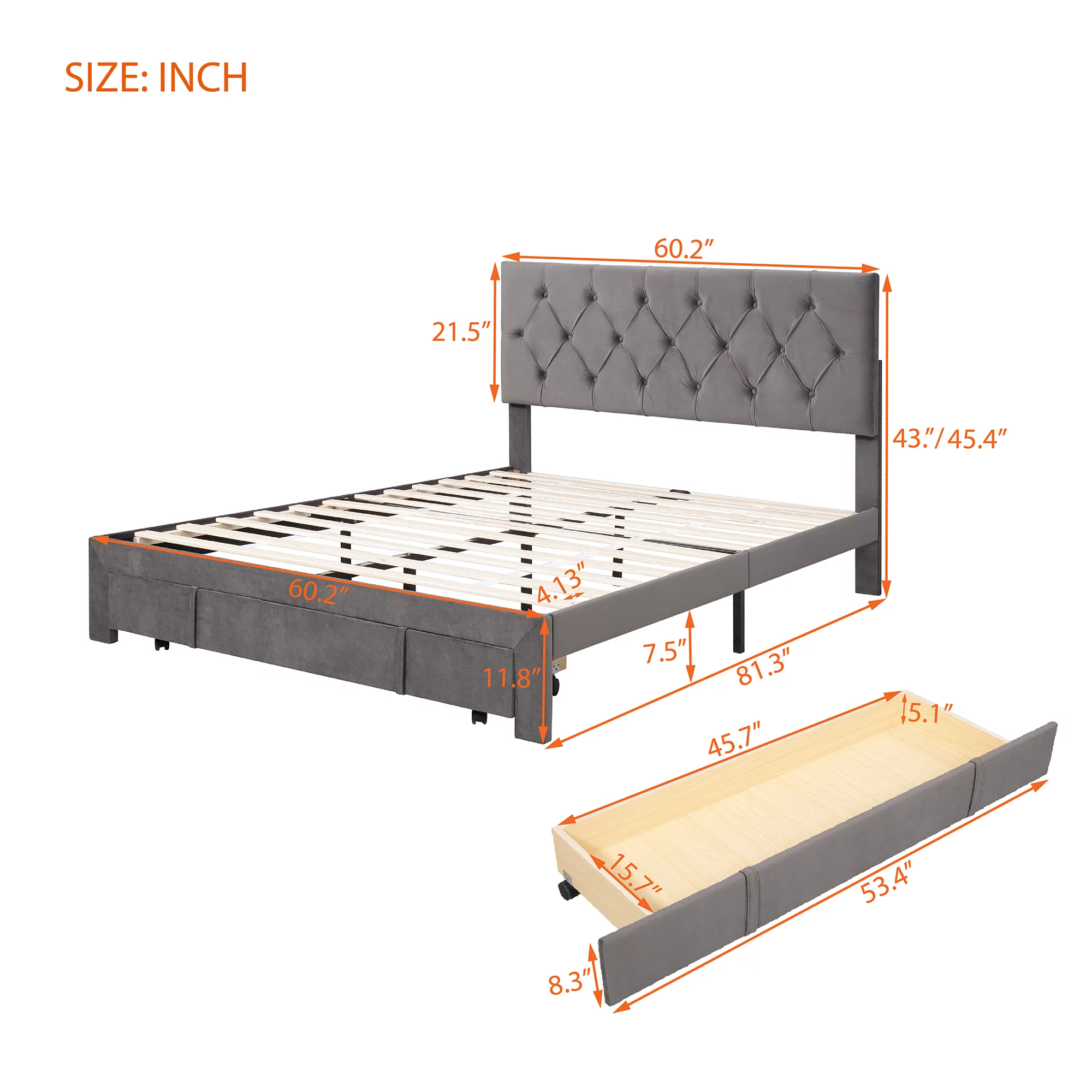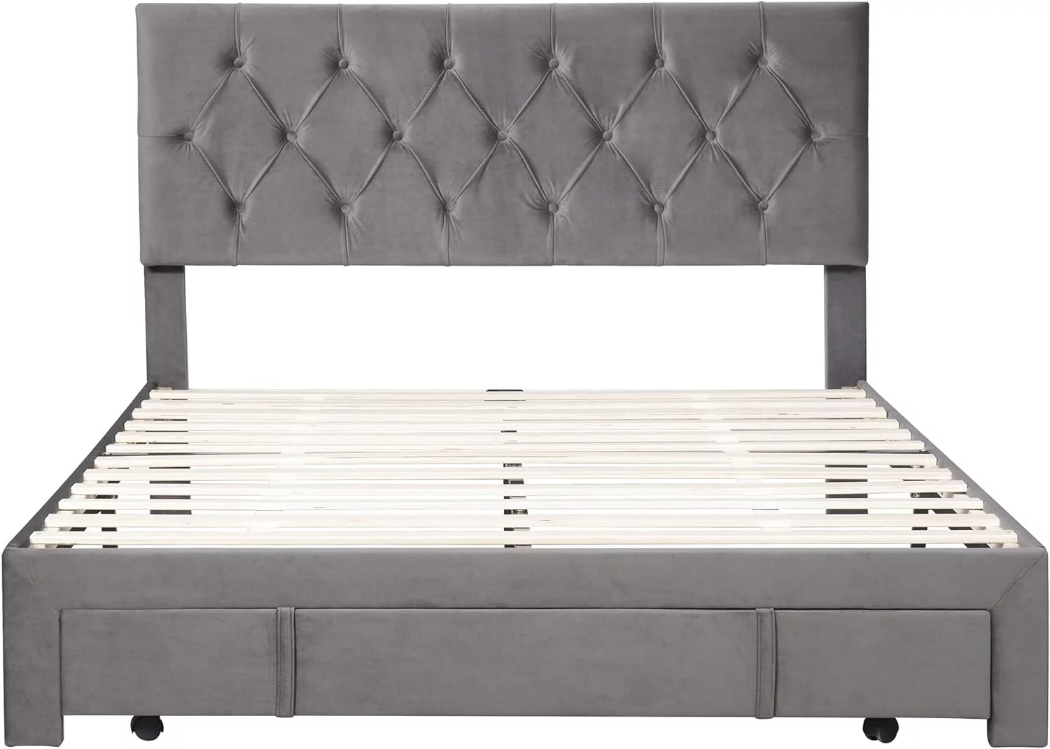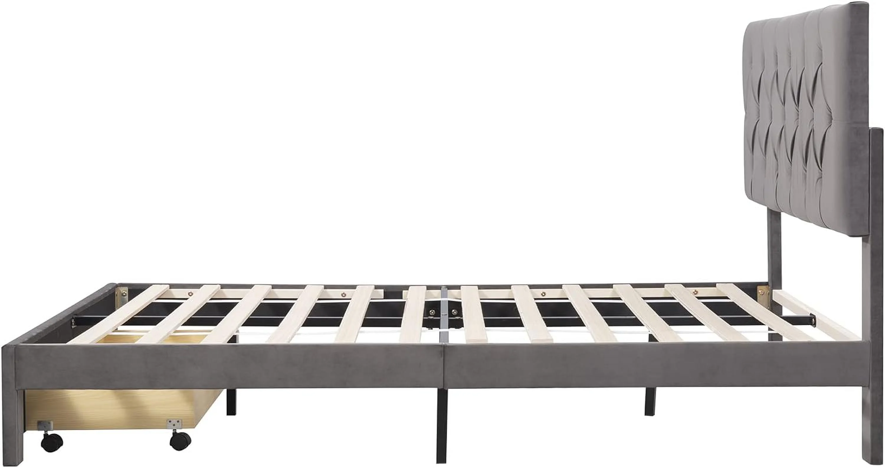 CoSoTower Queen Size Storage Bed Velvet Upholstered Platform Bed With A Big Drawer - Grey
