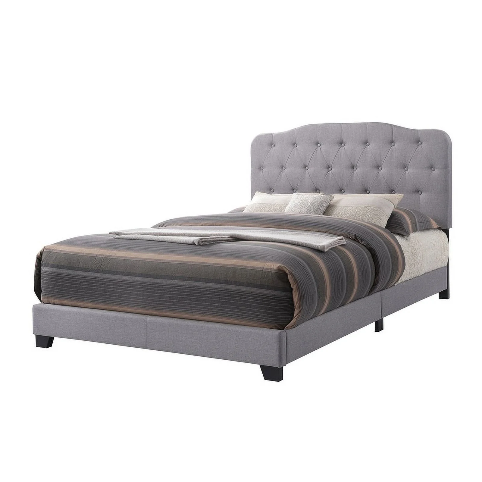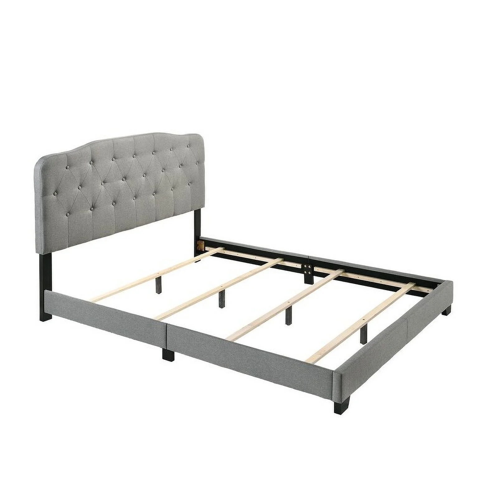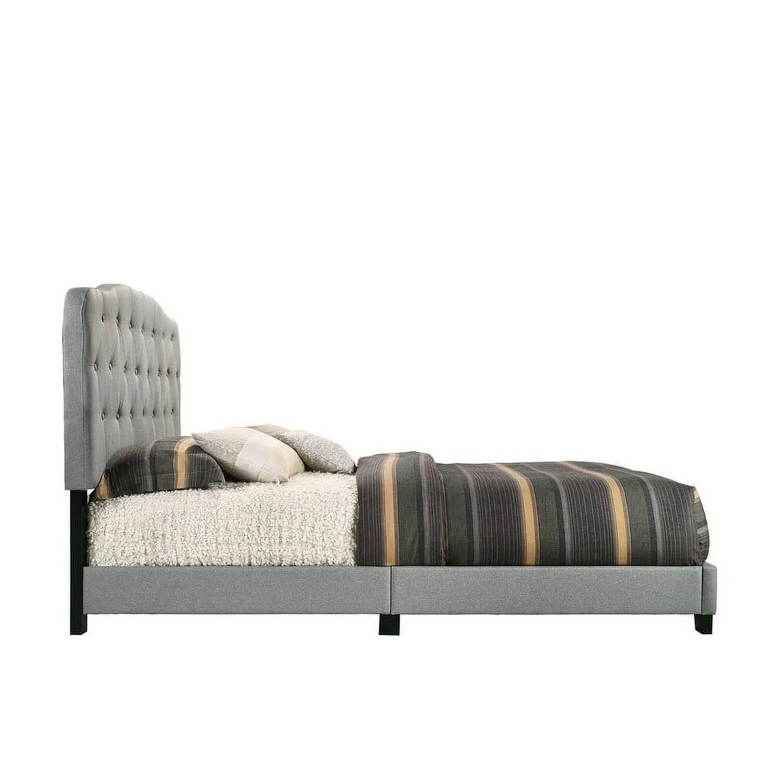Benzara Solid Wood & Veneer Queen Panel Bed with Round Legs in Gray