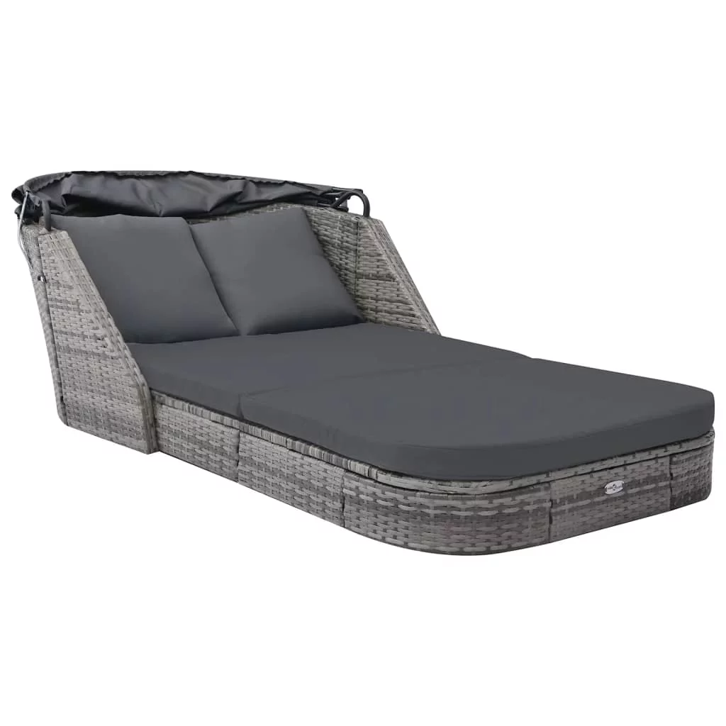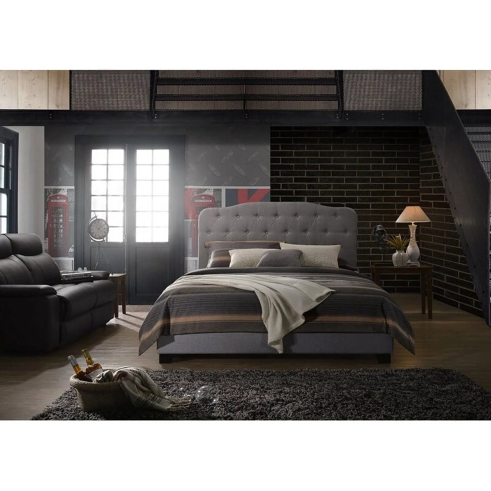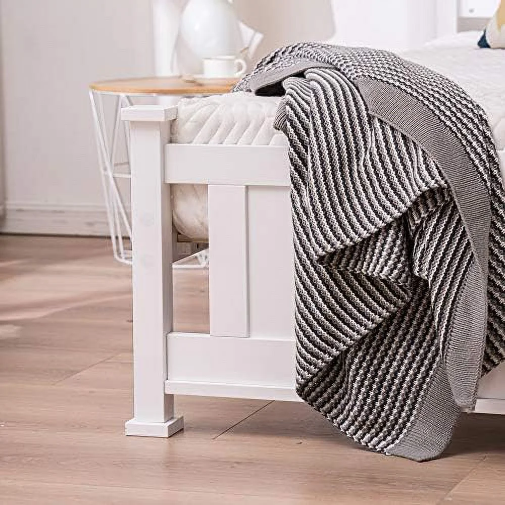 Benzara Solid Wood & Veneer Queen Panel Bed with Round Legs in Gray