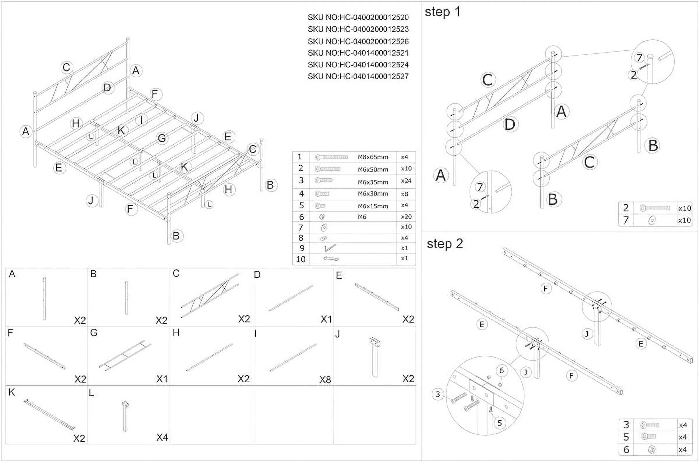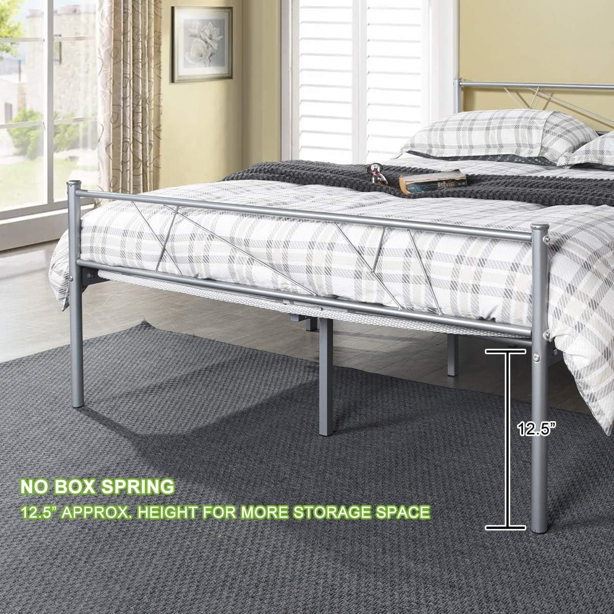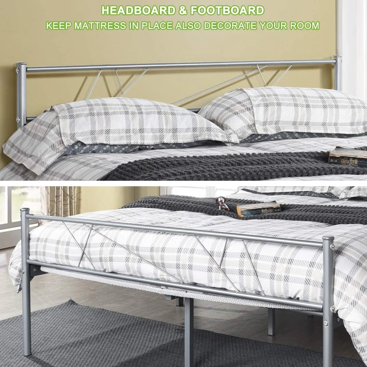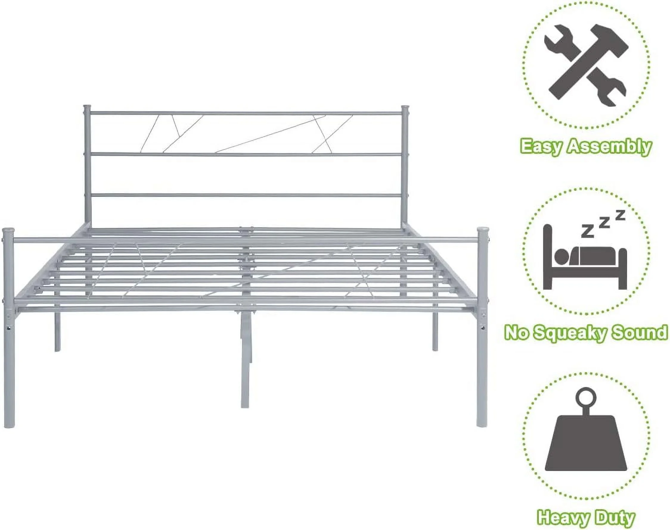 Queen Size Steel Foundation Metal Bed Frame Classic Headboard Single Bed
