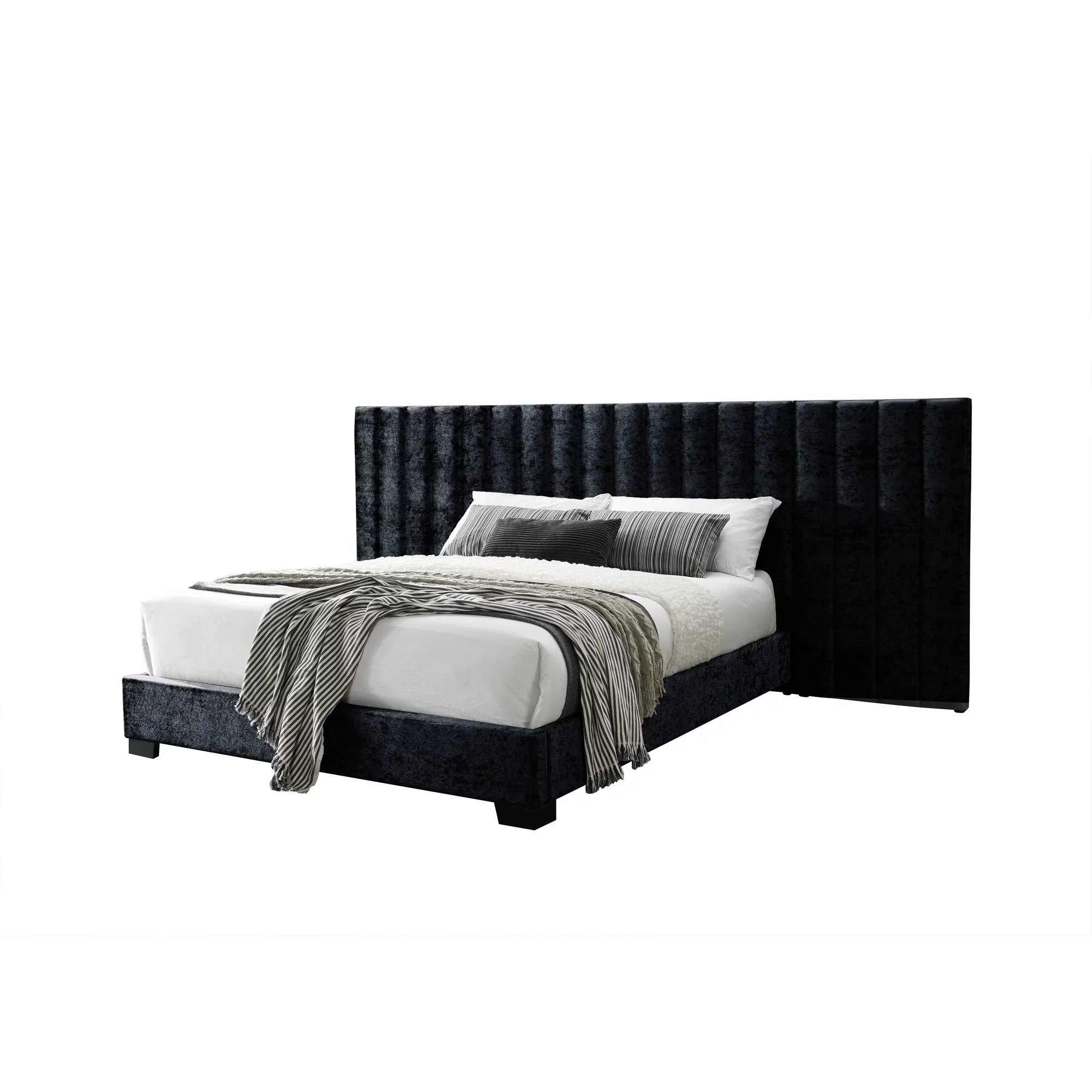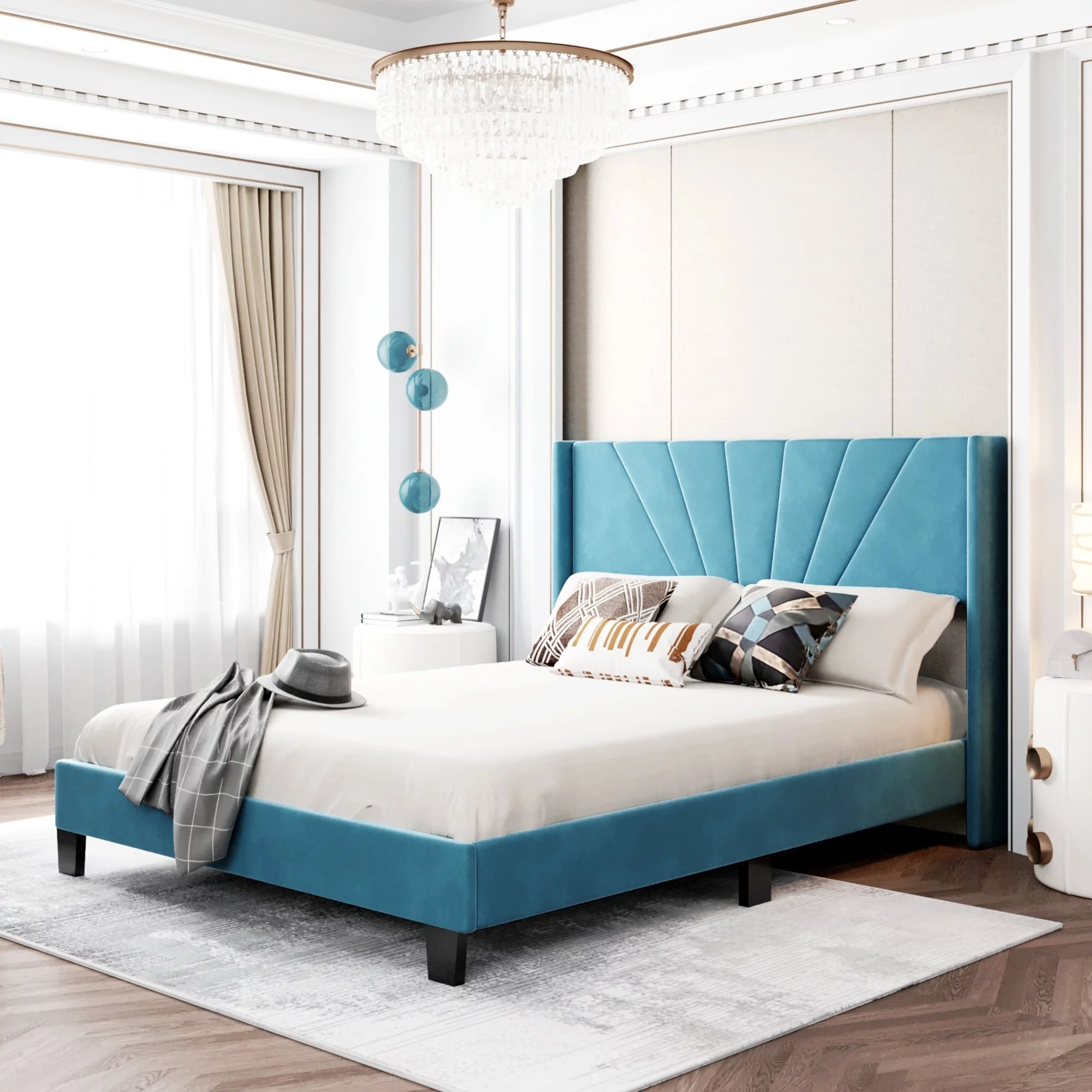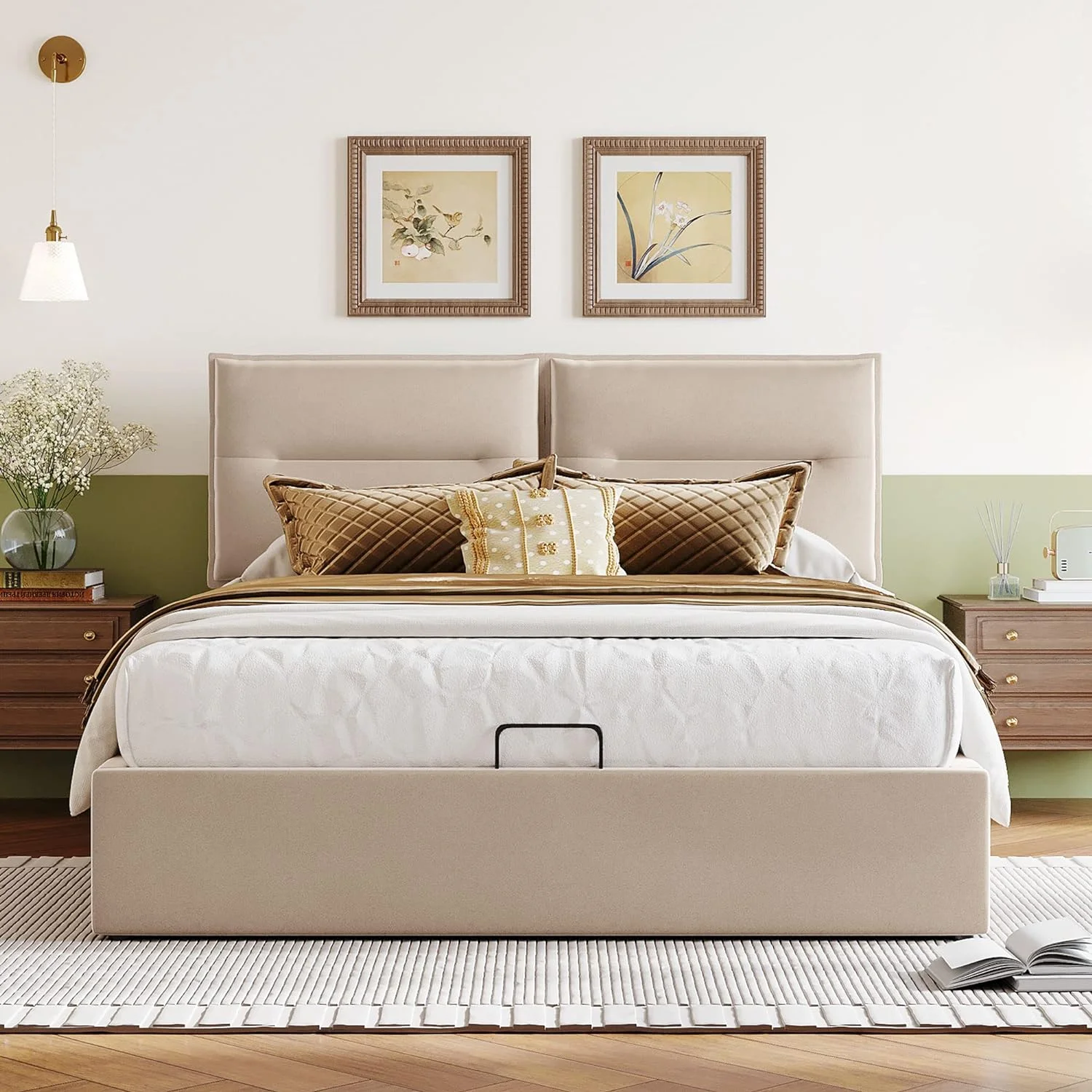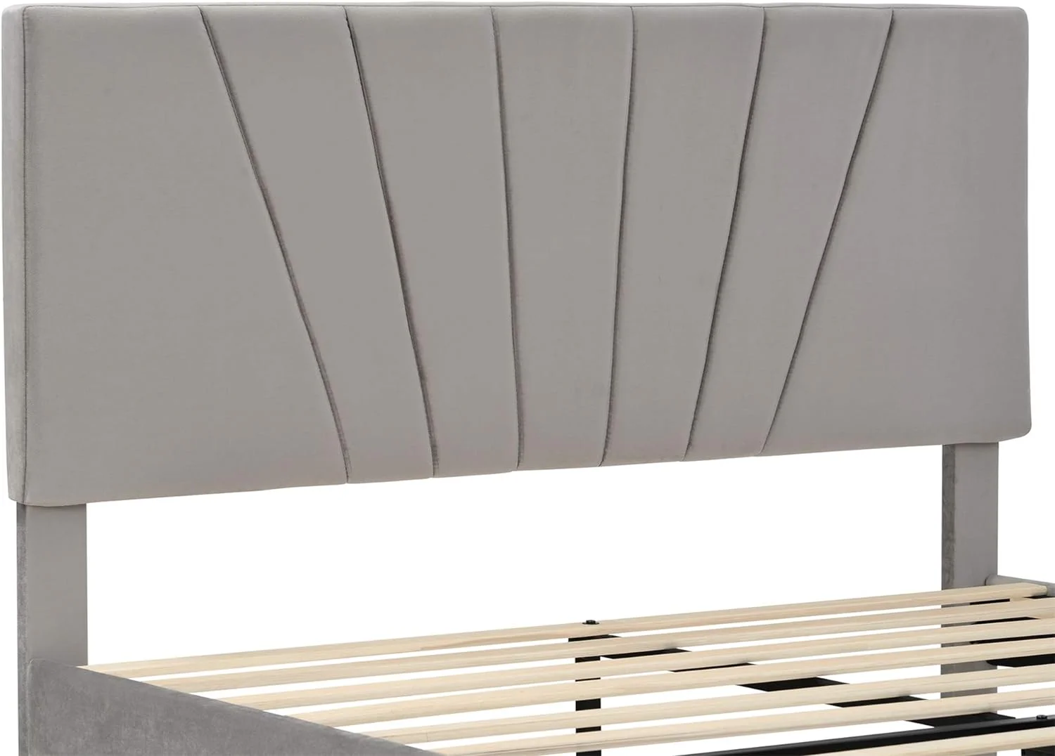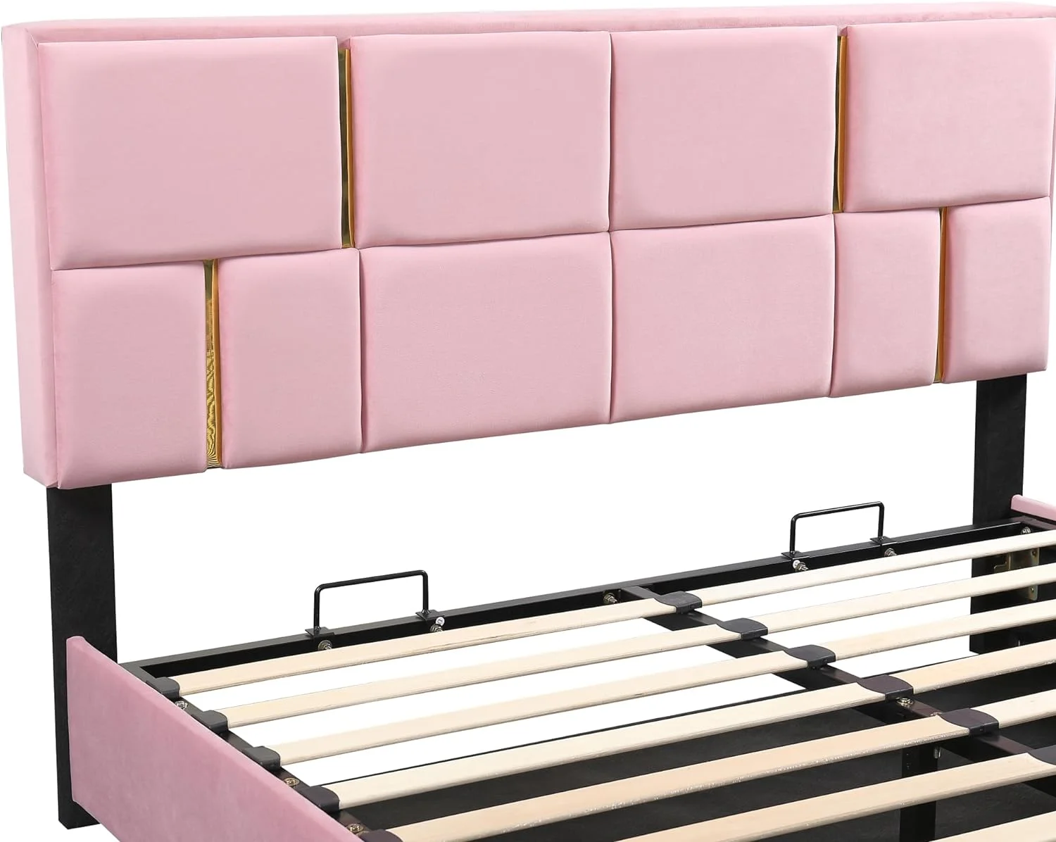 Upholstered Platform Bed, Hydraulic Storage System, Queen Size, Pine Wood & Plywood Frame, Velvet BedHead