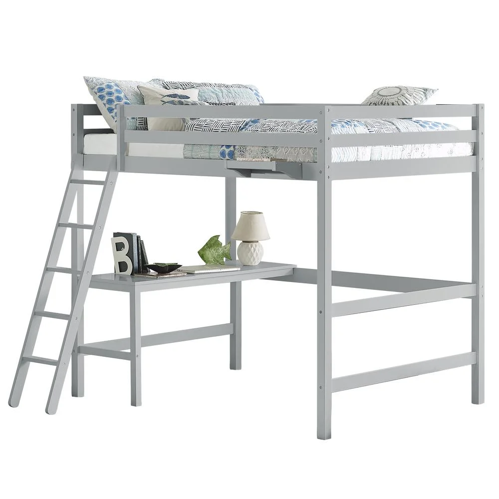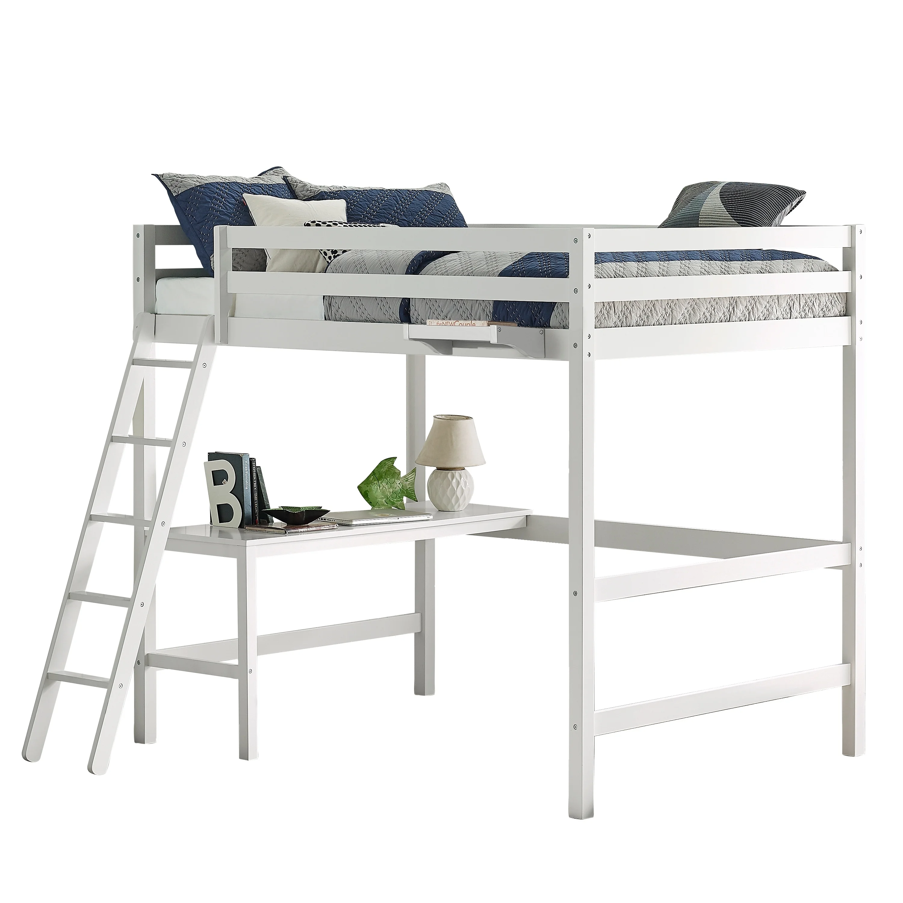 Rosebery Kids Caspian Wood Full Loft with Chair & Hanging Nightstand in White