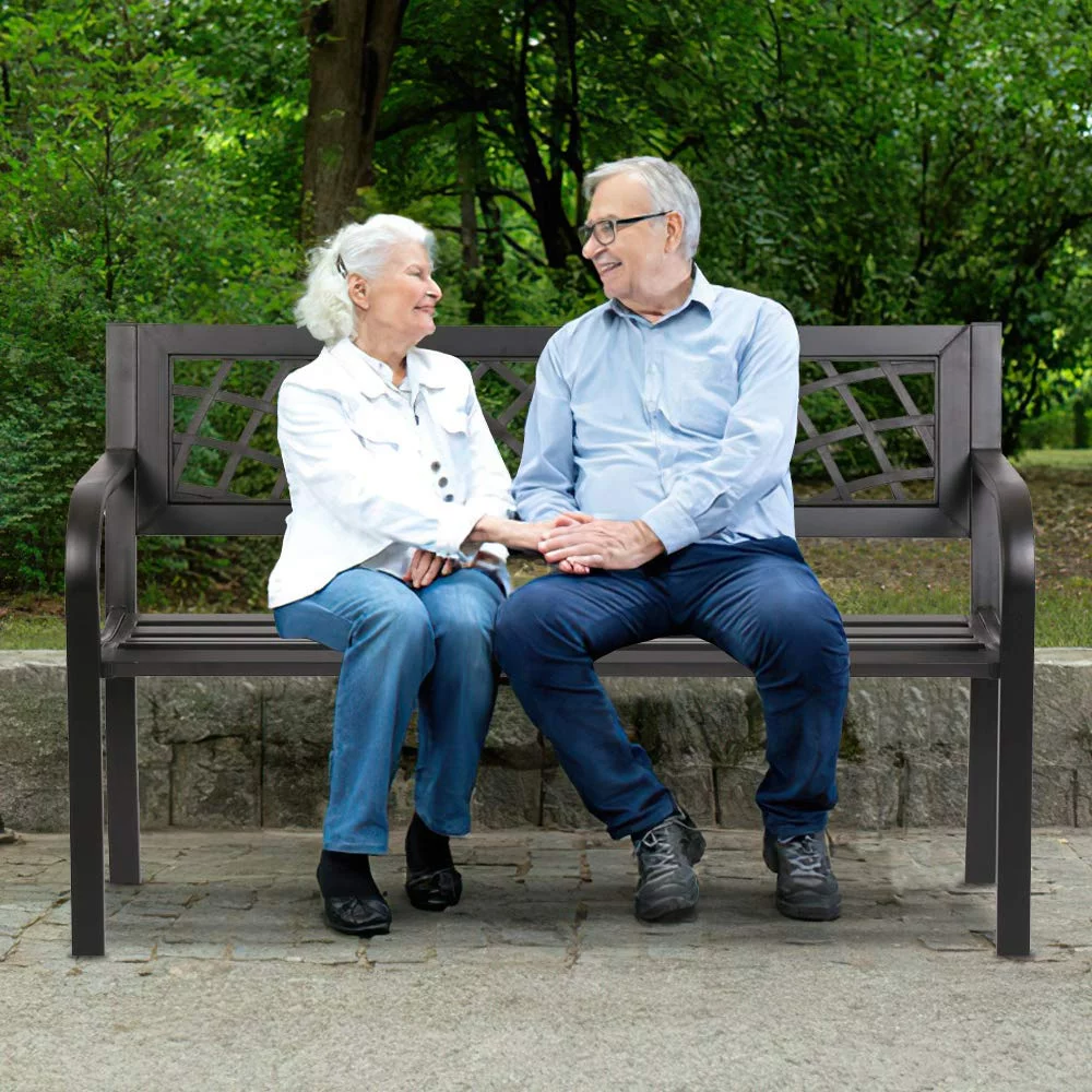Garden Bench Patio Bench Outdoor Park Bench with Armrests, for Park Yard Deck Entryway, Black