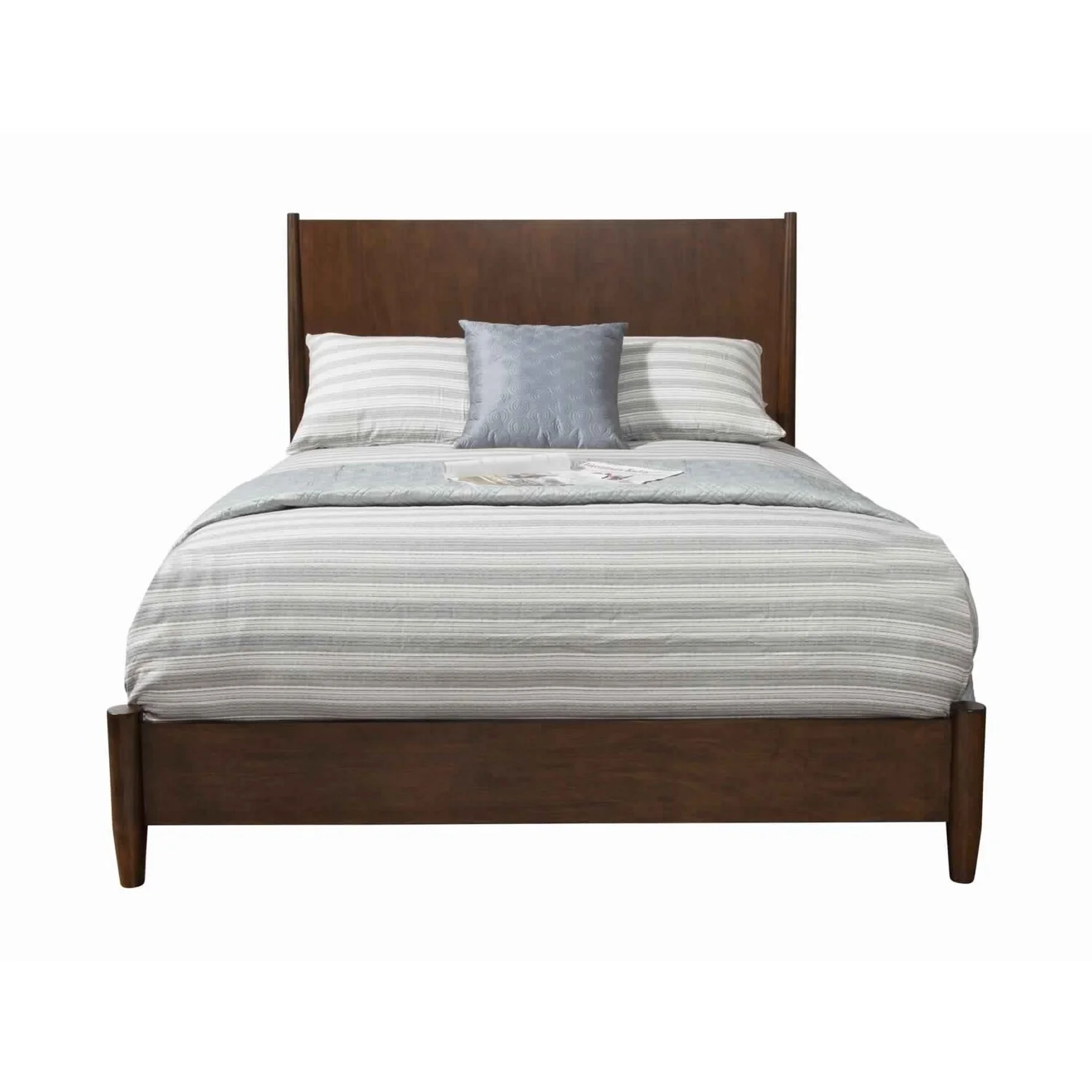 Benjara BM222500 Mid Century Modern Wooden Bed with Round Legs, Brown - Queen Size