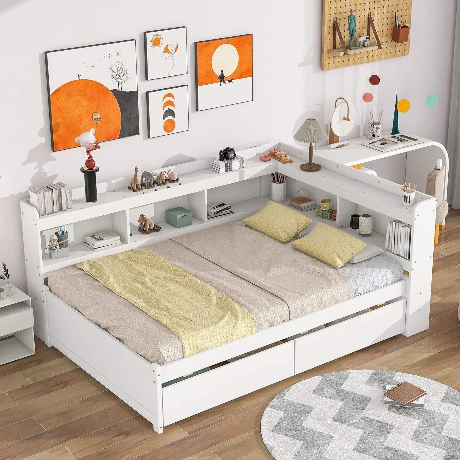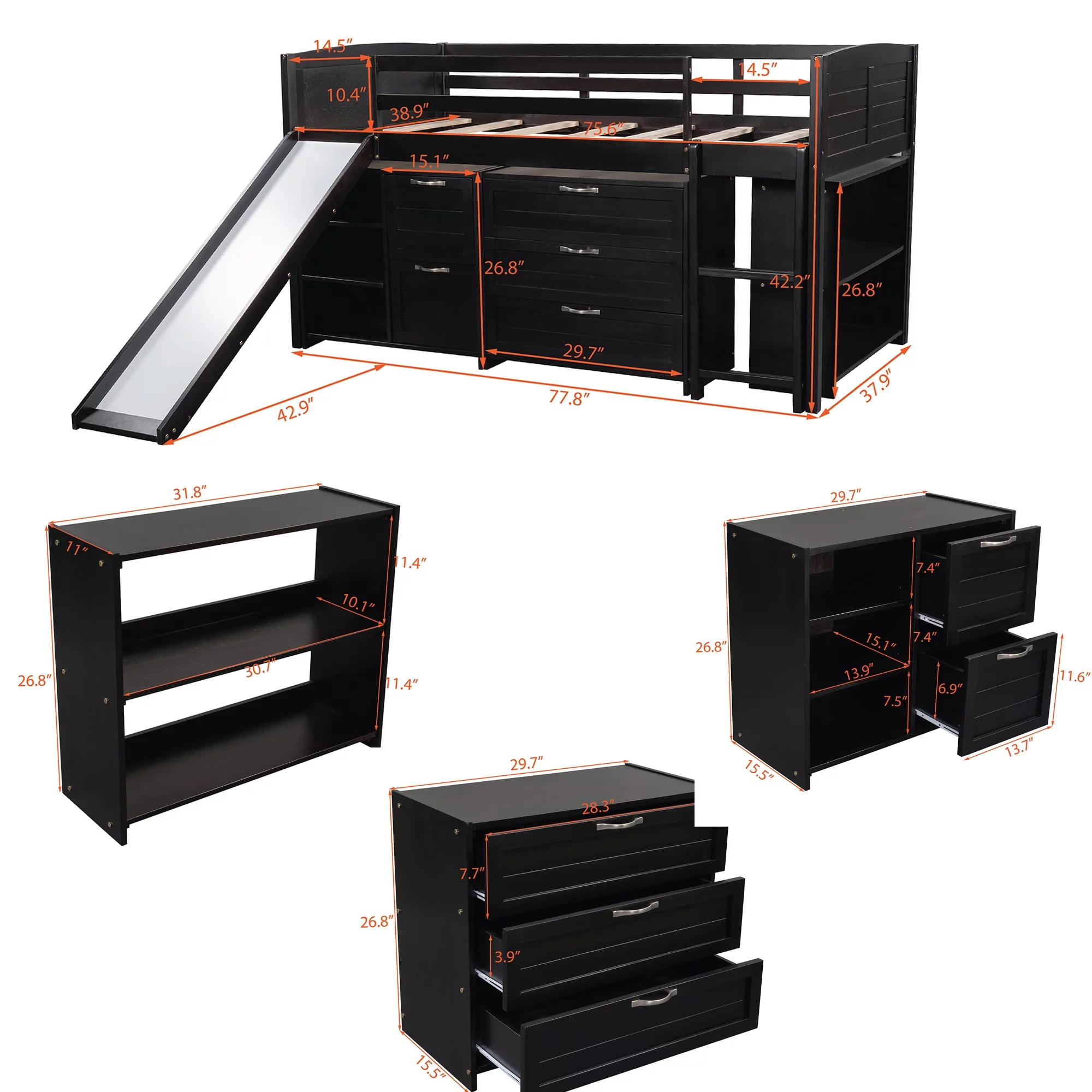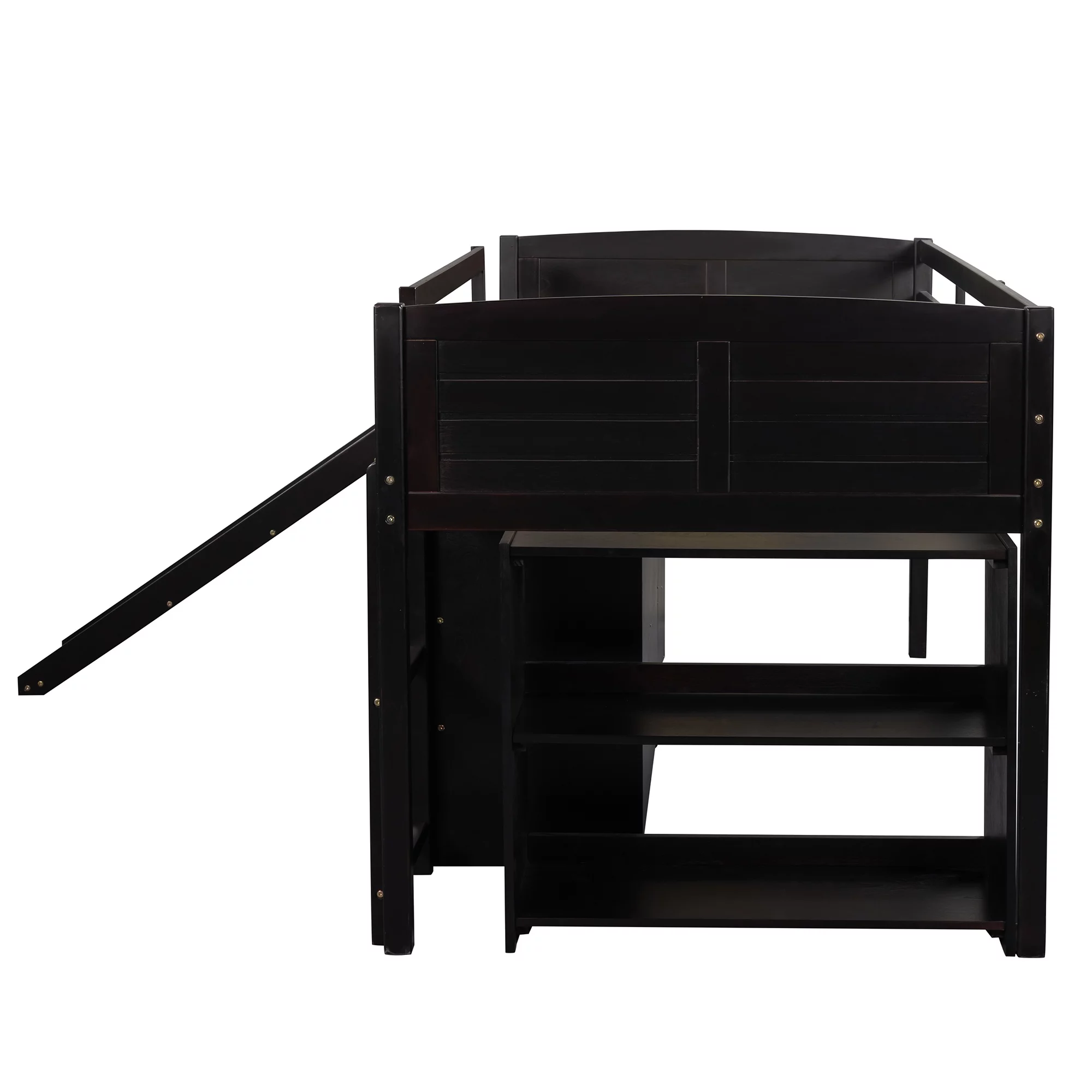Loft Bed Low Study Twin Size Loft Bed With Storage Steps and Portable,Desk,Espresso