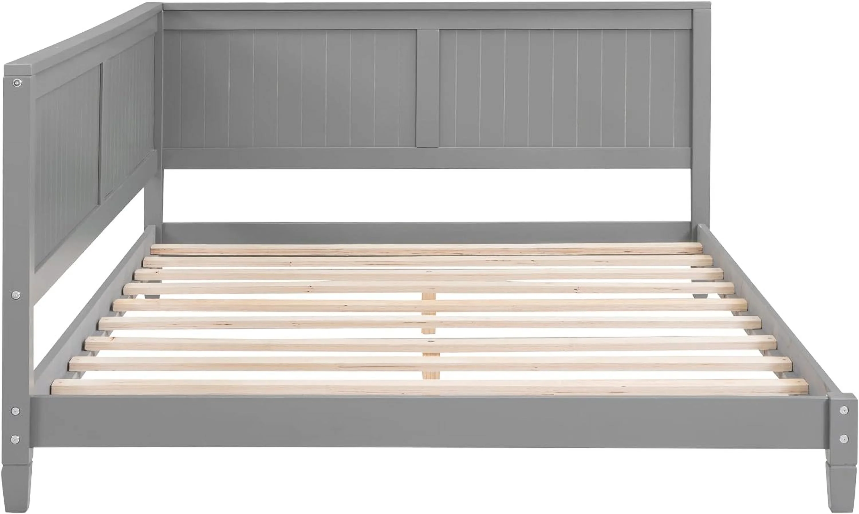 Full Size Wood Daybed/Sofa Bed Frame For Boys Girls Kids Toddler, Gray