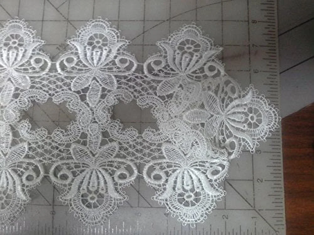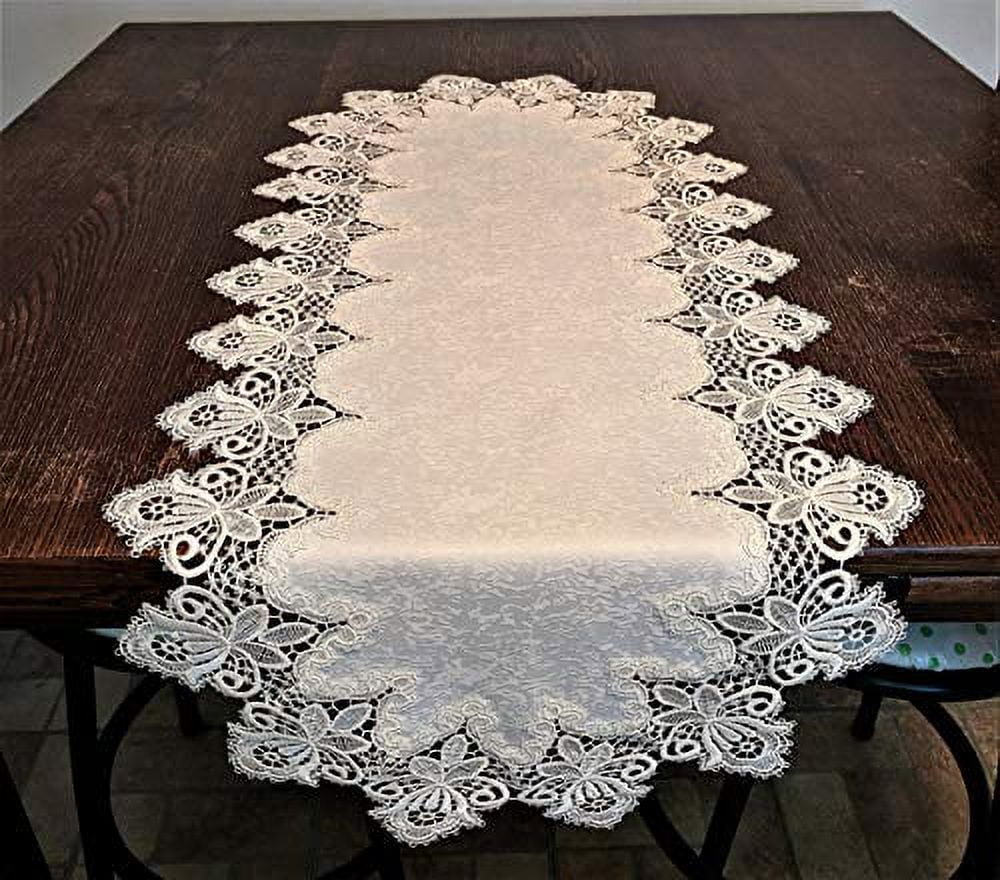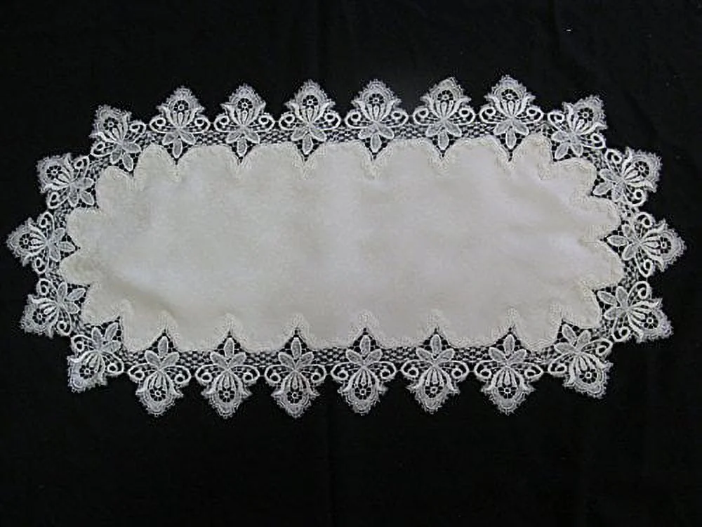 Doily Boutique Table Runner or Dresser Scarf in Antique White Vintage Lace and Fabric Size 72 x 15 inches