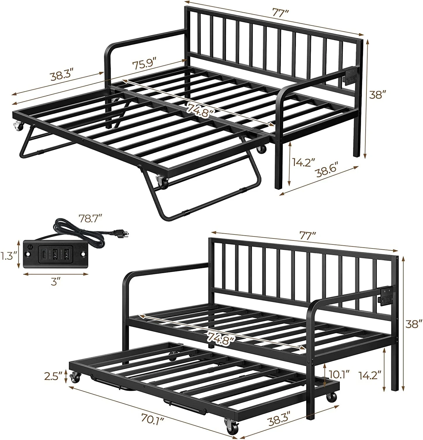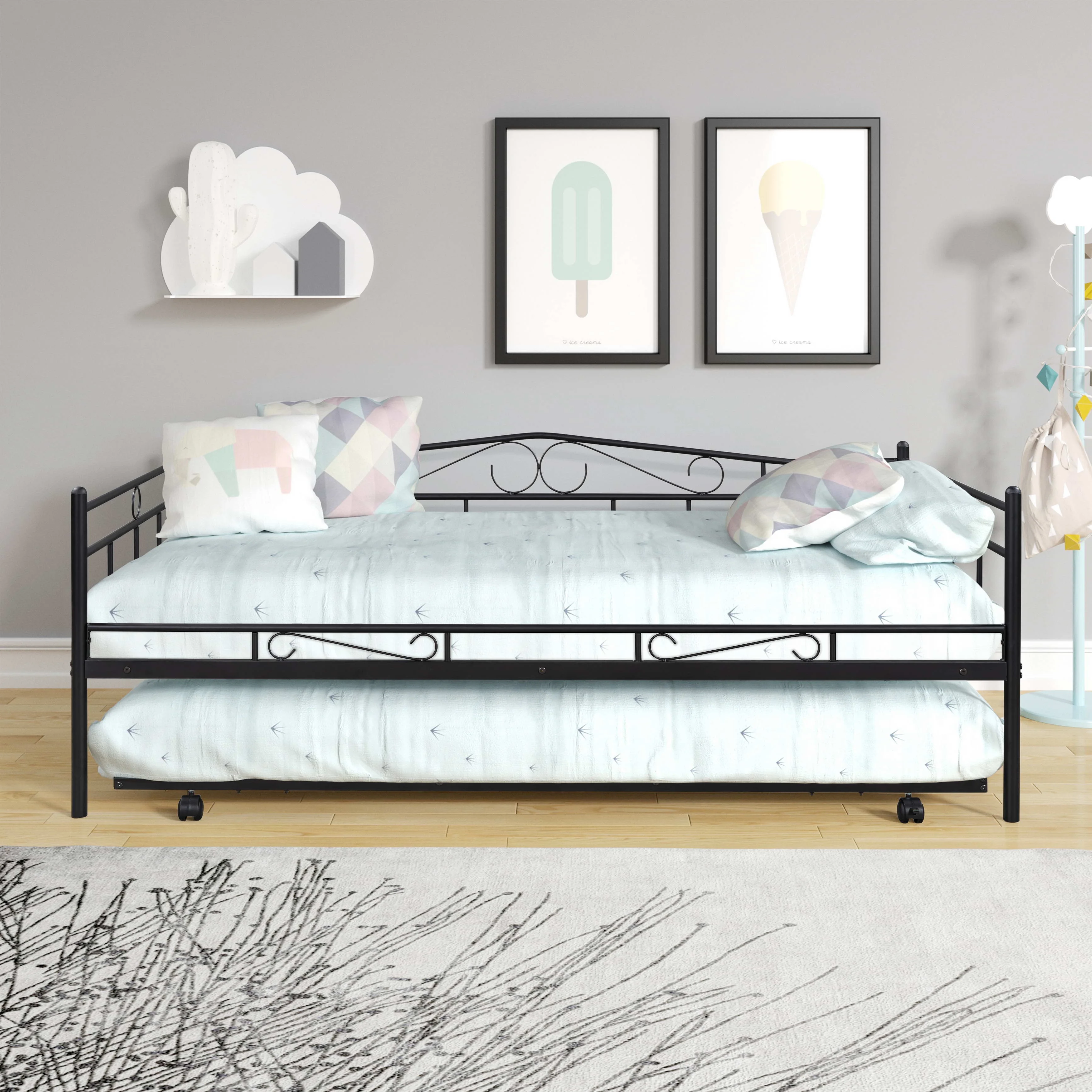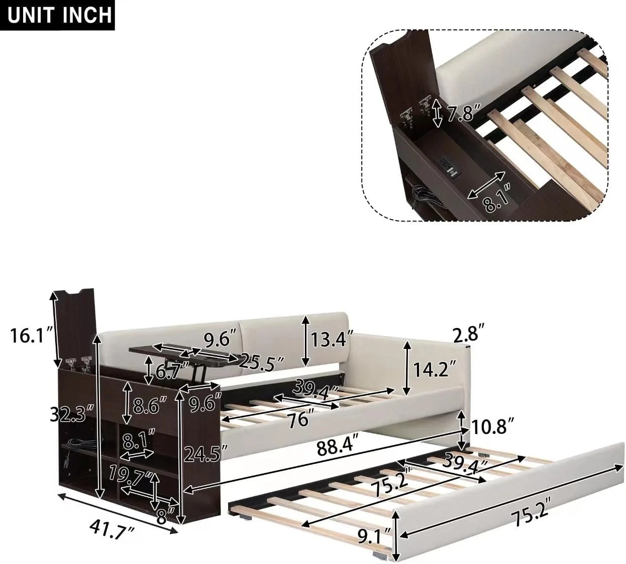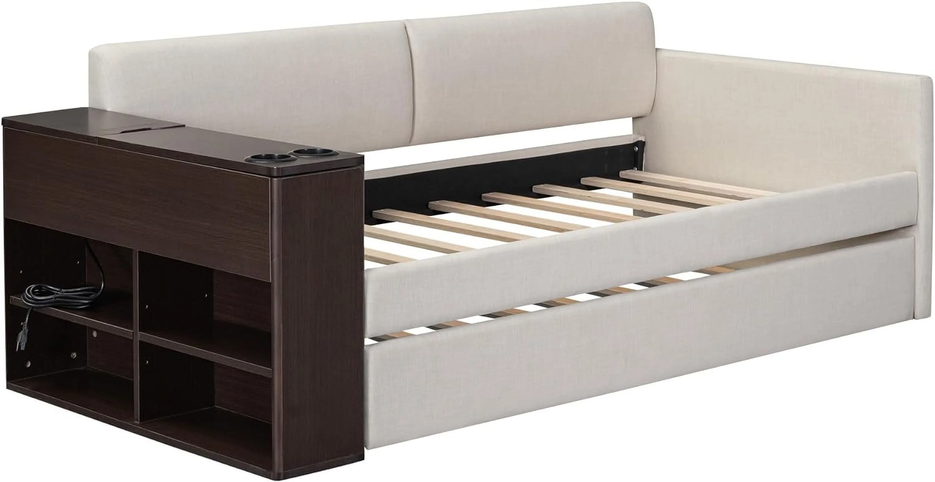 NLIBOOMLife Twin Size Daybed with Trundle Upholstered Twin Daybed Frame Sofa Bed for Bedroom Living Room Beige